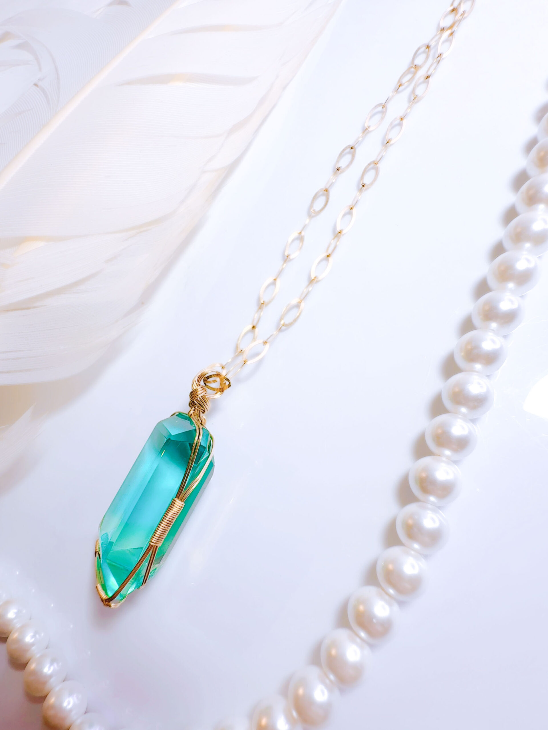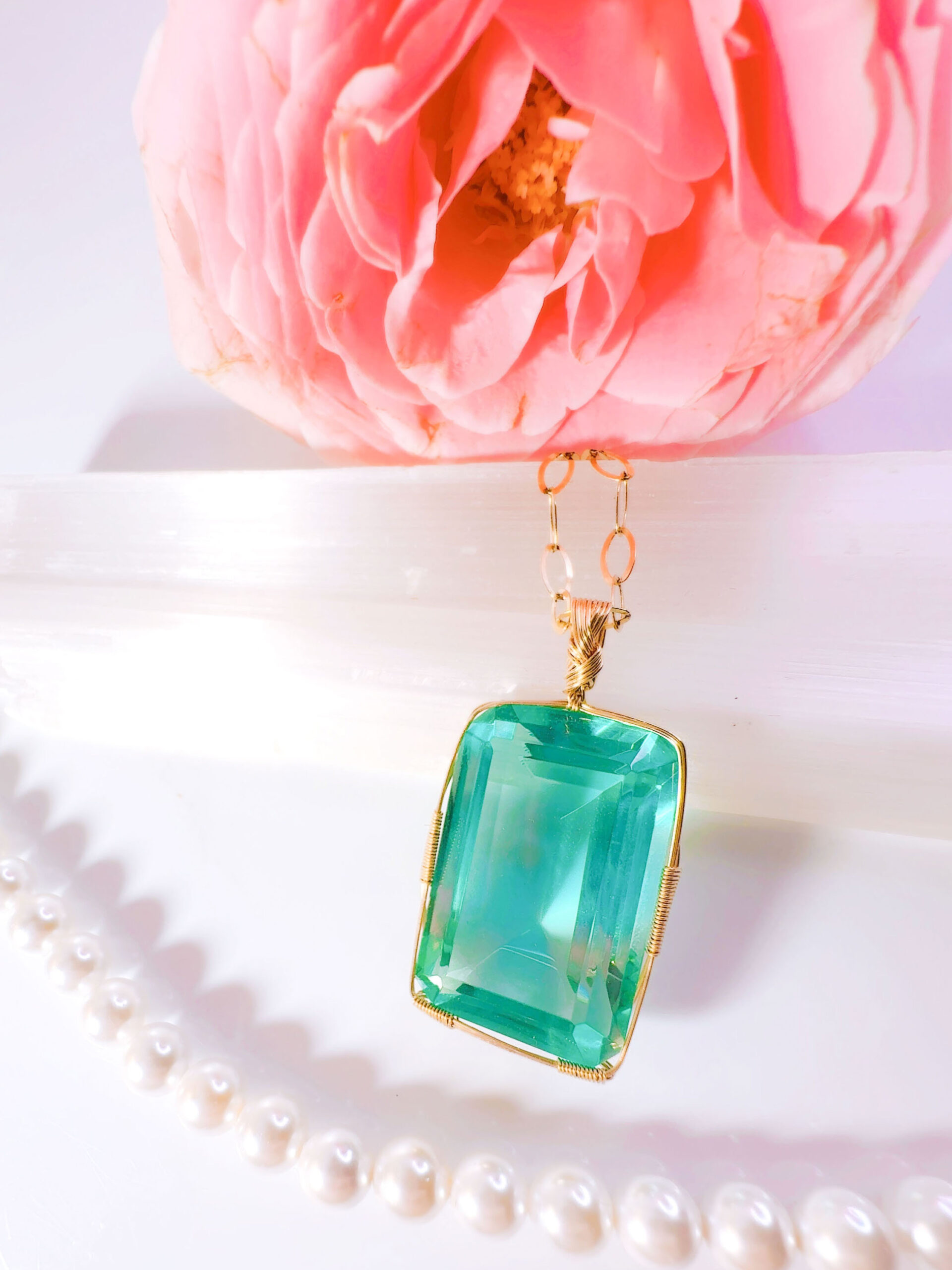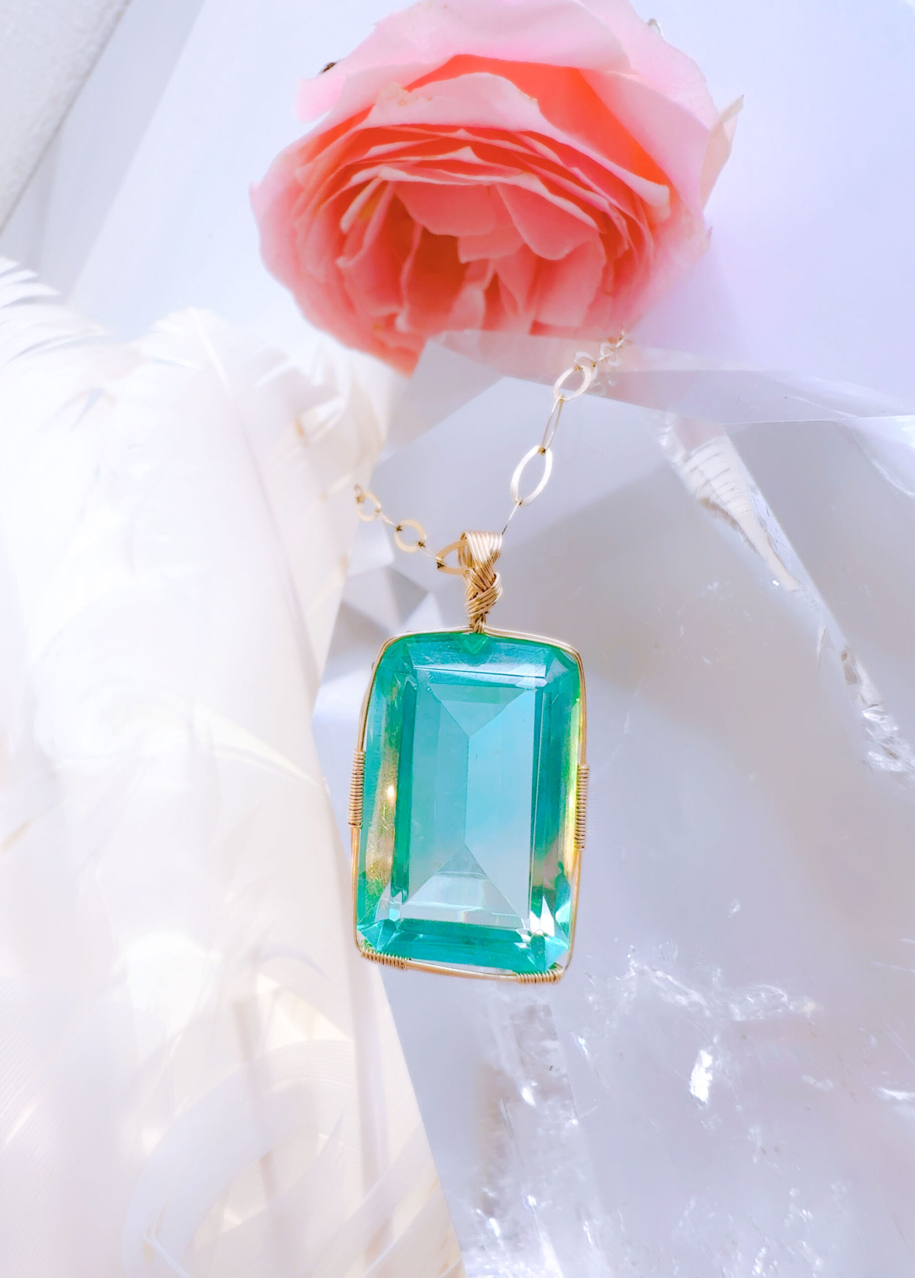 M.Iさまご予約済み♡【ZENITH FLAME】アンダラクリスタル宝石(36CT!/エレクトリックミントグリーングラデーション/ハイクオリティ!/エメラルドカット)14KGF女神巻き®︎魔法のペンダント✴︎ 【 88:LION’s gate portal JEWELRY】【永遠美の秘宝/超超希少! 1点もの】 (anara1264)