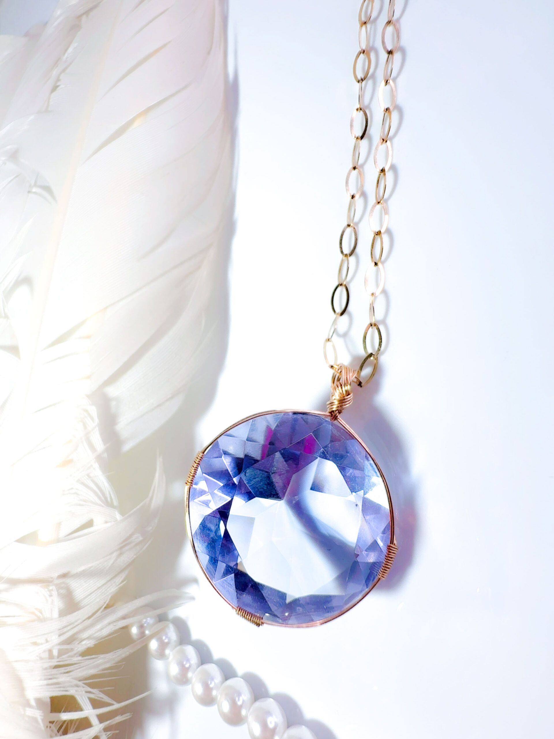M.Iさまおまとめご購入ご予約済み♡ 【ASCENDANT SPIRIT 】アンダラクリスタル宝石(66CT!ハイクオリティ/ カラーチェンジライラックピンクラベンダー/ ラウンドブリリアントカット) 【UNICORN HEART】14KGF女神巻き®︎おおきな魔法のペンダント✴︎14KGFネックレス付き♪水瓶座満月制作【 AQUARIUS FULL MOON jewelry 】【永遠美の秘宝/超超超希少! 1点もの】 (andara1271)