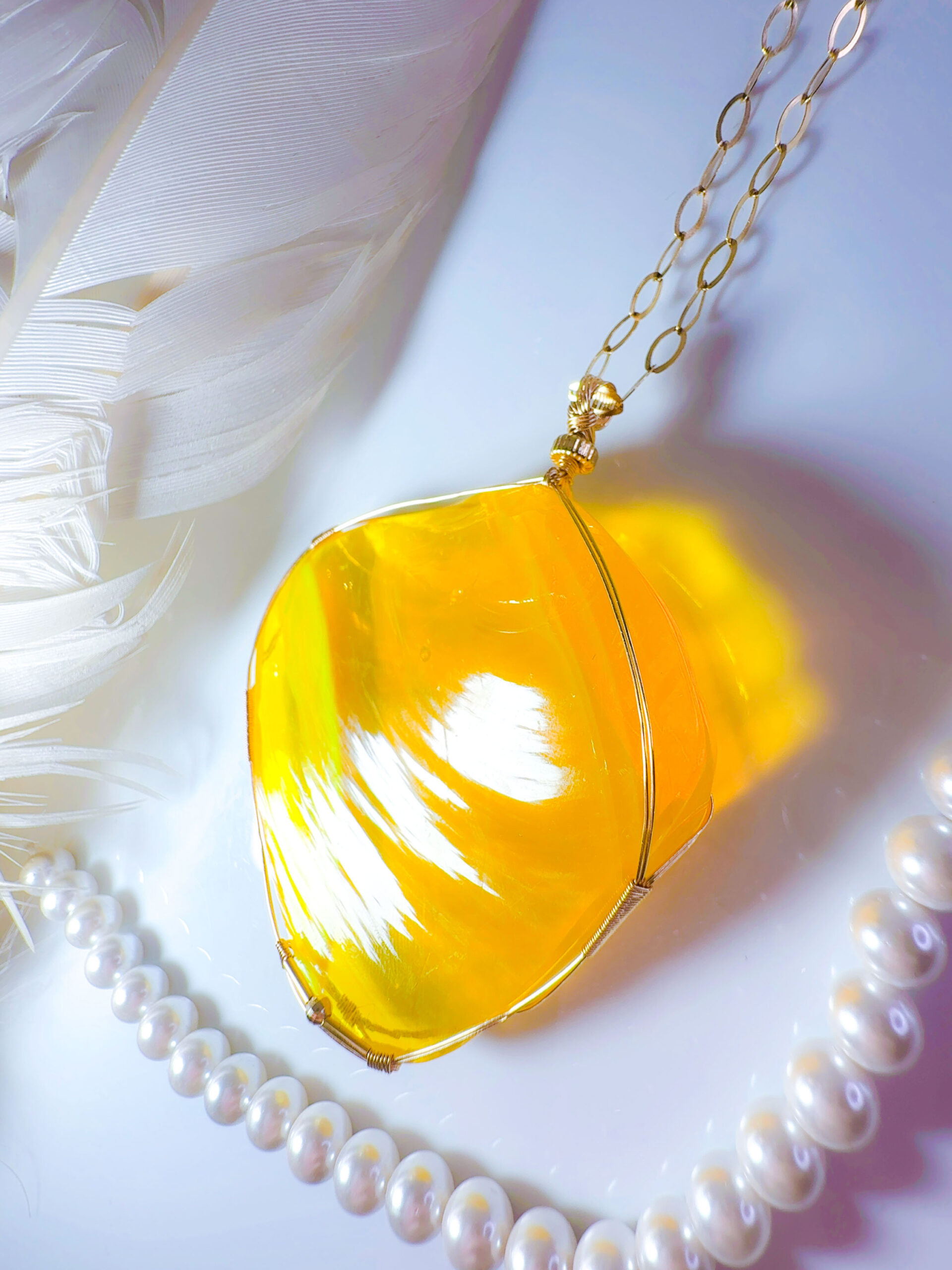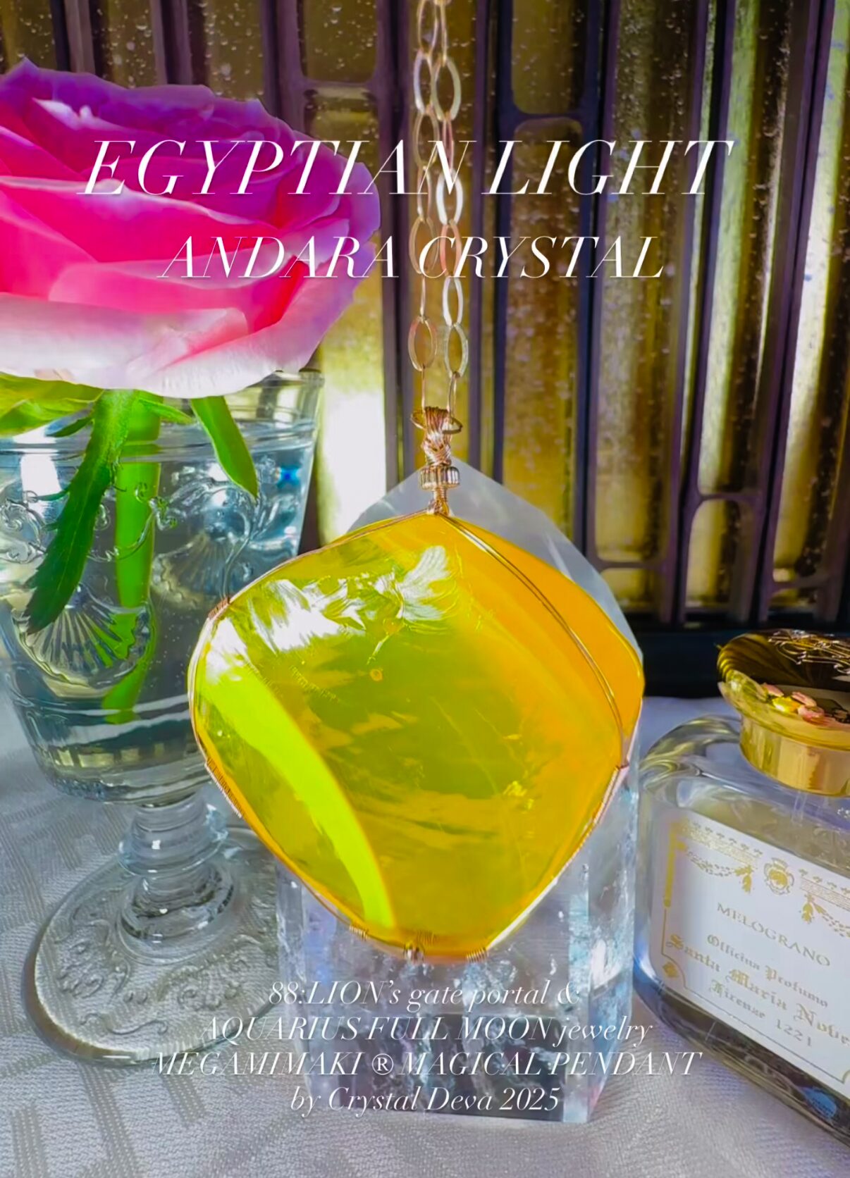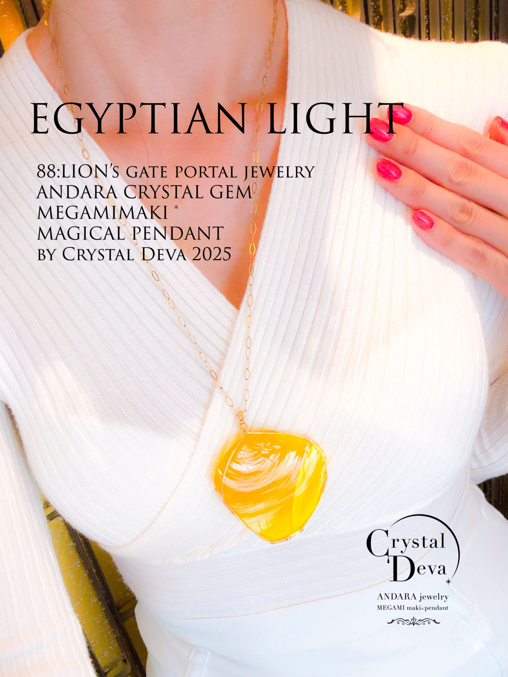 【EGYPTIAN LIGHT 】アンダラクリスタル宝石(151.5CT!/エレクトリックオパレッセントイエローwith エンジェルオーラ/ハイクオリティ!ナチュラルフェイスカボション/両面美しい光の波紋模様 ) 14KGF女神巻き®︎大きなペンダント✴︎14KGFネックレス付き♪ ライオンズゲート制作【 88:LION’s gate portal JEWELRY】【永遠美の秘宝/超超超希少! 1点もの】 (andara1274)