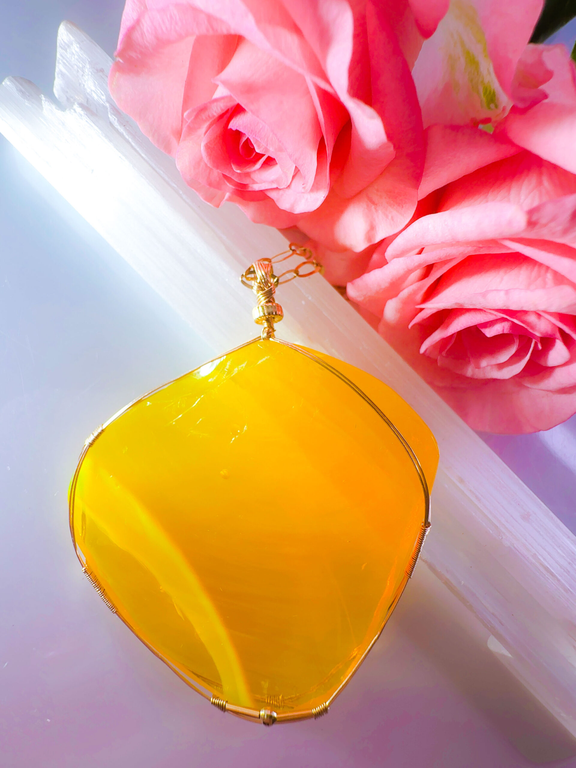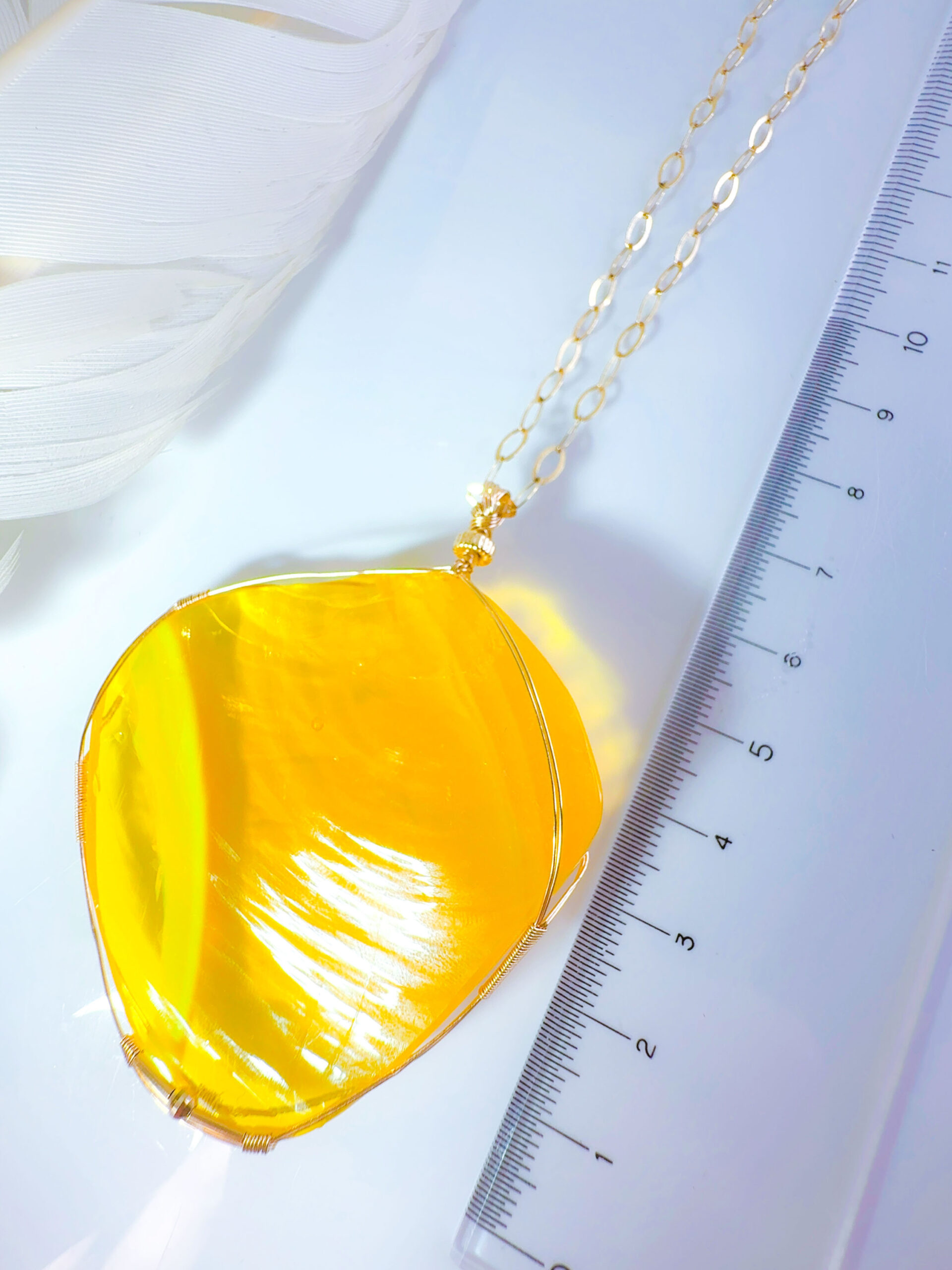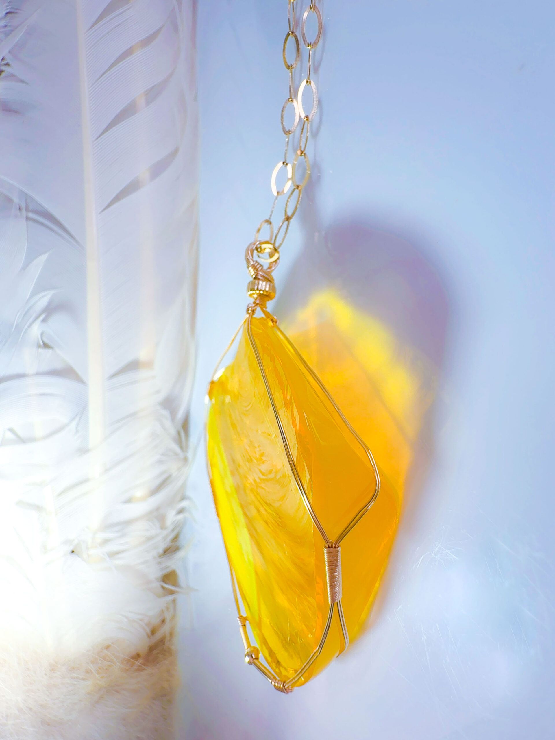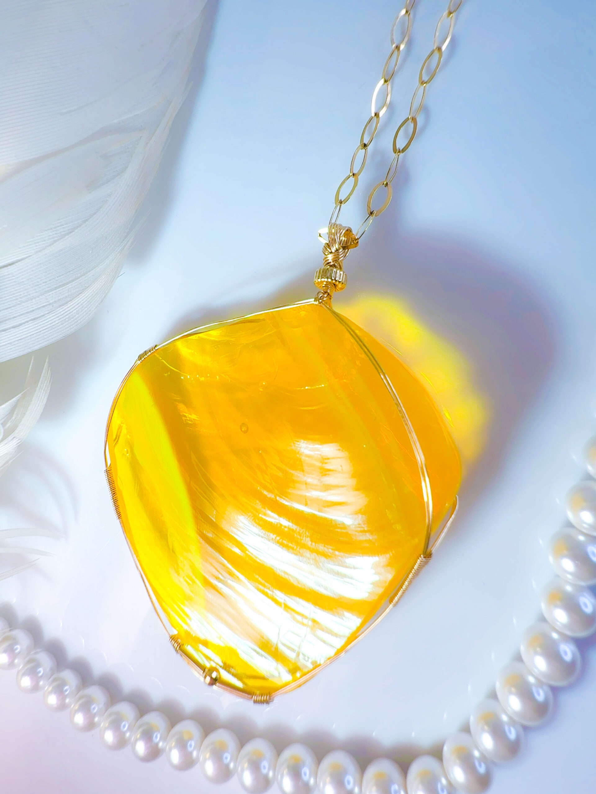【EGYPTIAN LIGHT 】アンダラクリスタル宝石(151.5CT!/エレクトリックオパレッセントイエローwith エンジェルオーラ/ハイクオリティ!ナチュラルフェイスカボション/両面美しい光の波紋模様 ) 14KGF女神巻き®︎大きなペンダント✴︎14KGFネックレス付き♪ ライオンズゲート制作【 88:LION’s gate portal JEWELRY】【永遠美の秘宝/超超超希少! 1点もの】 (andara1274)