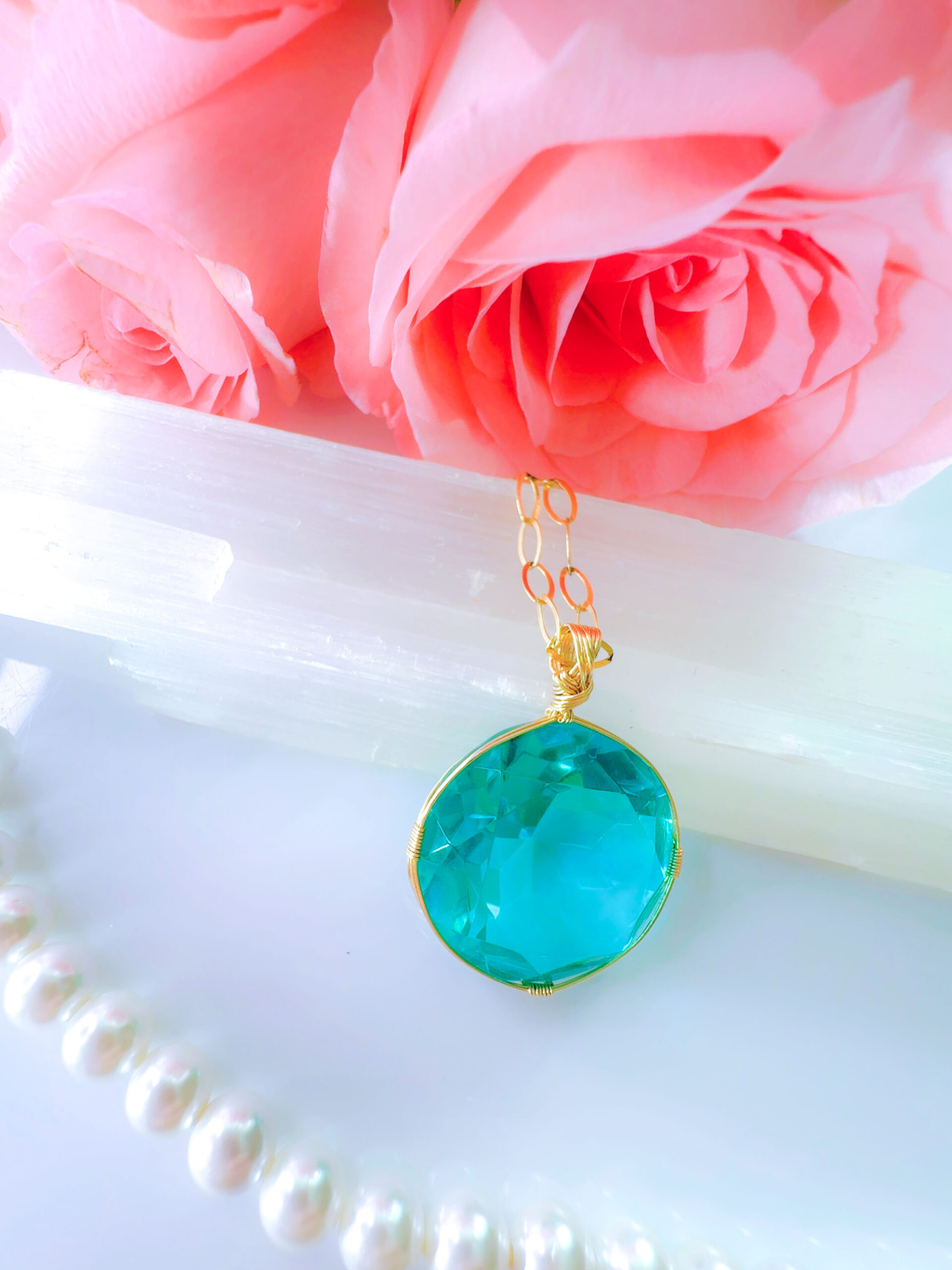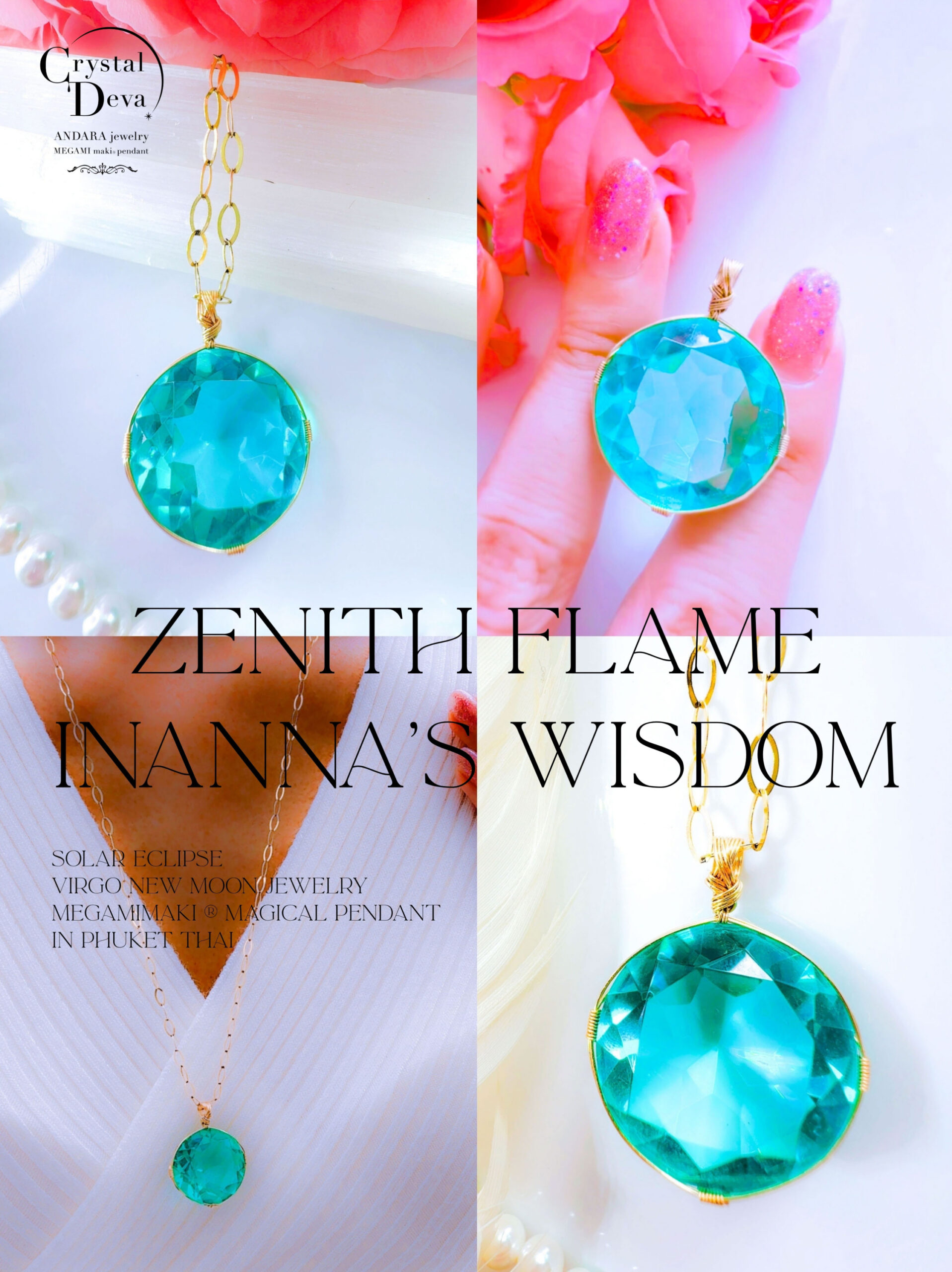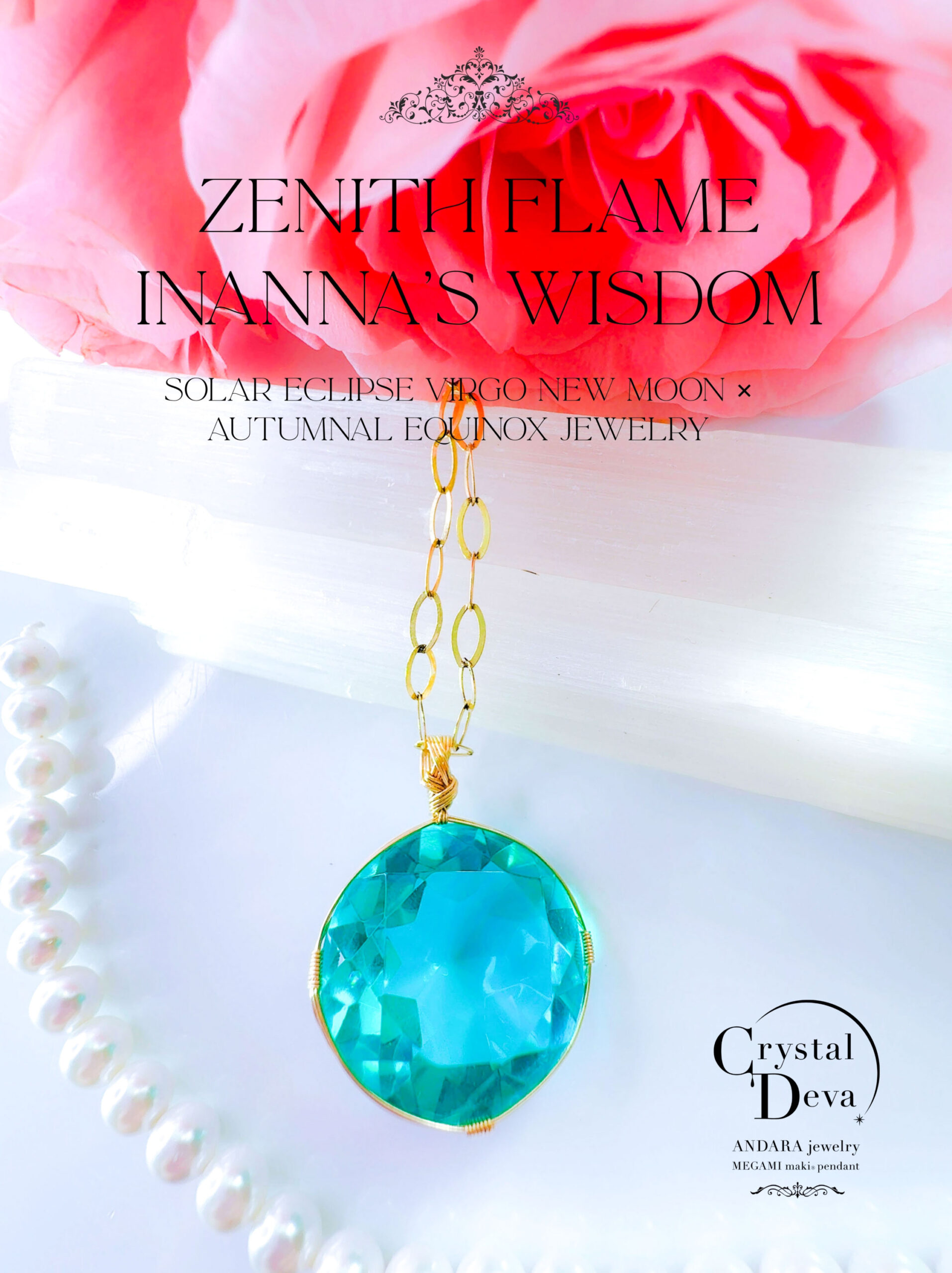 N.Nさまご予約済み♡【新作おまとめSALE 20%OFF 10/7 牡羊座満月まで♡】【ZENITH FLAME】アンダラクリスタル宝石(28.5CT!/ティファニーブルー/ハイクオリティ!/ラウンドブリリアントカット)14KGF女神巻き®︎魔法のペンダント【INANNA's WISDOM】14KGFネックレス付き♪ 【 SOLAR ECLIPSE VIRGO NEW MOON × AUTUMNAL EQUINOX jewelry】【永遠美の秘宝/超超希少! 1点もの】 (andara1282)
