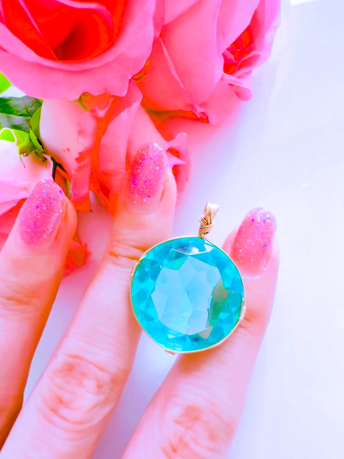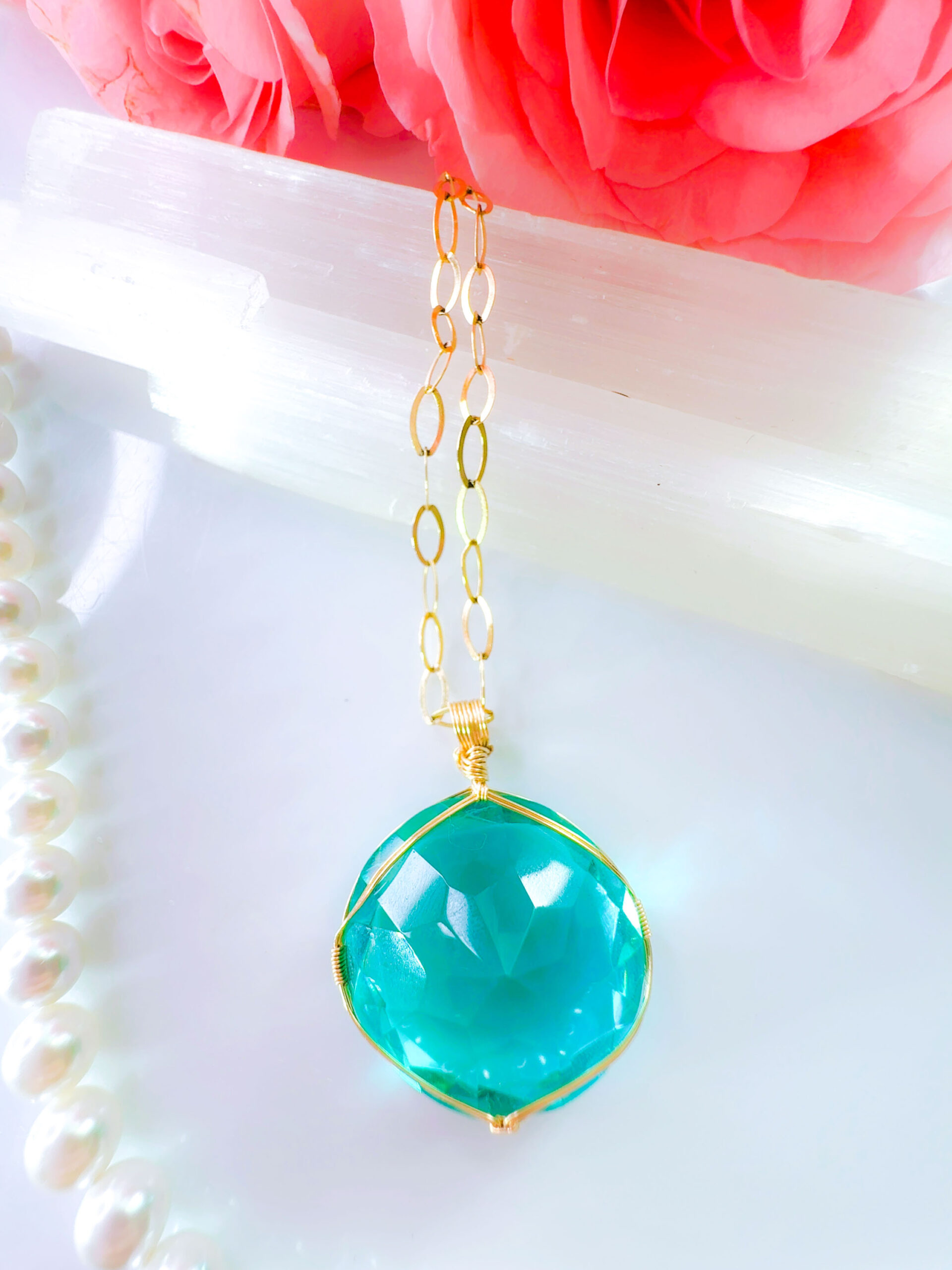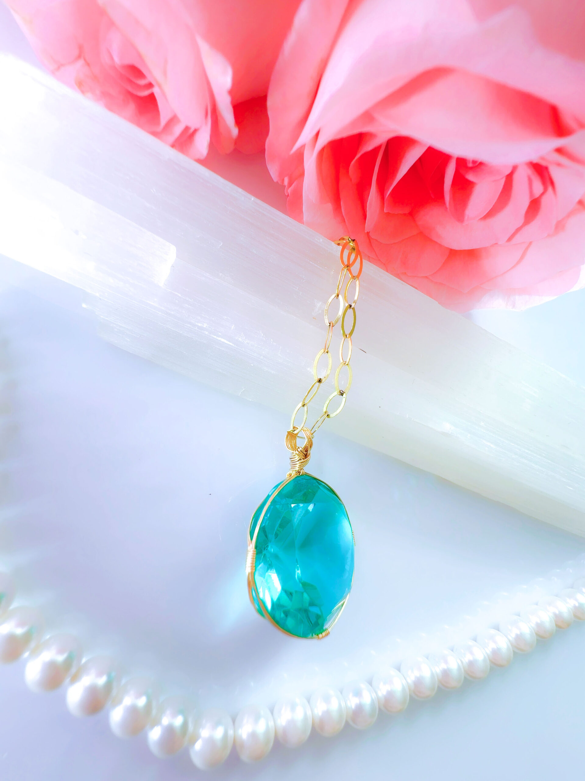 N.Nさまご予約済み♡【新作おまとめSALE 20%OFF 10/7 牡羊座満月まで♡】【ZENITH FLAME】アンダラクリスタル宝石(28.5CT!/ティファニーブルー/ハイクオリティ!/ラウンドブリリアントカット)14KGF女神巻き®︎魔法のペンダント【INANNA's WISDOM】14KGFネックレス付き♪ 【 SOLAR ECLIPSE VIRGO NEW MOON × AUTUMNAL EQUINOX jewelry】【永遠美の秘宝/超超希少! 1点もの】 (andara1282)