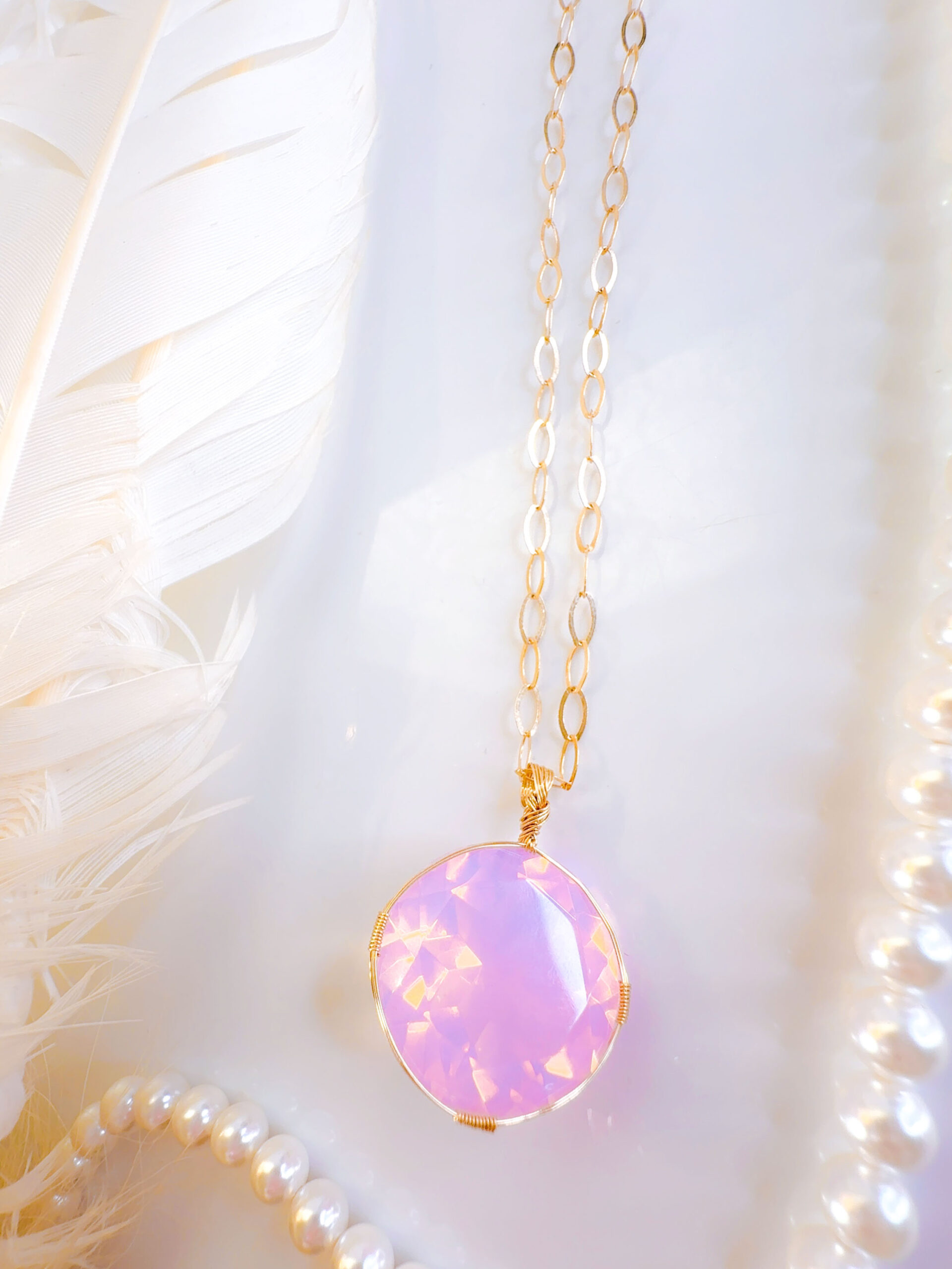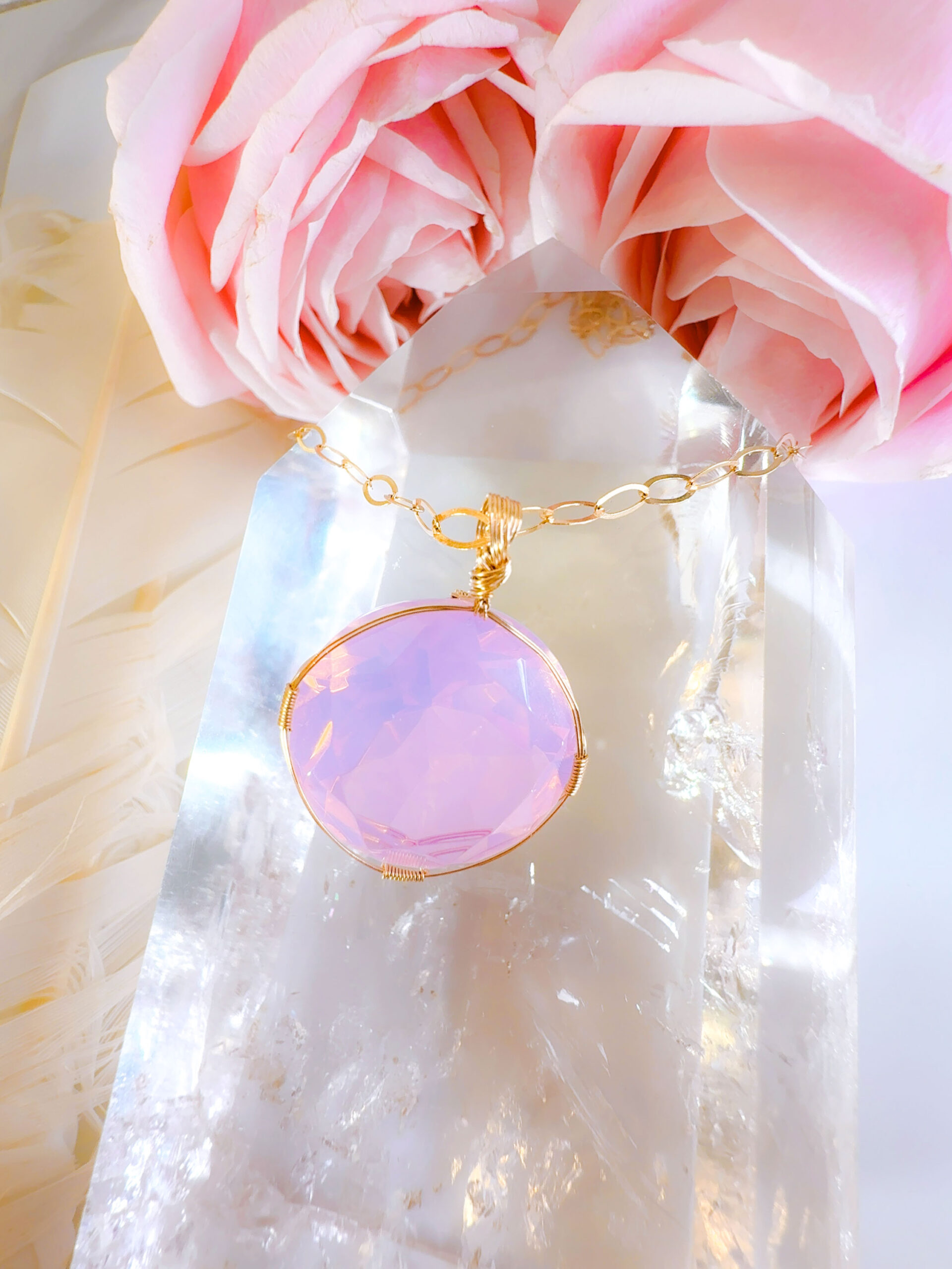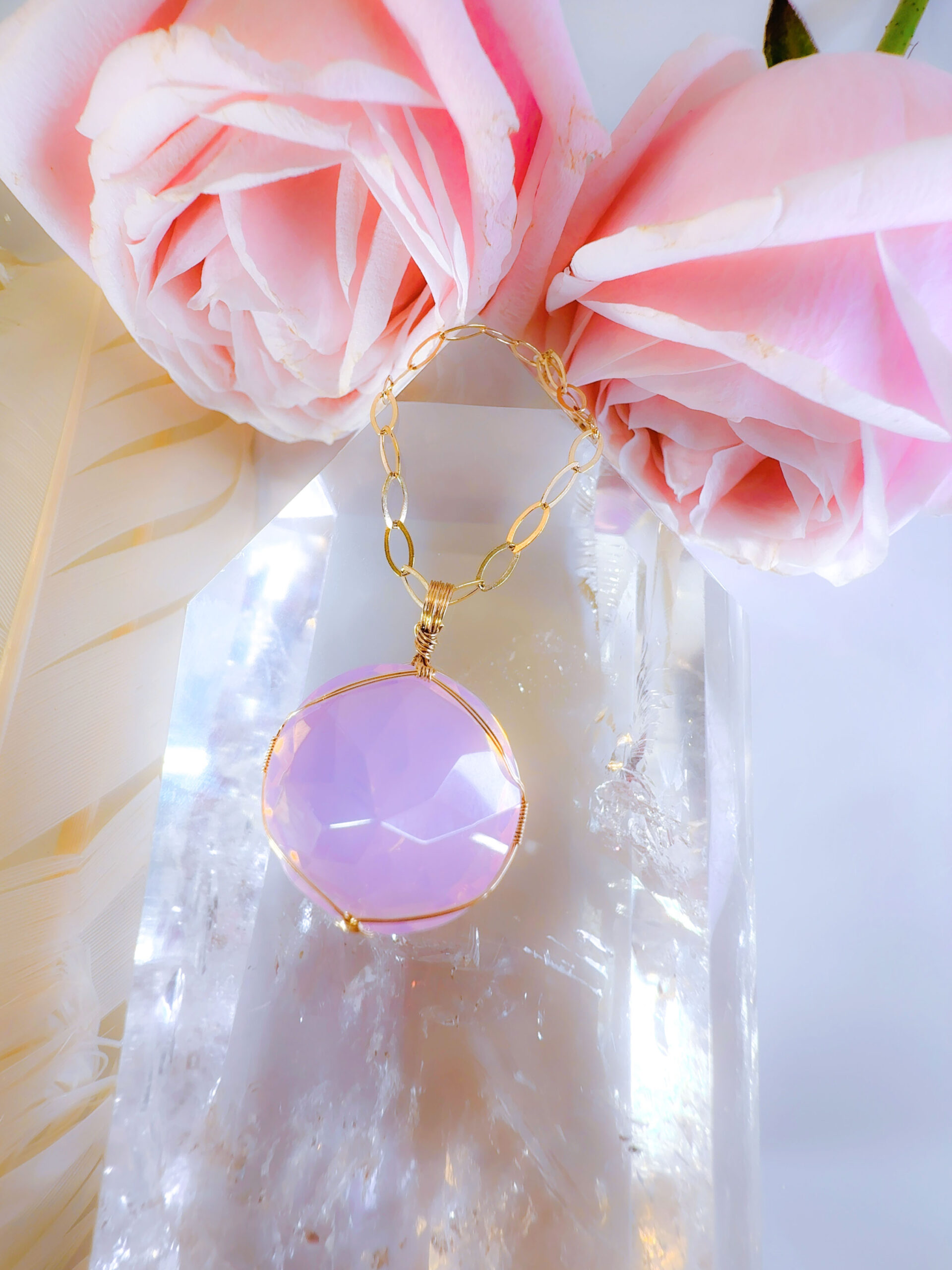 【ANGEL AURA SACRED HEART of MARY】アンダラクリスタル宝石(31CT !オパレッセントラベンダーピンク/ハイクオリティ!ラウンドブリリアントカット) 14KGF女神巻き®︎魔法のペンダント✴︎14KGFネックレス付き♪ 【TAURUS VENUS SUPER FULL MOON jewelry】【永遠美の秘宝/超超超希少! 1点もの】 (andara1309)