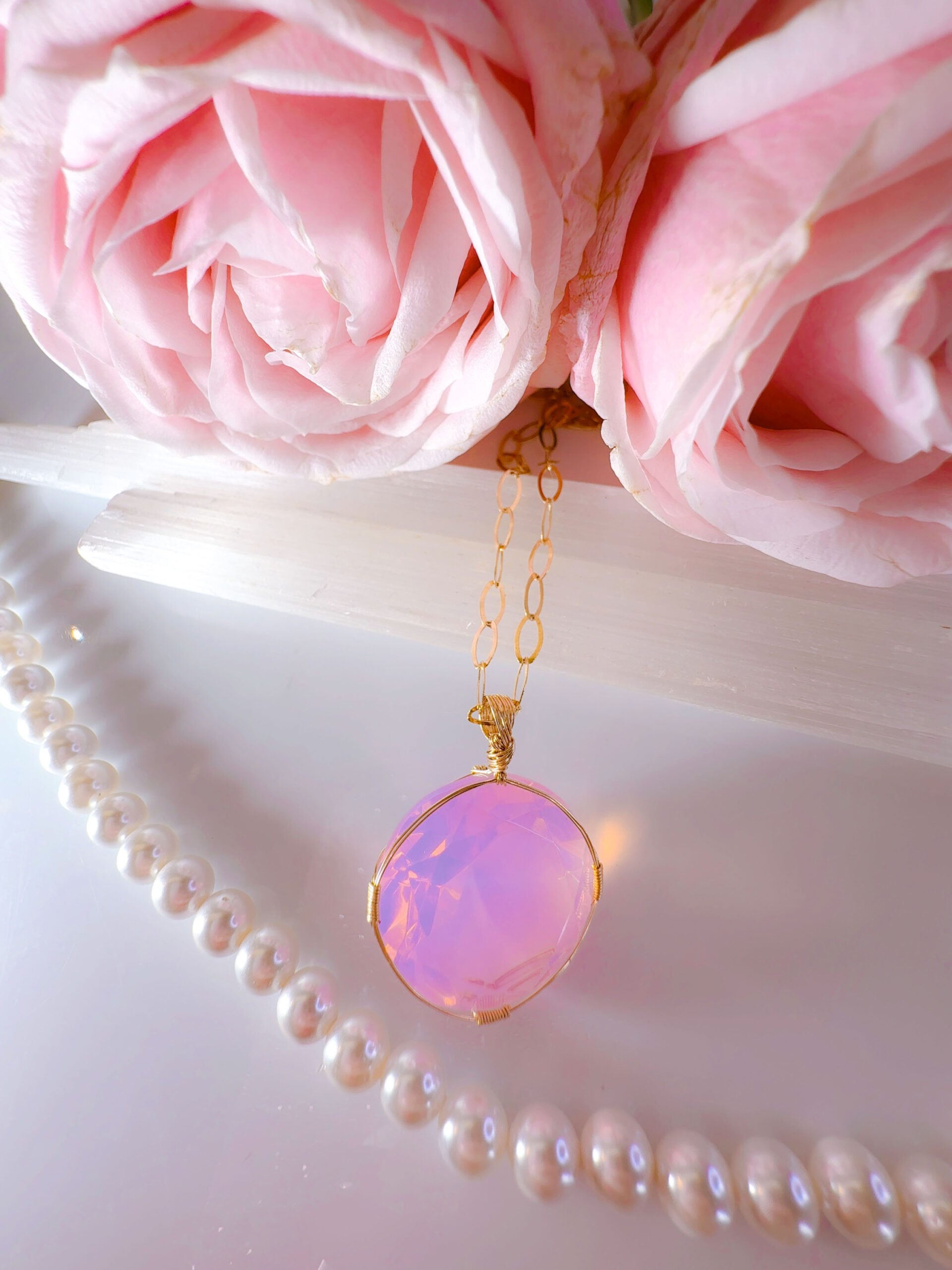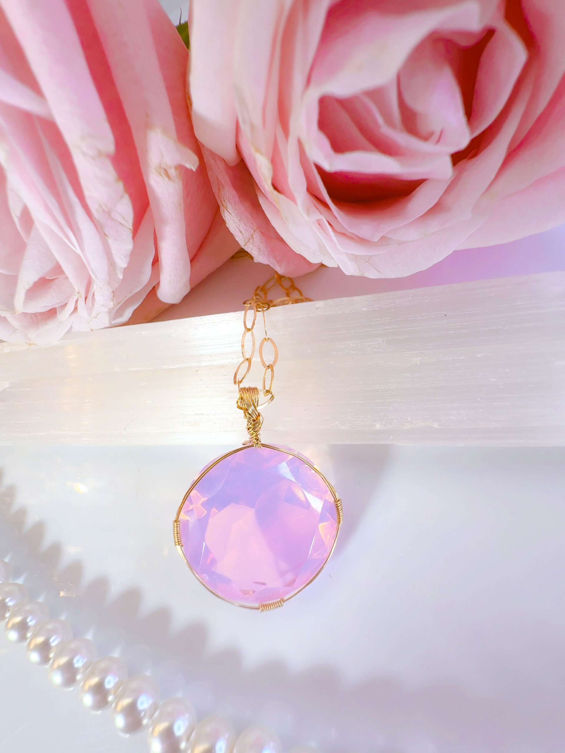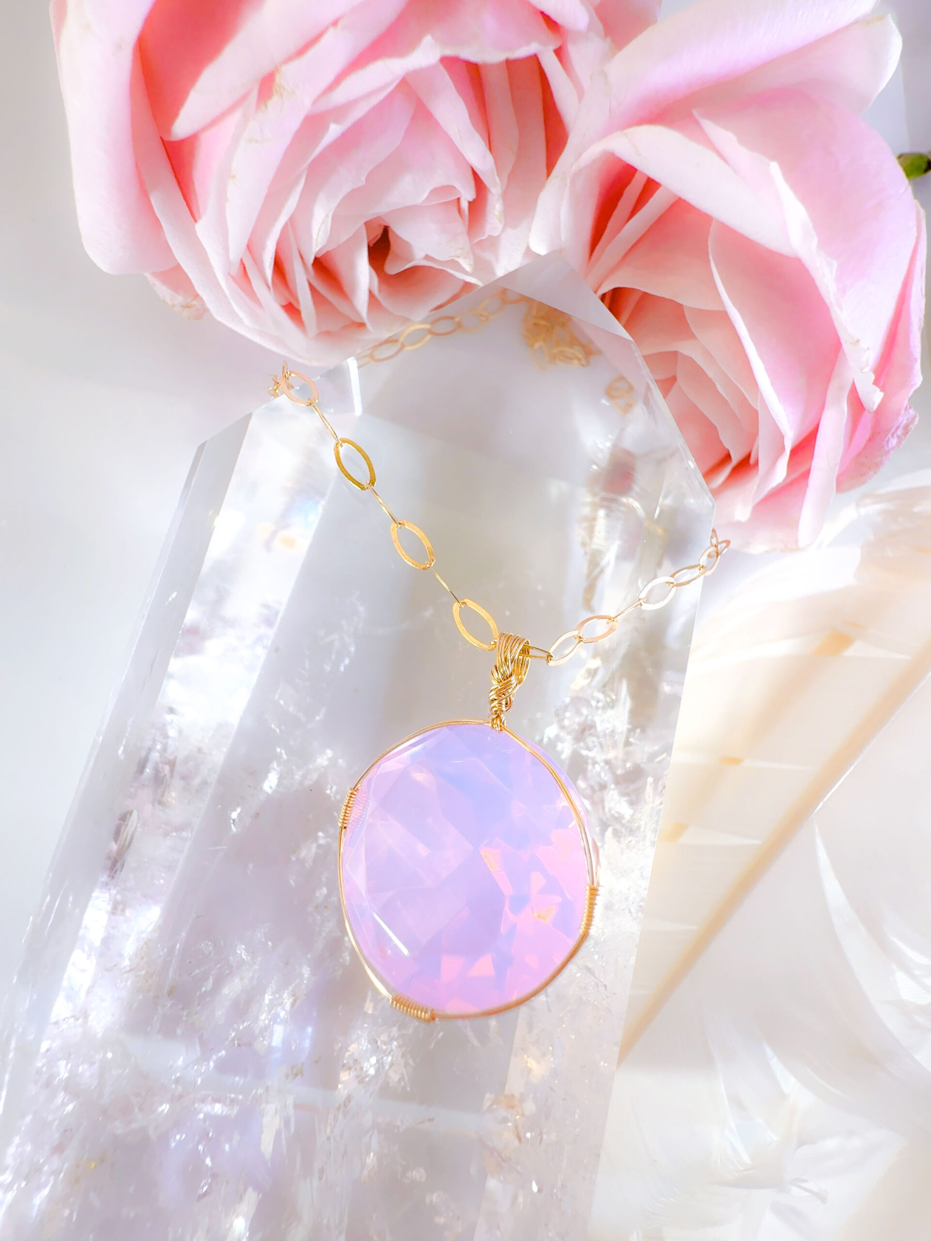 【ANGEL AURA SACRED HEART of MARY】アンダラクリスタル宝石(31CT !オパレッセントラベンダーピンク/ハイクオリティ!ラウンドブリリアントカット) 14KGF女神巻き®︎魔法のペンダント✴︎14KGFネックレス付き♪ 【TAURUS VENUS SUPER FULL MOON jewelry】【永遠美の秘宝/超超超希少! 1点もの】 (andara1309)