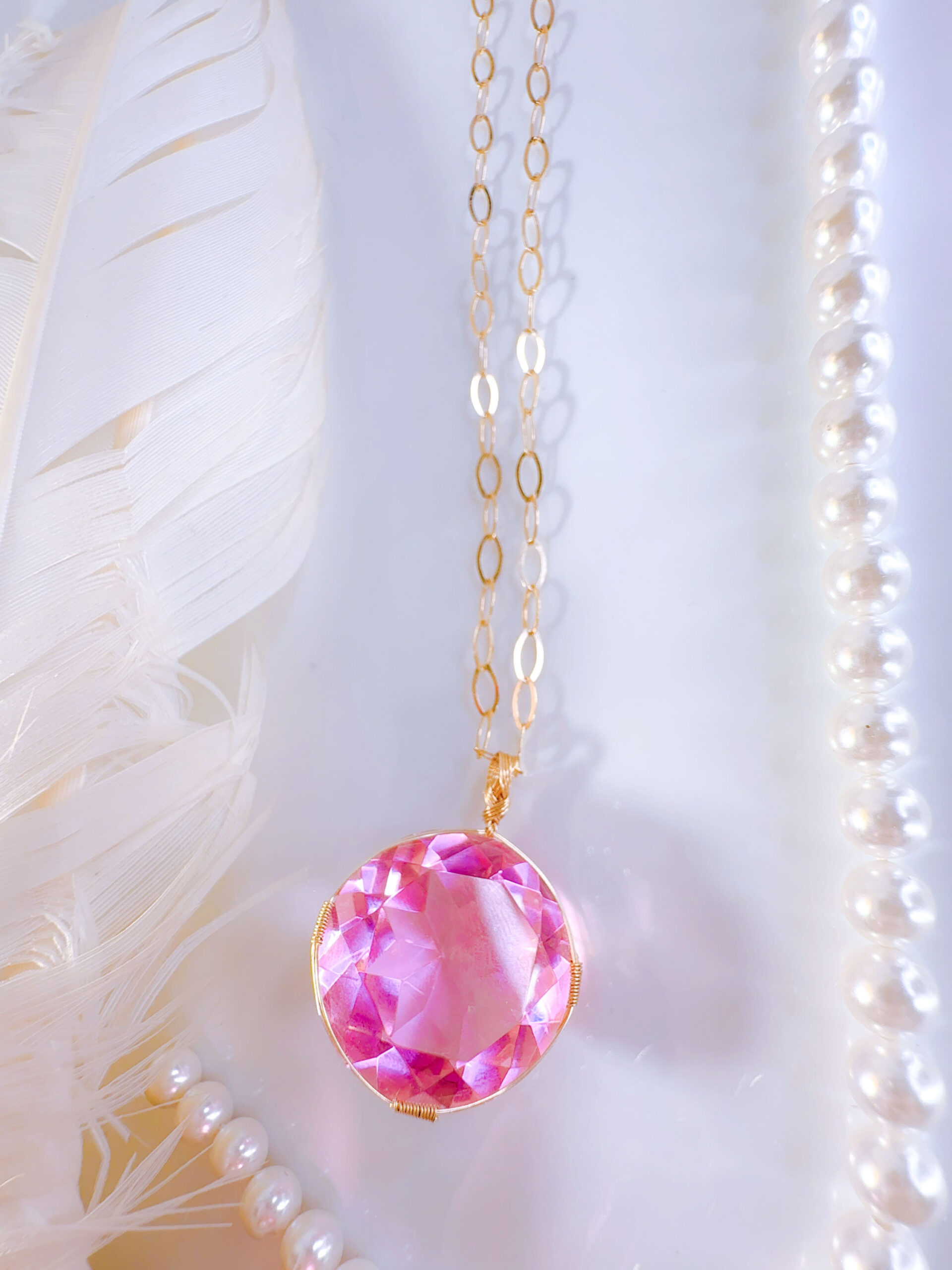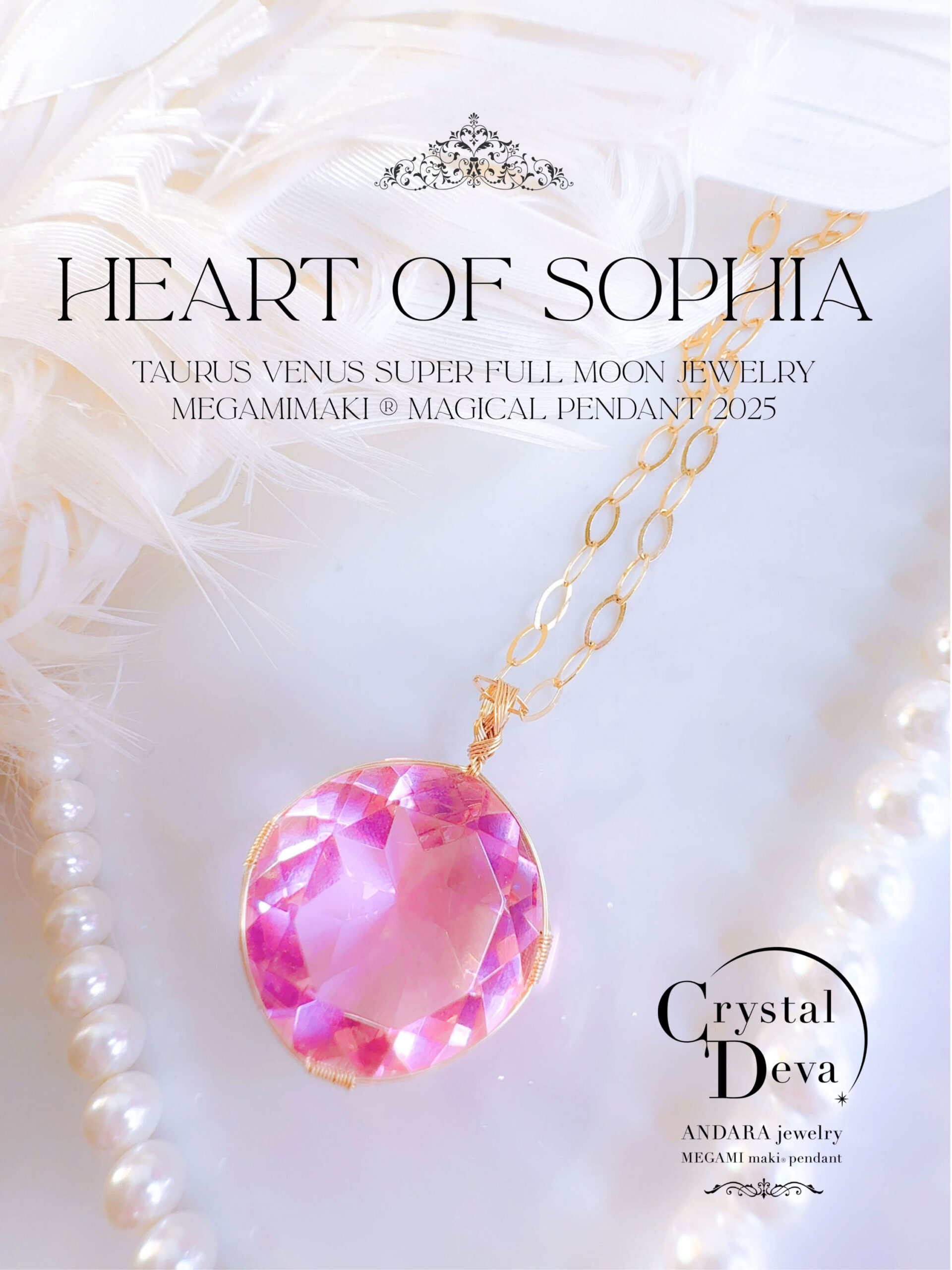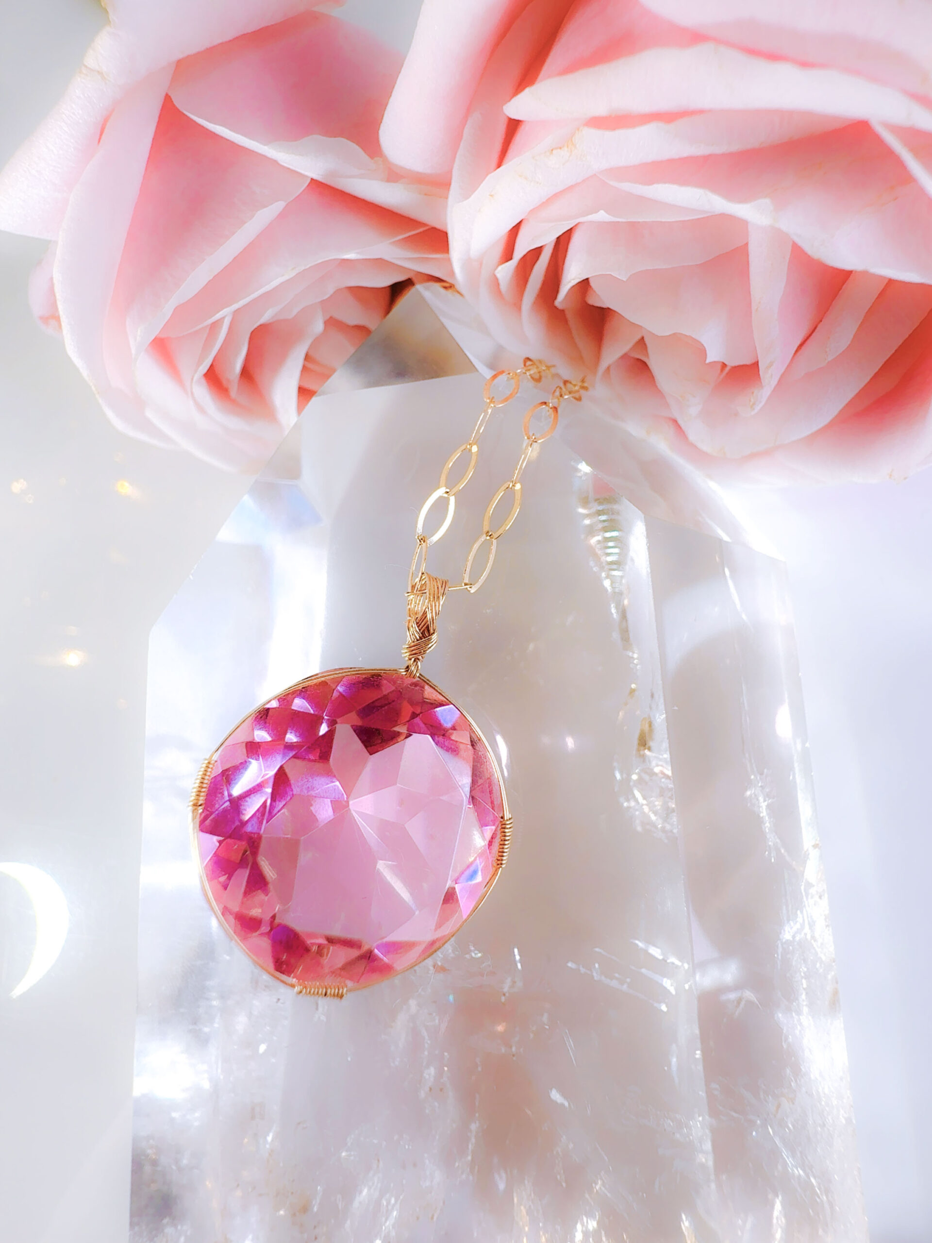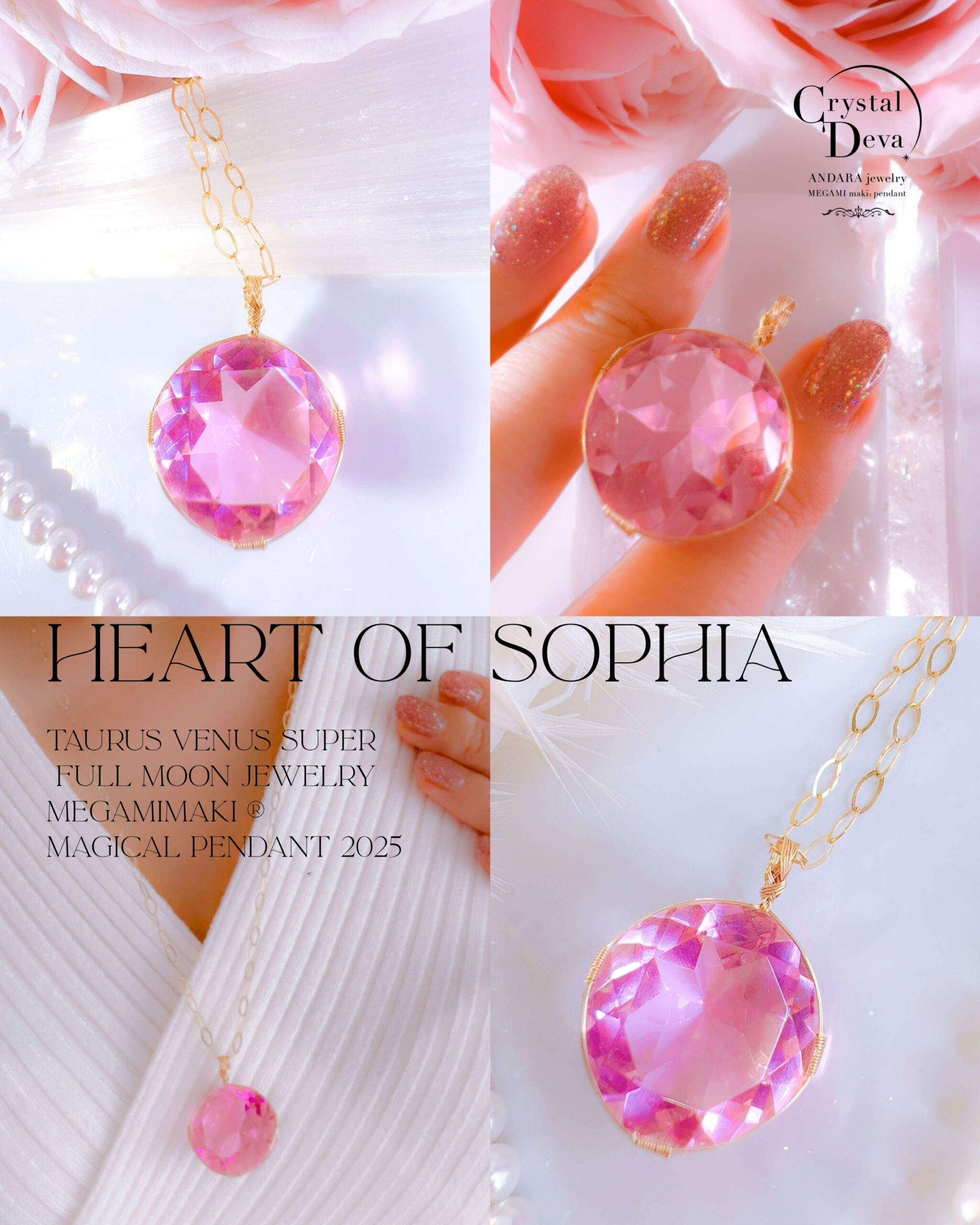 【HEART of SOPHIA】アンダラクリスタル宝石(36CT/発色のいいヴィーナスピンク/ハイクオリティ!/ラウンドブリリアントカット)【LEMURIAN PINK VENUS】14KGF女神巻き®︎魔法のペンダント✴︎14KGFネックレス付き♪ 【TAURUS VENUS SUPER FULL MOON jewelry】【永遠美の秘宝/超超超希少! 1点もの】 (andara1311)