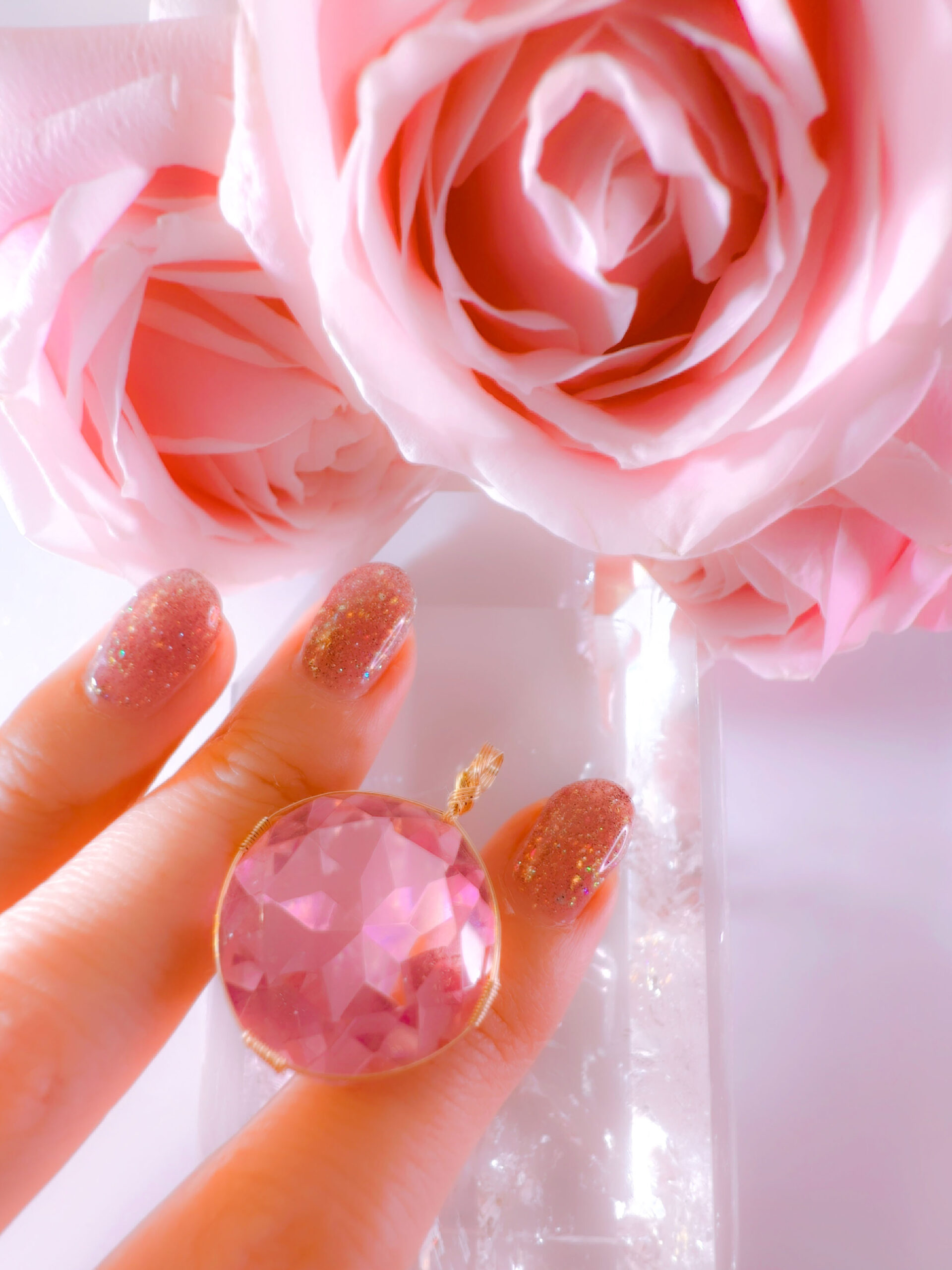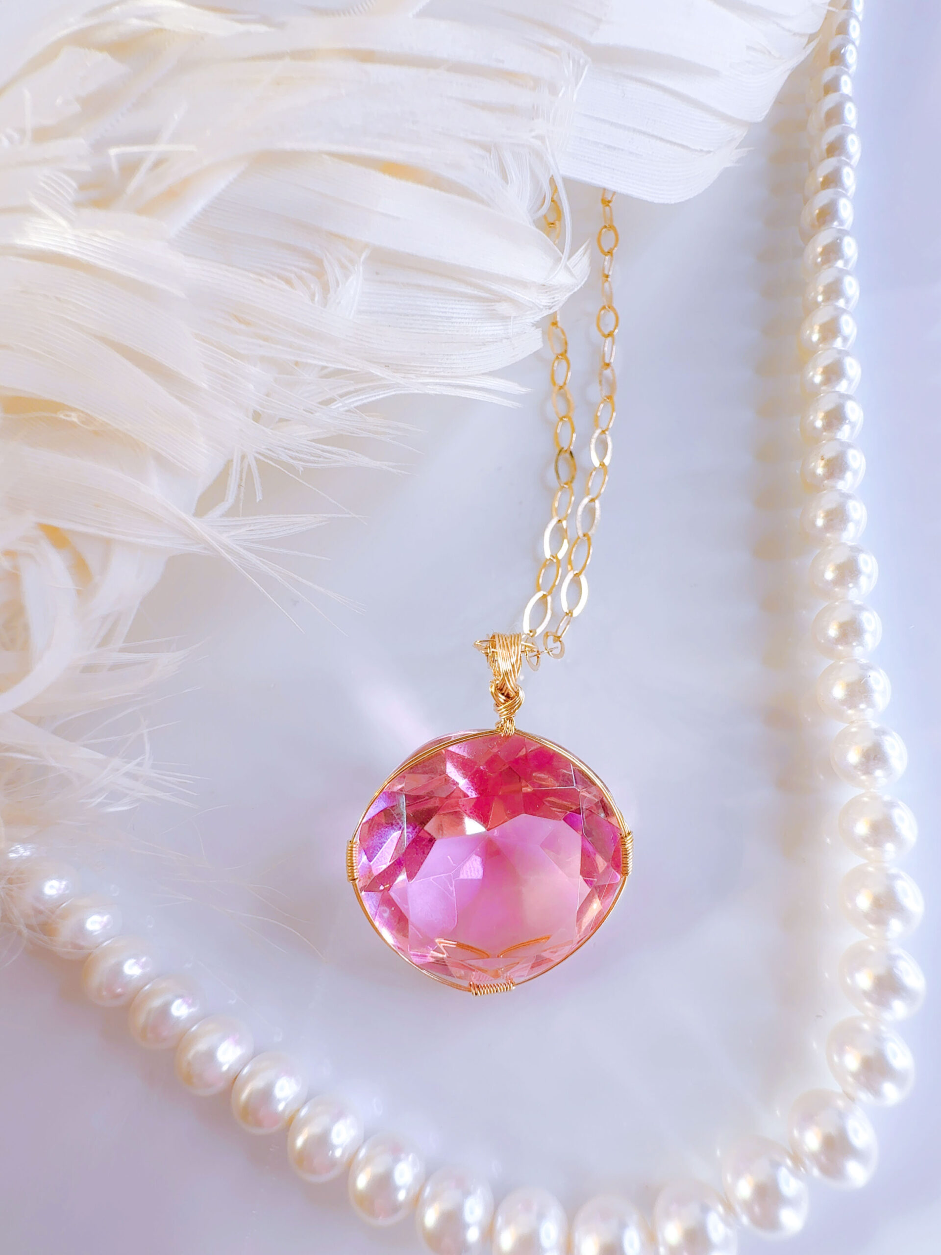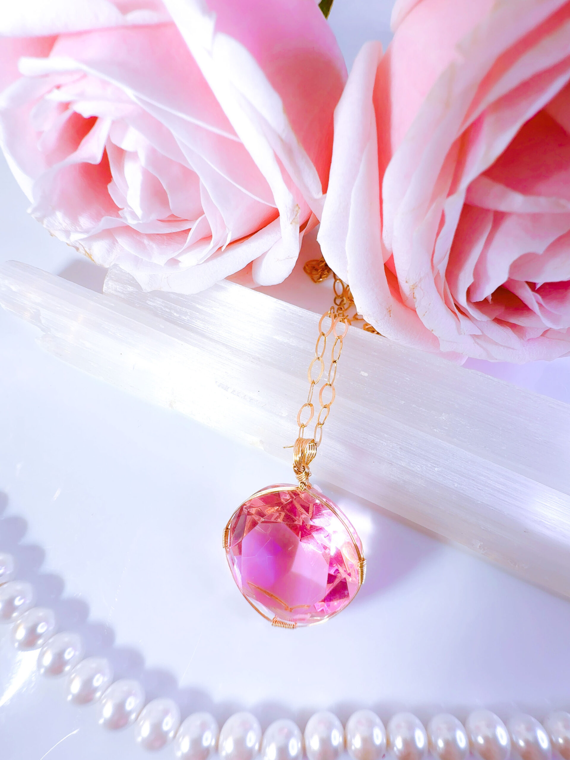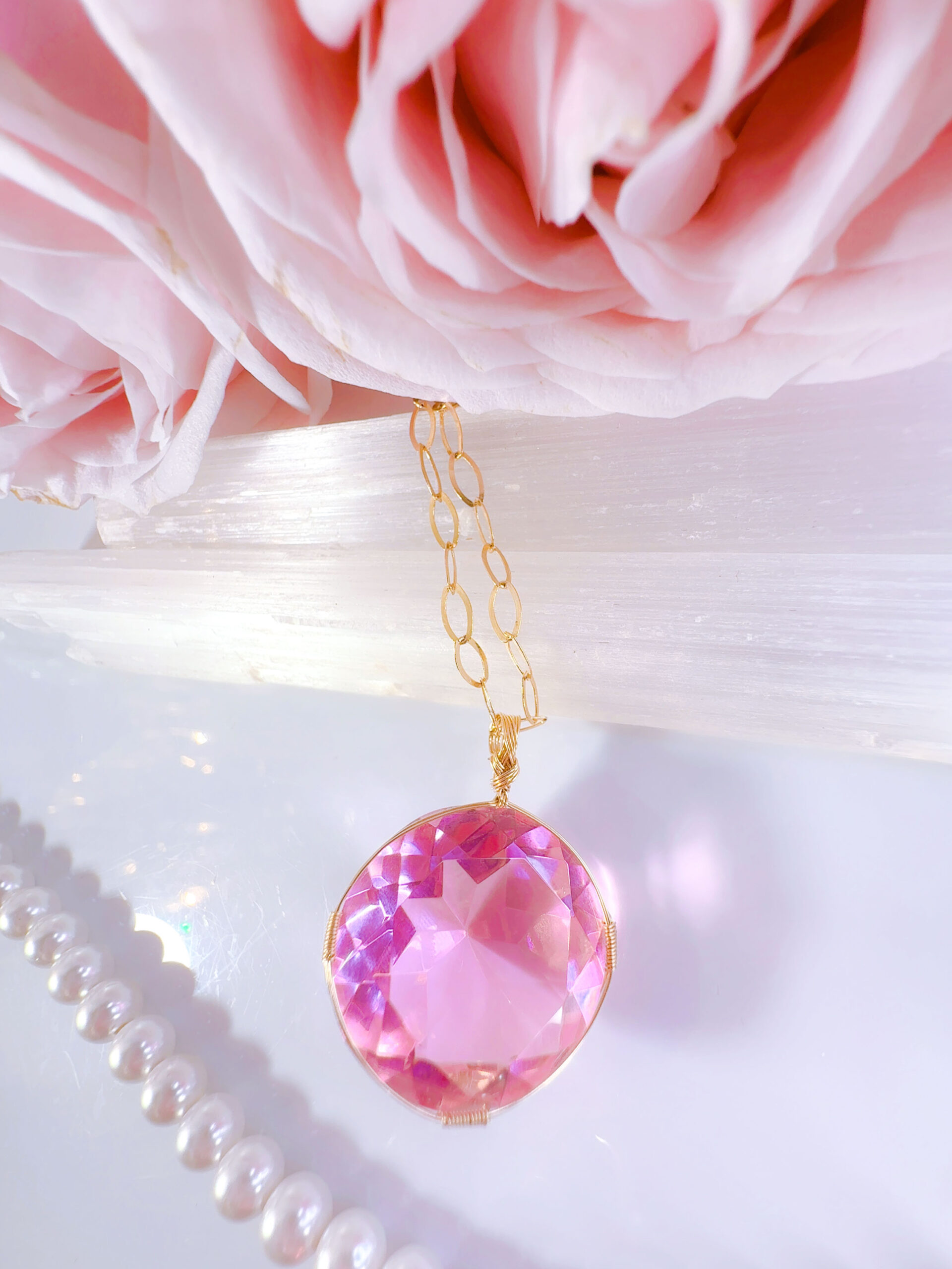 【HEART of SOPHIA】アンダラクリスタル宝石(36CT/発色のいいヴィーナスピンク/ハイクオリティ!/ラウンドブリリアントカット)【LEMURIAN PINK VENUS】14KGF女神巻き®︎魔法のペンダント✴︎14KGFネックレス付き♪ 【TAURUS VENUS SUPER FULL MOON jewelry】【永遠美の秘宝/超超超希少! 1点もの】 (andara1311)