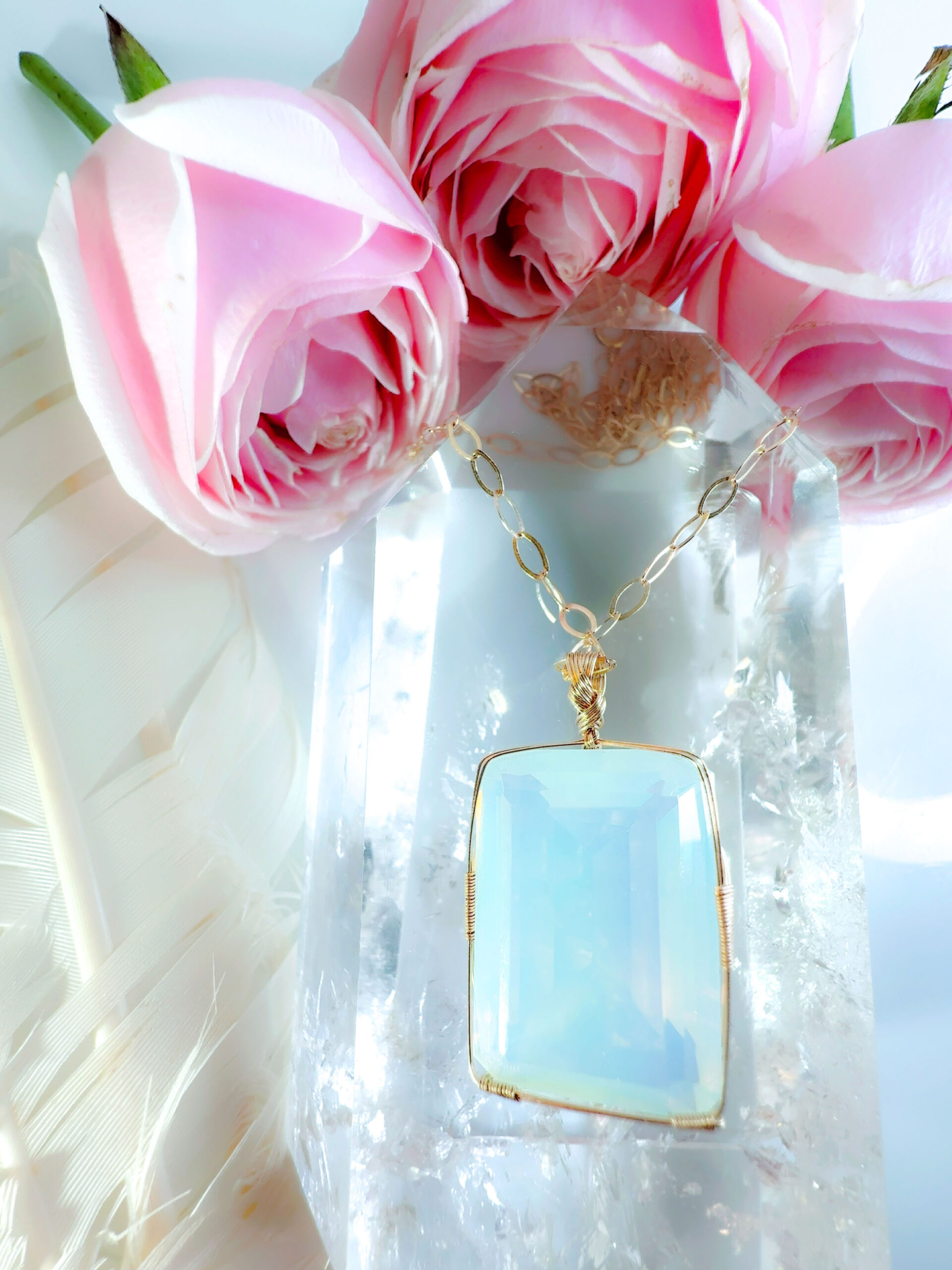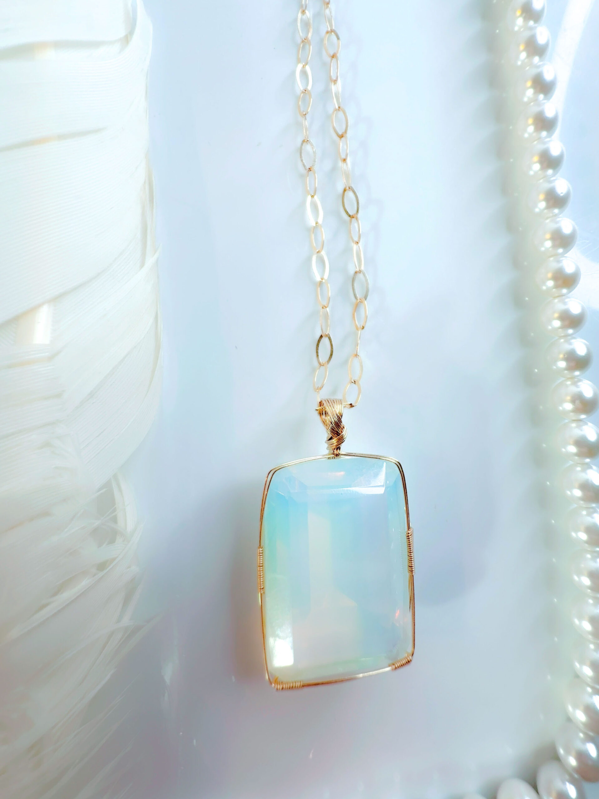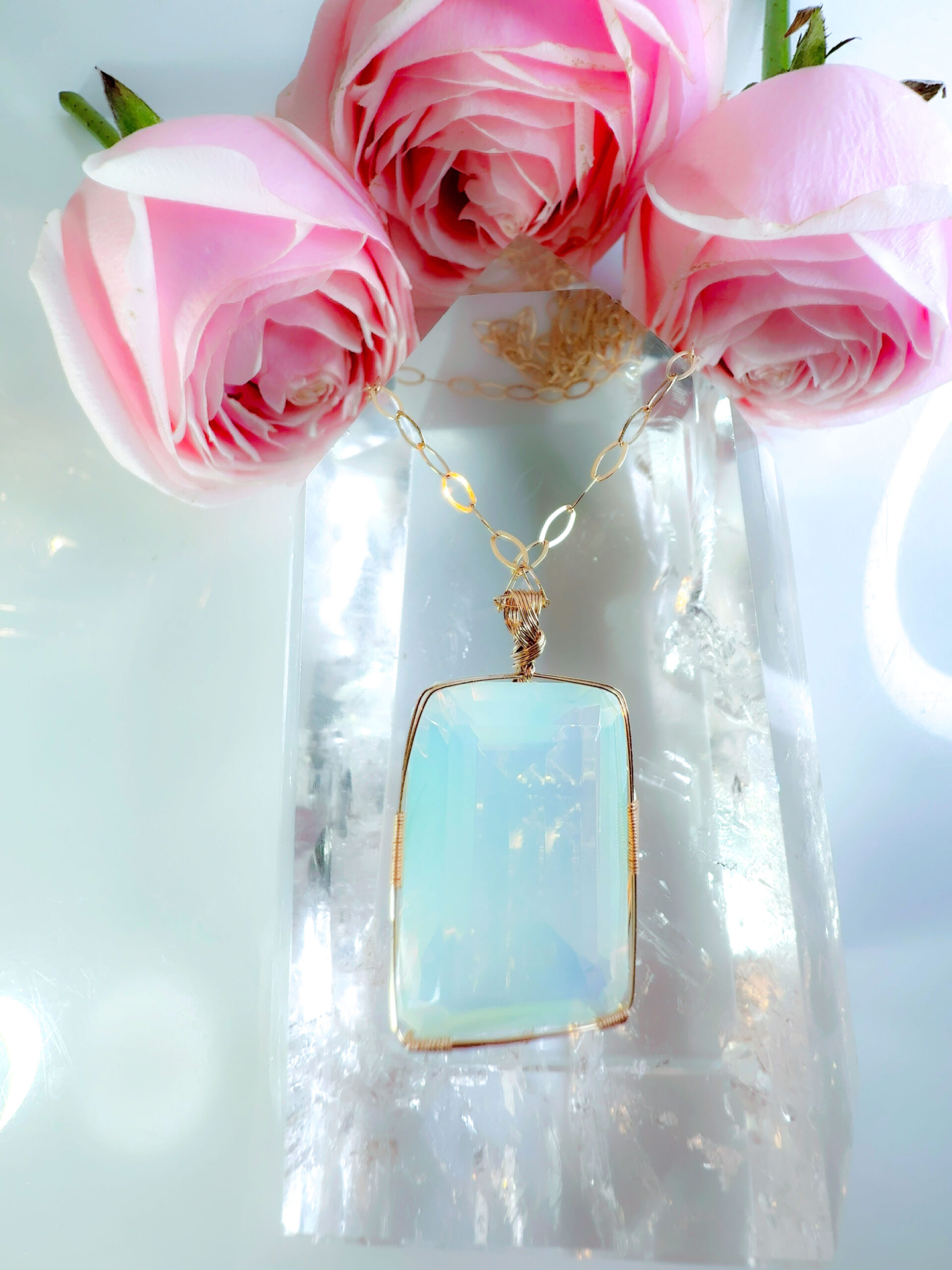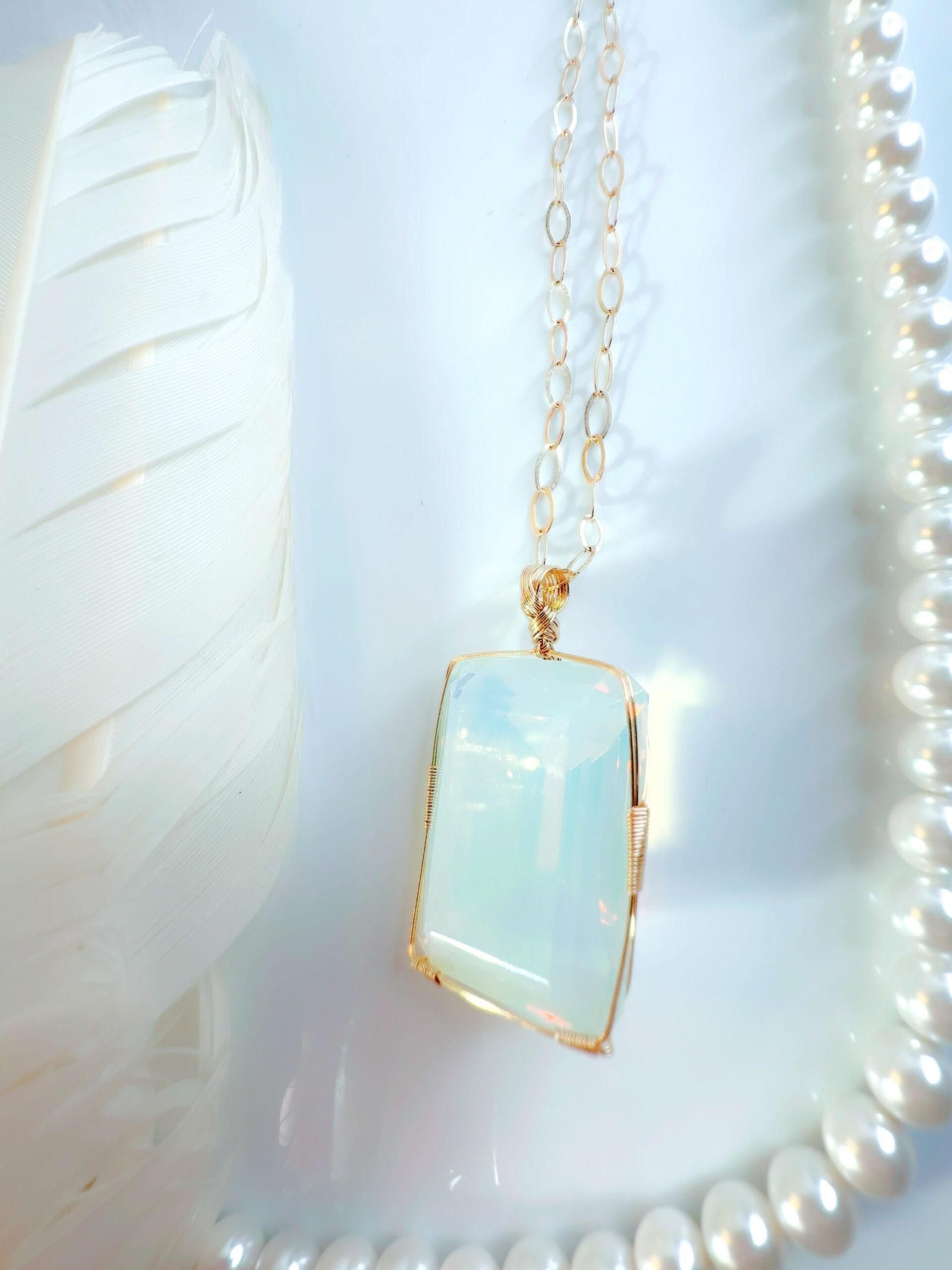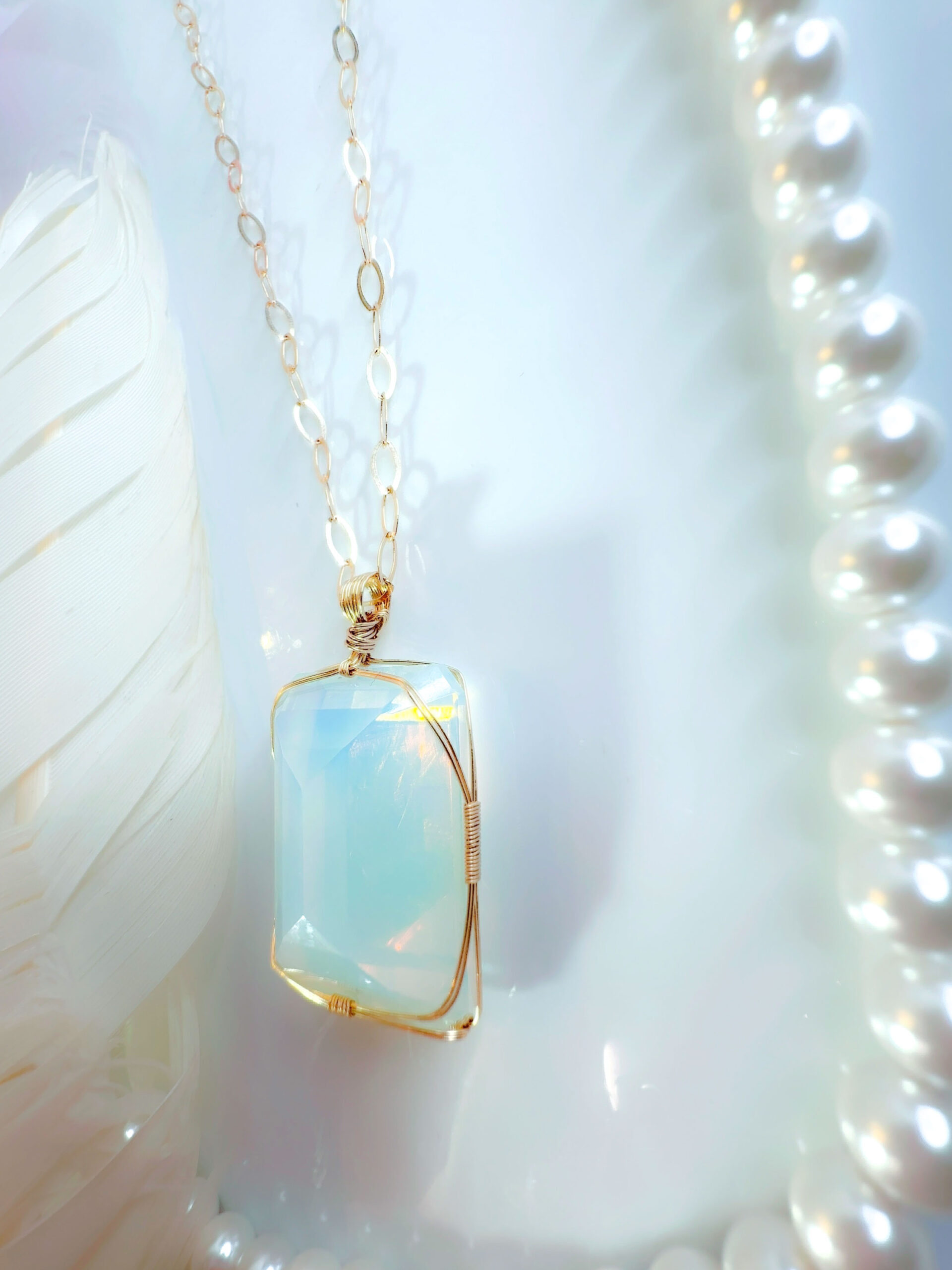 【ARCTURIAN HEALING】アンダラクリスタル宝石(51.5CT!/オパレッセントアクア&ミント&ゴールド/エメラルドカット/超レア!) 【BREATH of LIFE】14KGF女神巻き®︎魔法のペンダント✴︎14KGFネックレス付き♪ 【11:11 LEMURIAN VENUS jewelry】【永遠美の秘宝/超超超希少! 1点もの】 (andara1314)