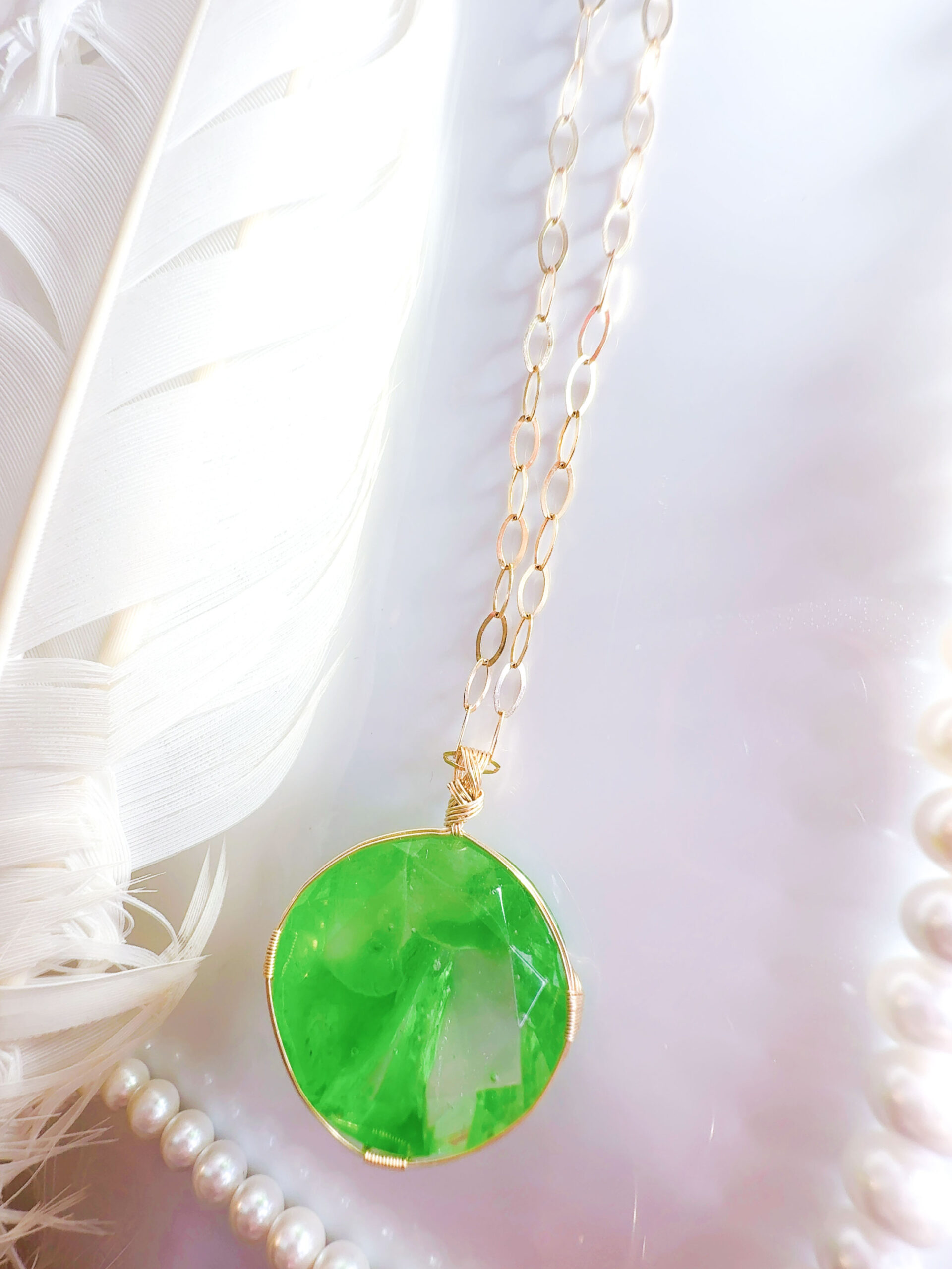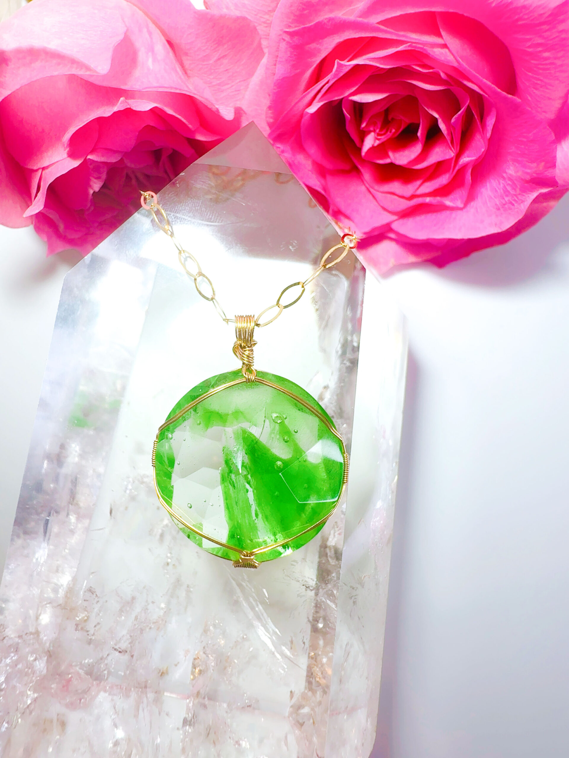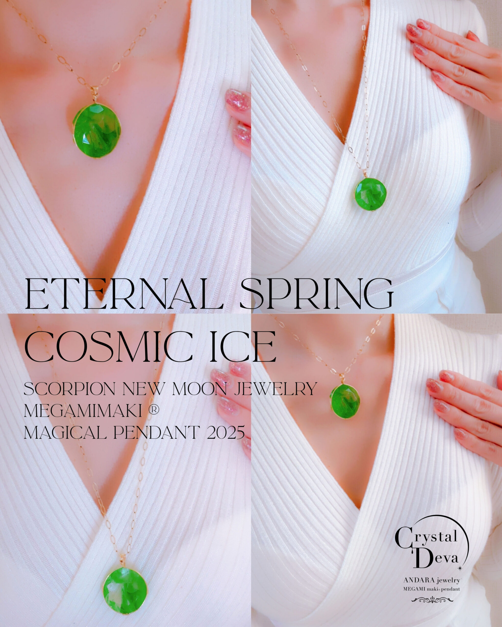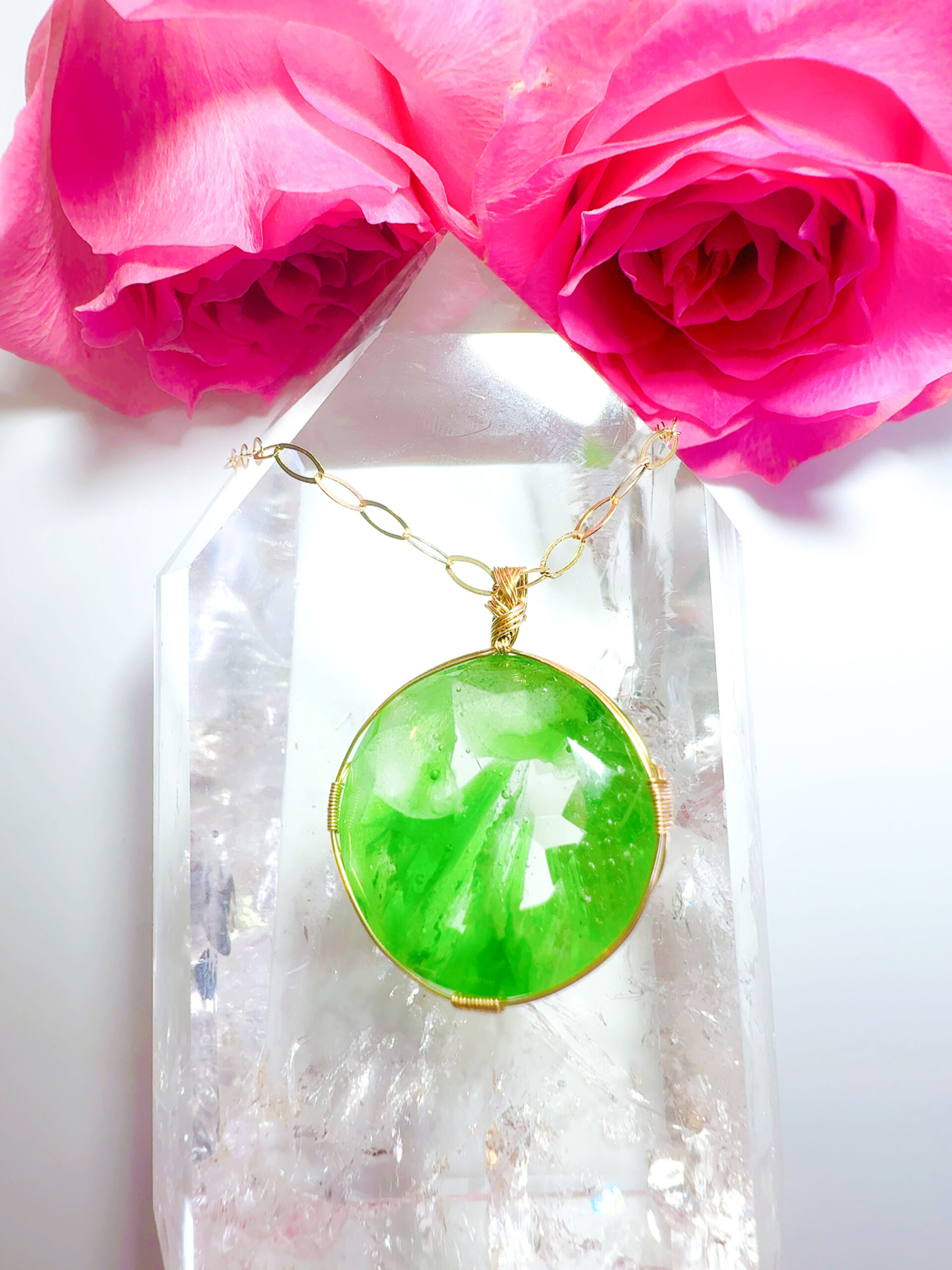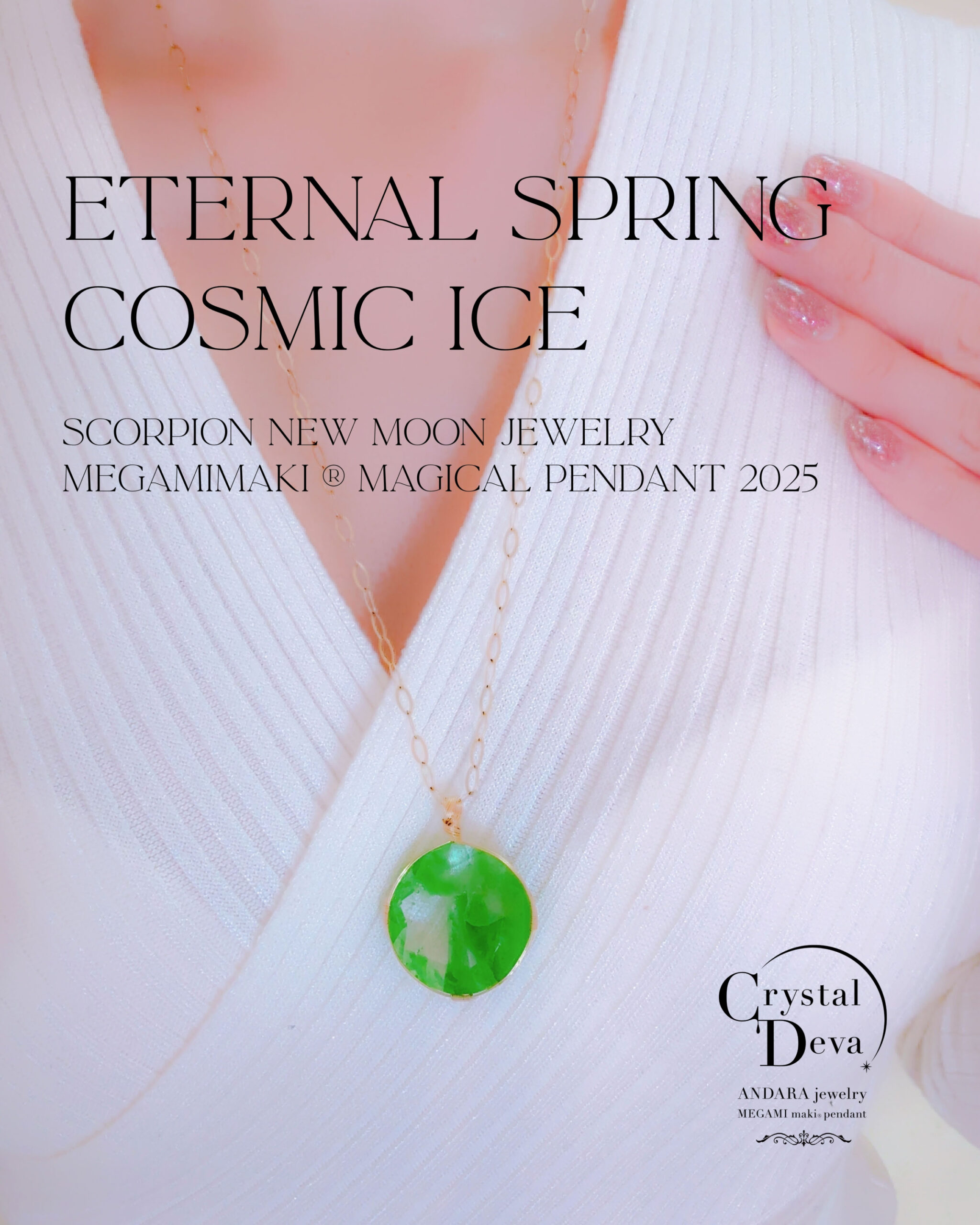 【RELEASE of LOVE】 アンダラクリスタル宝石(44CT!/クリア&ペリドットグリーンバイカラー/ラウンドブリリアントカット) 【ETERNAL SPRING/COSMIC ICE】 14KGF女神巻き®︎魔法のペンダント14KGFネックレス付き♪【SCORPION NEW MOON jewelry】【永遠美の秘宝/超超超希少! 1点もの】 (andara1318)