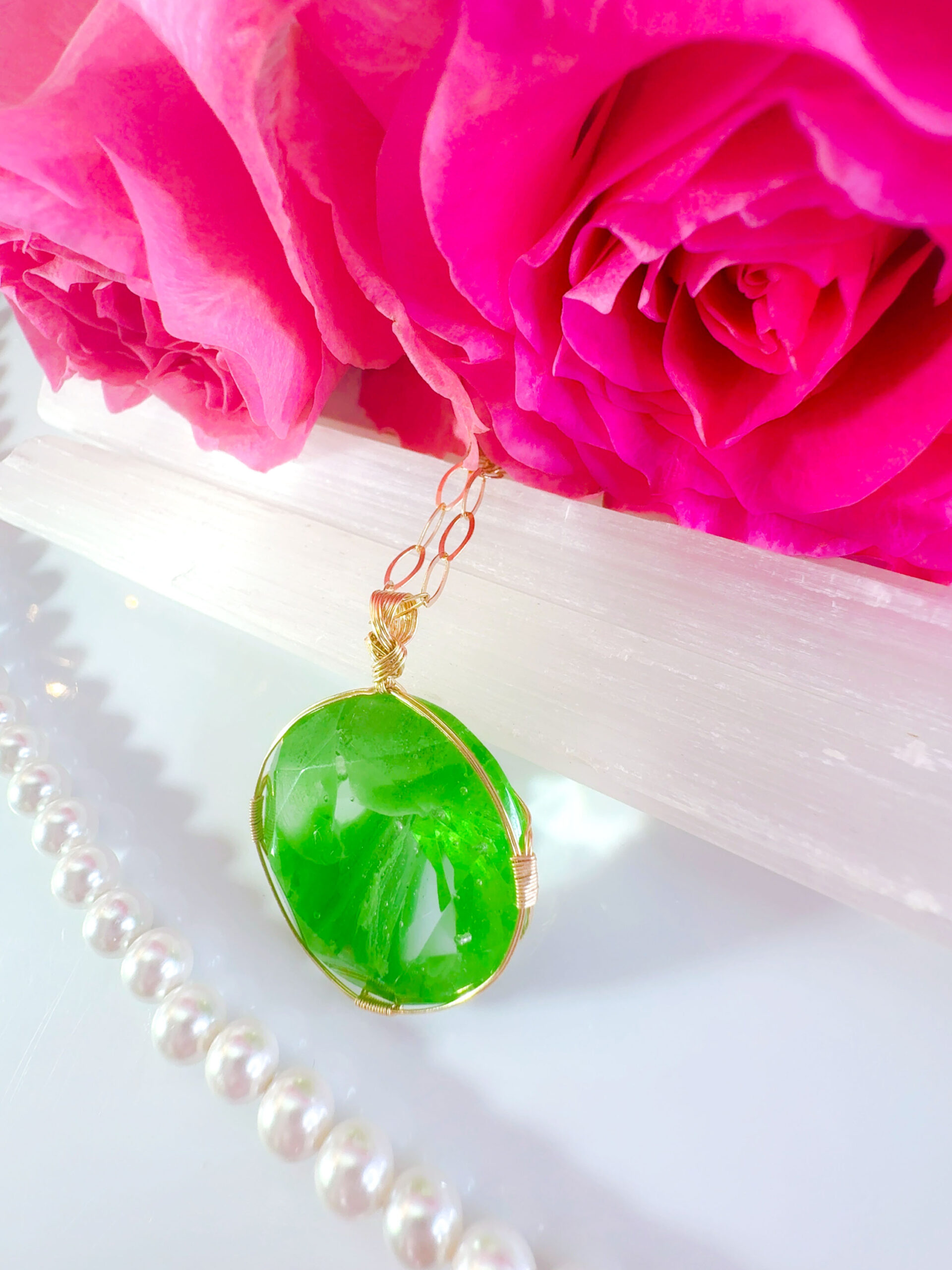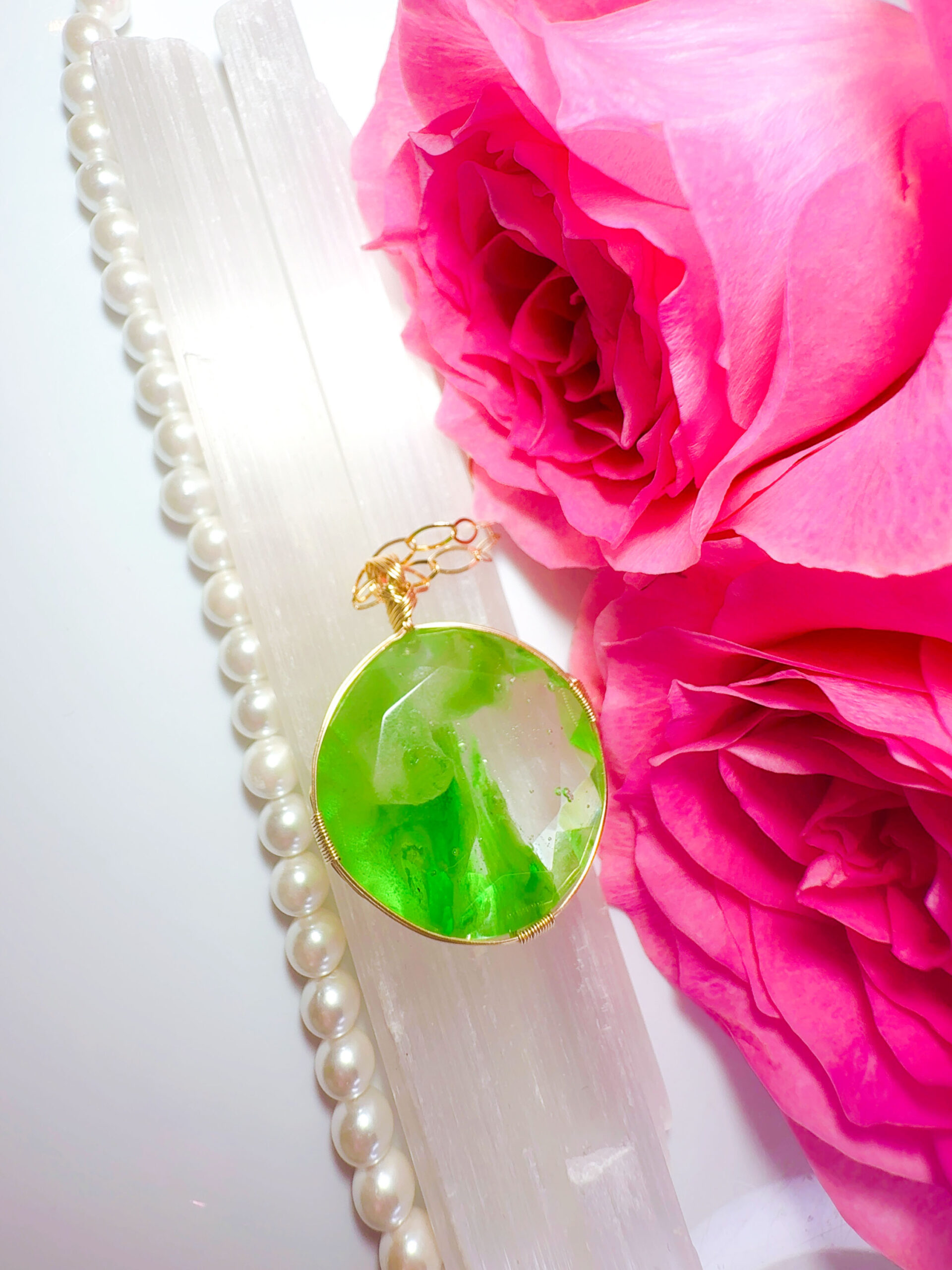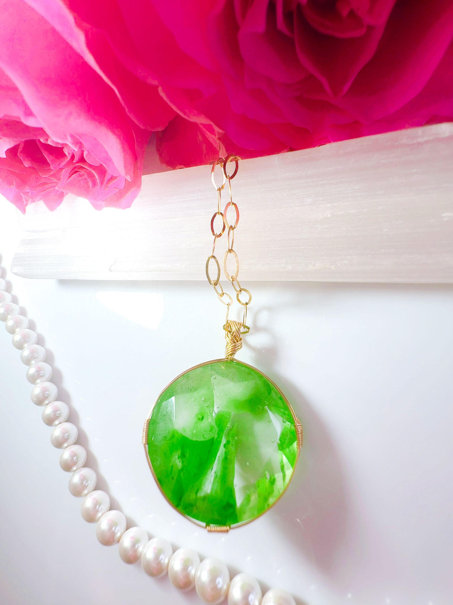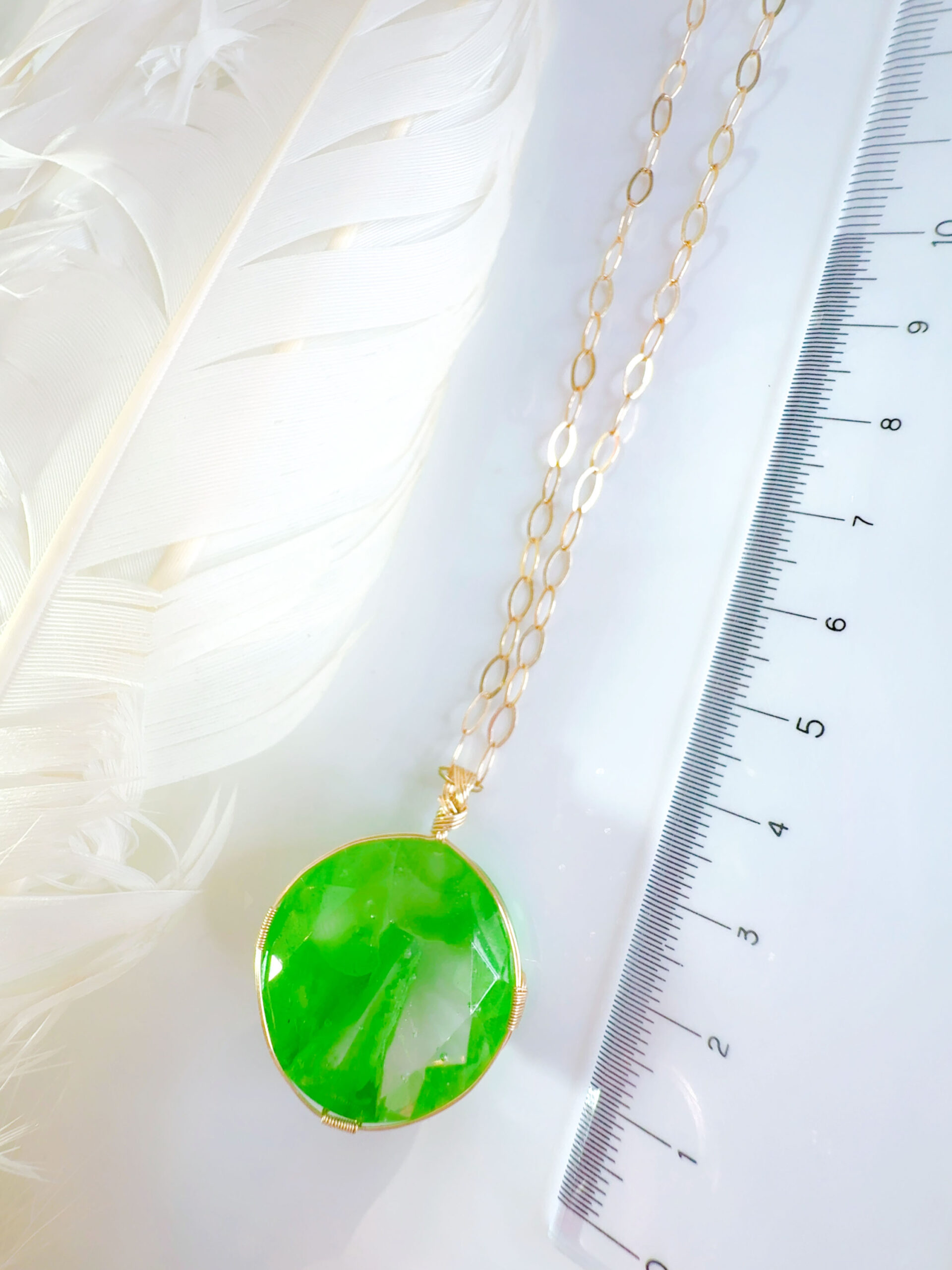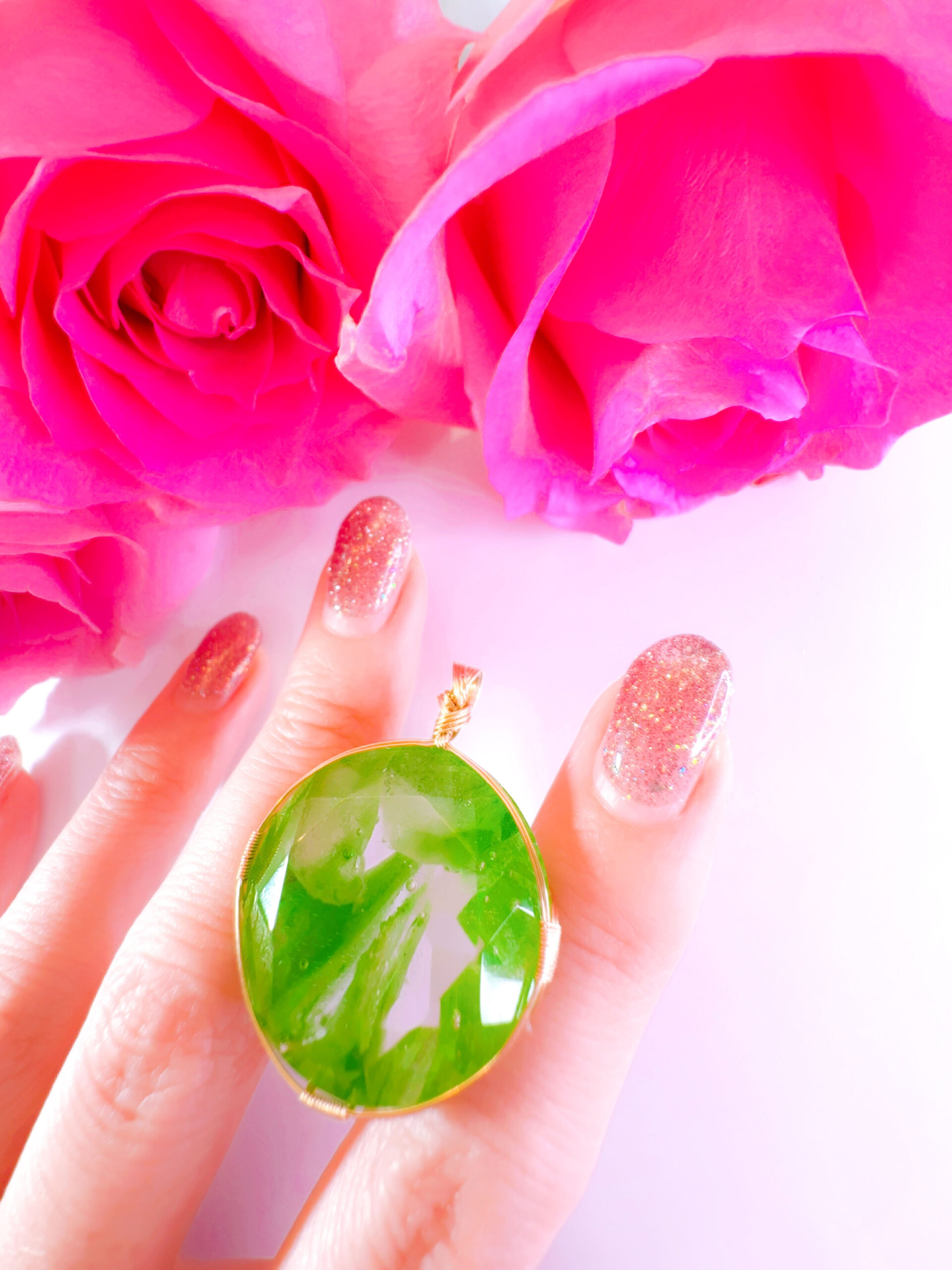 【RELEASE of LOVE】 アンダラクリスタル宝石(44CT!/クリア&ペリドットグリーンバイカラー/ラウンドブリリアントカット) 【ETERNAL SPRING/COSMIC ICE】 14KGF女神巻き®︎魔法のペンダント14KGFネックレス付き♪【SCORPION NEW MOON jewelry】【永遠美の秘宝/超超超希少! 1点もの】 (andara1318)