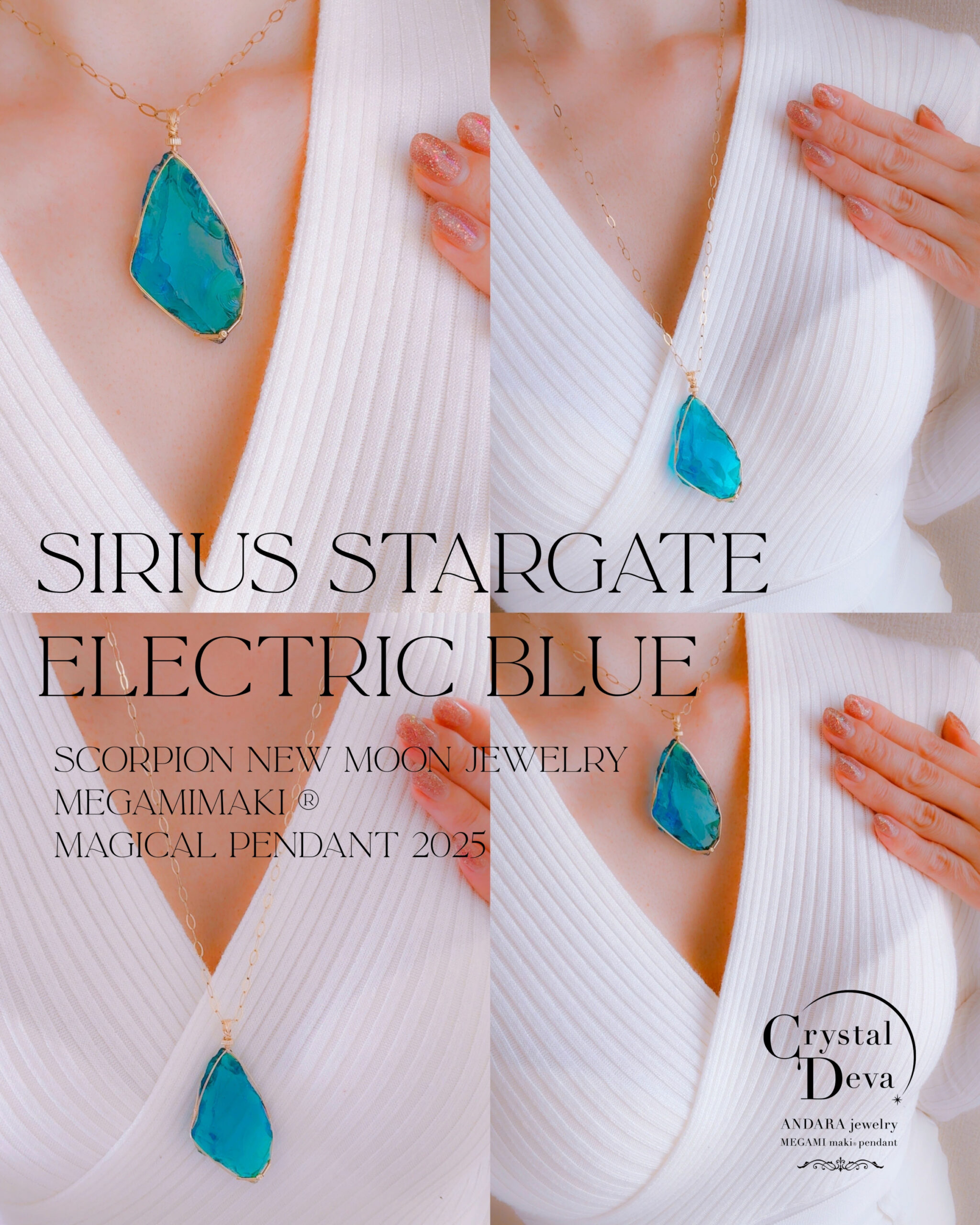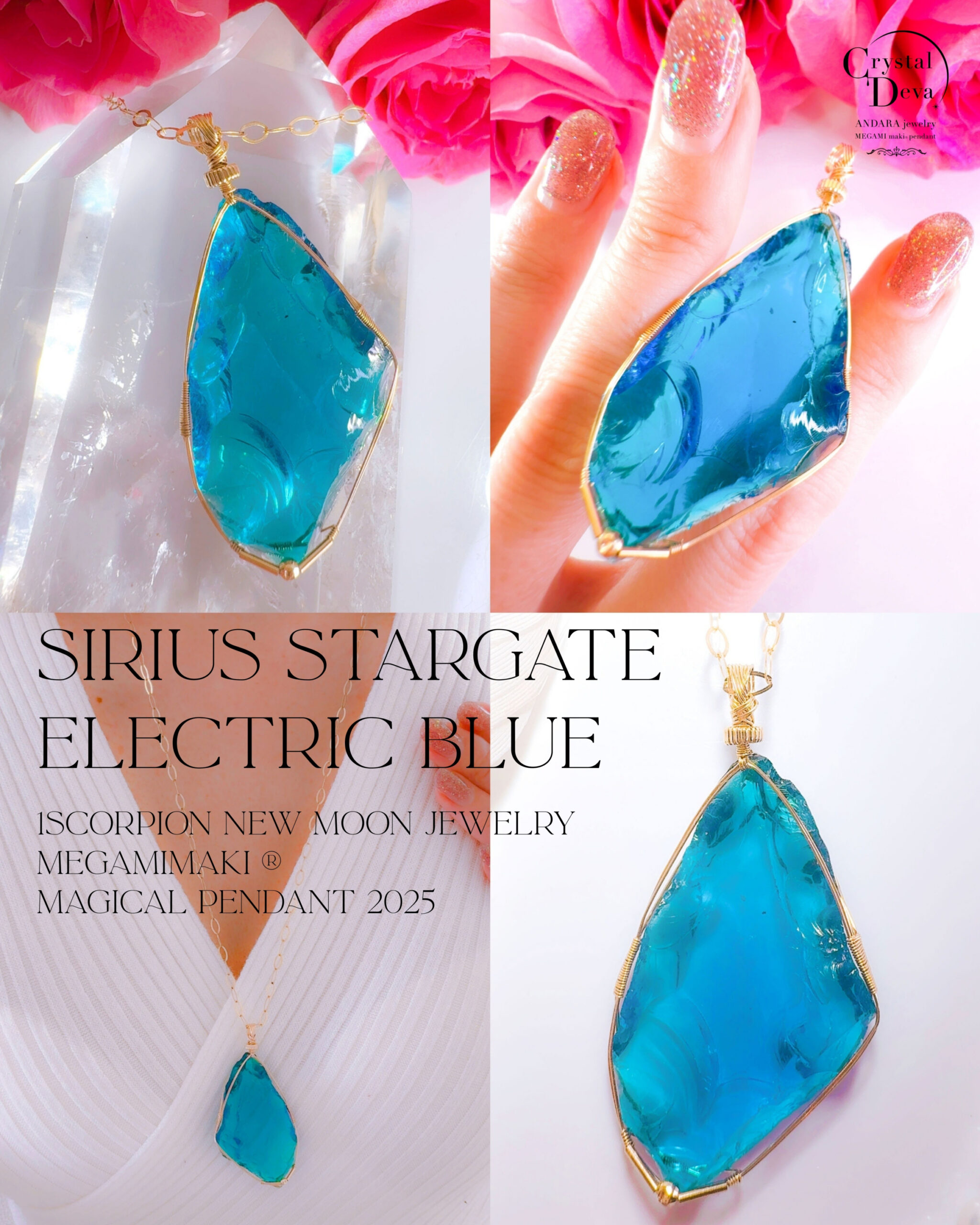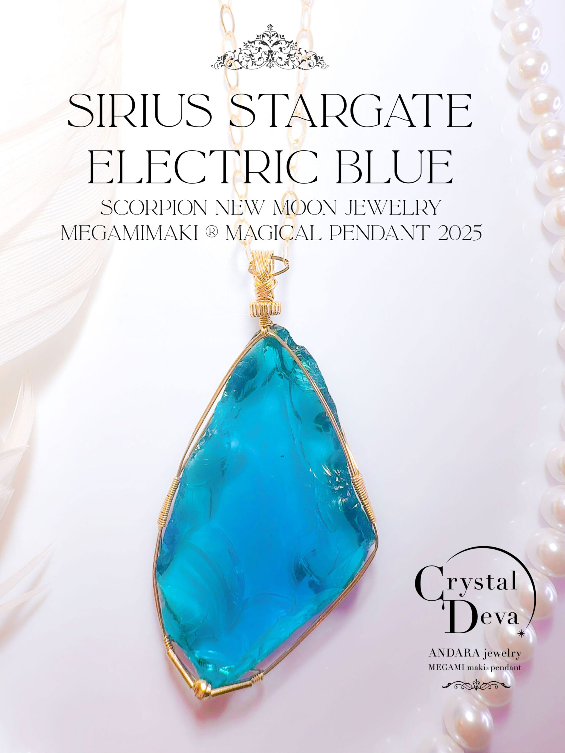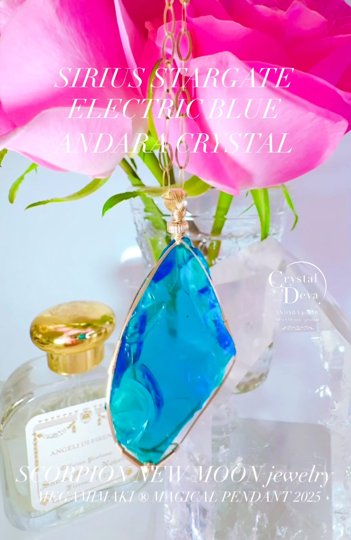 アンダラクリスタル美原石(49CT!/シリウスエレクトリックブルー) 【ELOHIM/SIRIUS STARGATE】 14KGF女神巻き®︎魔法のペンダント14KGFネックレス付き♪【SCORPION NEW MOON jewelry】【永遠美の秘宝/超超超希少! 1点もの】 (andara3139)