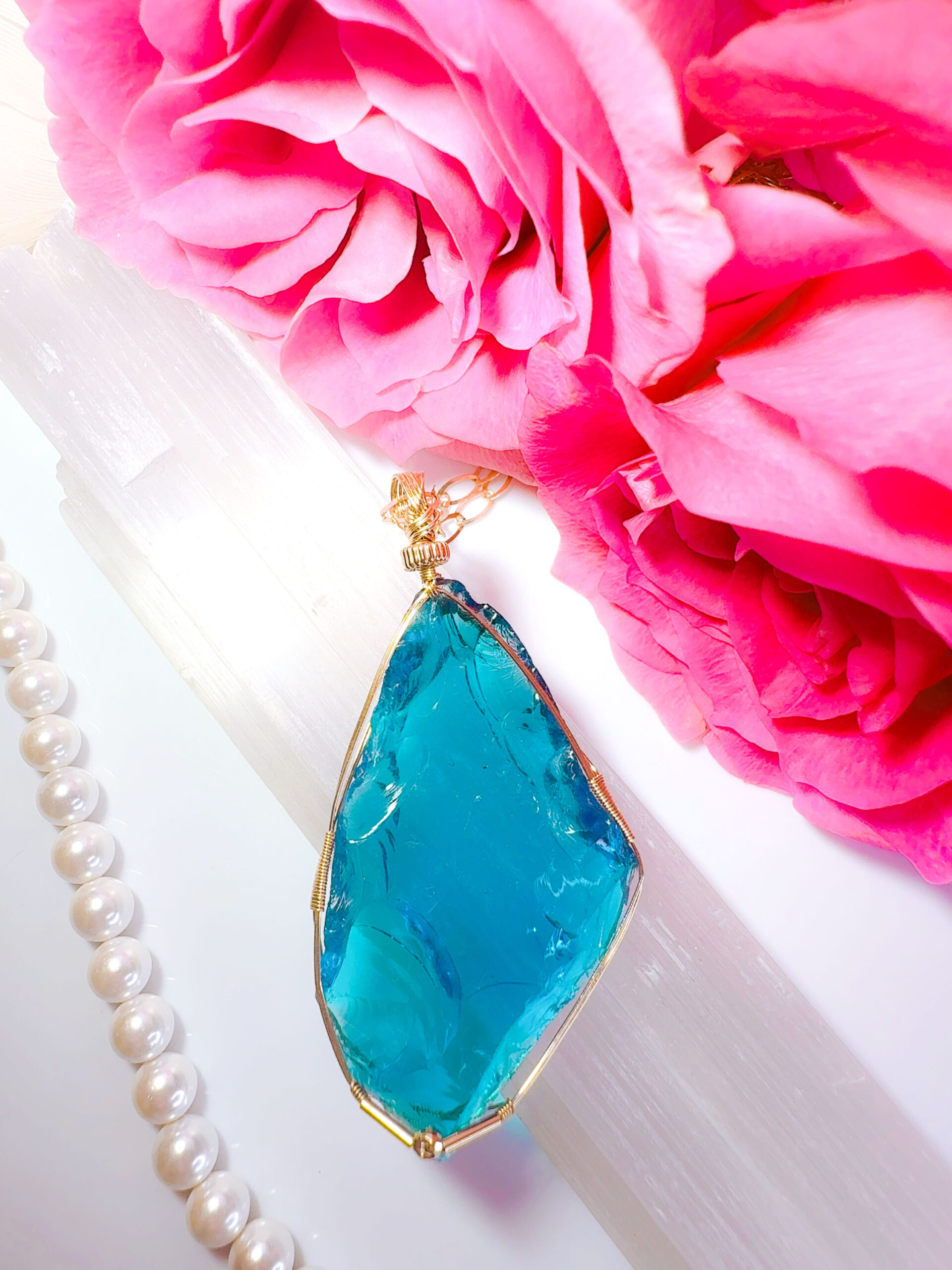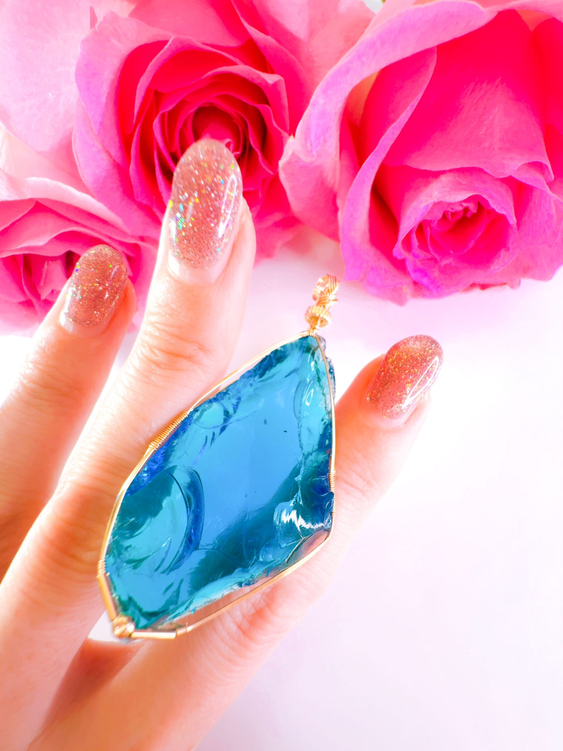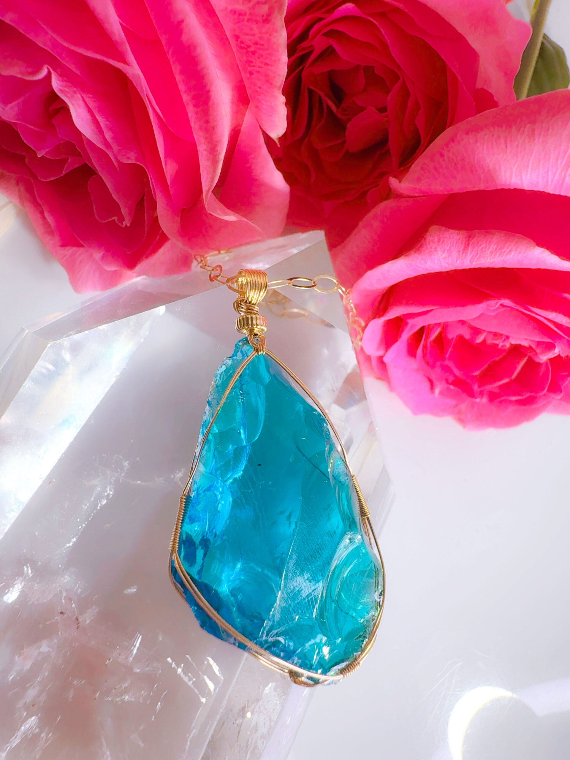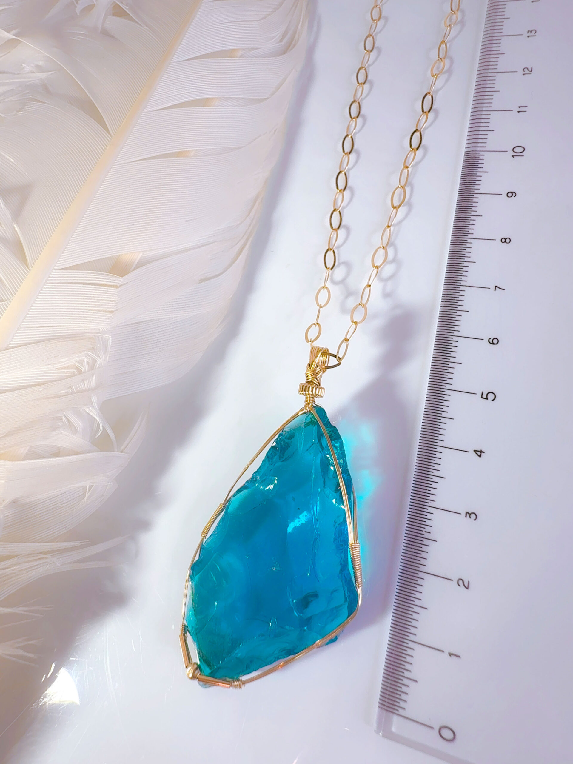 アンダラクリスタル美原石(49CT!/シリウスエレクトリックブルー) 【ELOHIM/SIRIUS STARGATE】 14KGF女神巻き®︎魔法のペンダント14KGFネックレス付き♪【SCORPION NEW MOON jewelry】【永遠美の秘宝/超超超希少! 1点もの】 (andara3139)