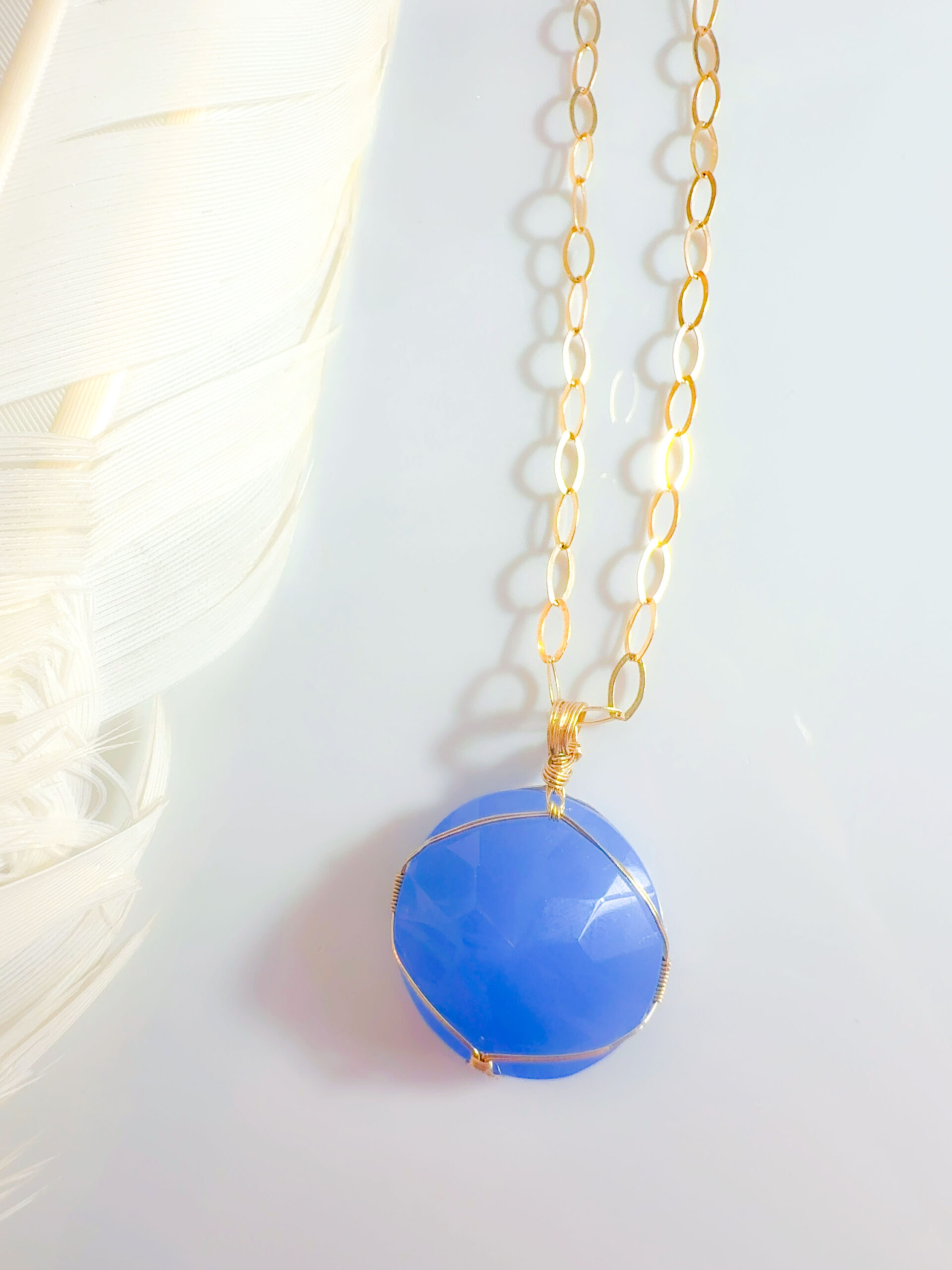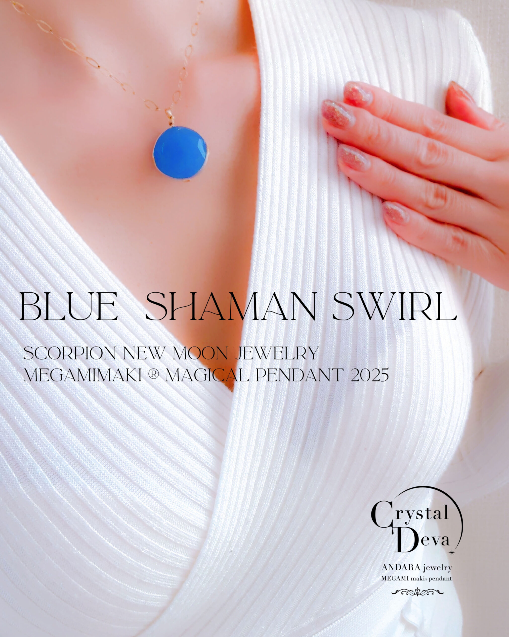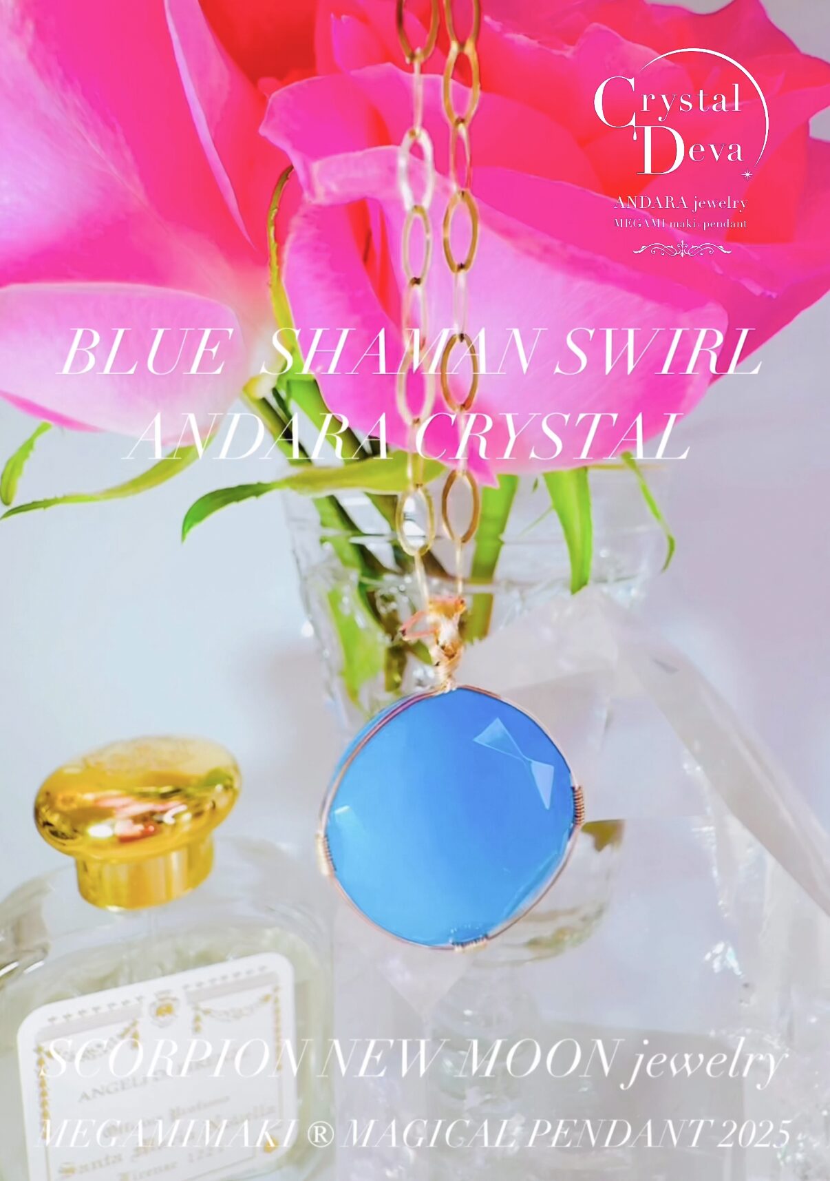 【BLUE SHAMAN SWIRL】 アンダラクリスタル宝石(21CT!/オパレッセントヴァイオレットブルー/セミトランスペアレンス/ラウンドブリリアントカット/超レア!) 【SOUL MISSION HEALING】 14KGF女神巻き®︎魔法のペンダント14KGFネックレス付き♪【SCORPION NEW MOON jewelry】【永遠美の秘宝/超超超希少! 1点もの】 (andara1340)