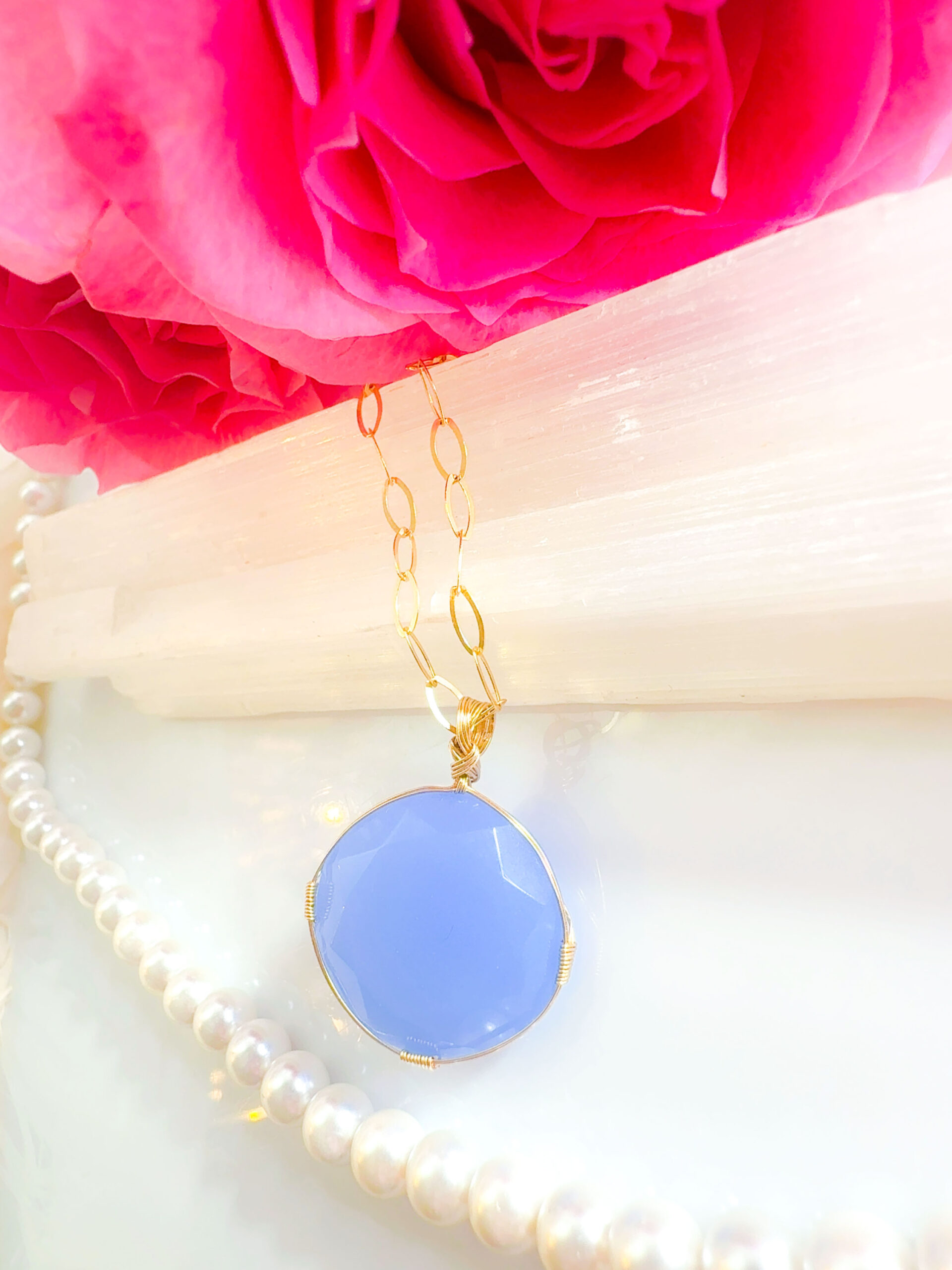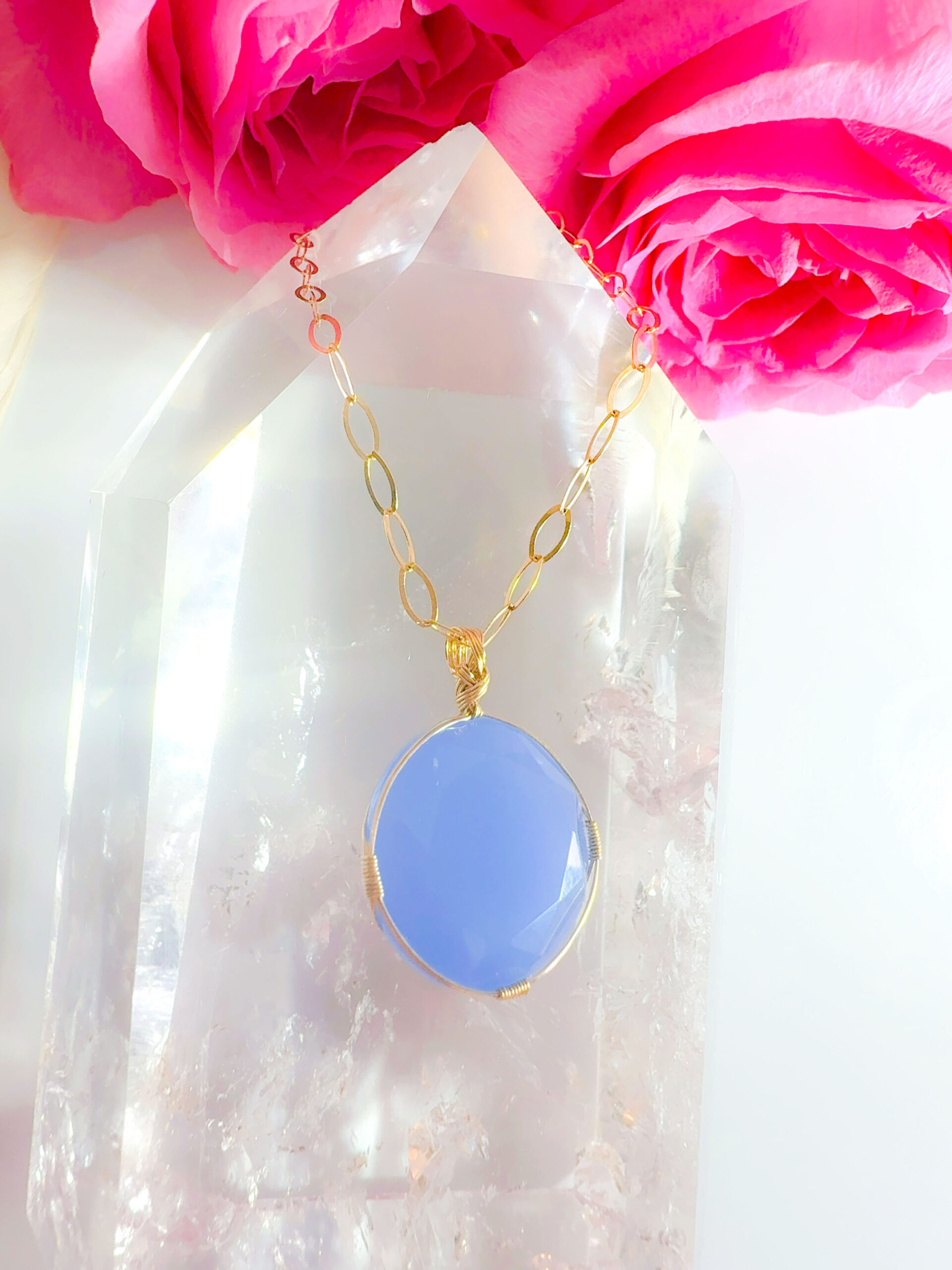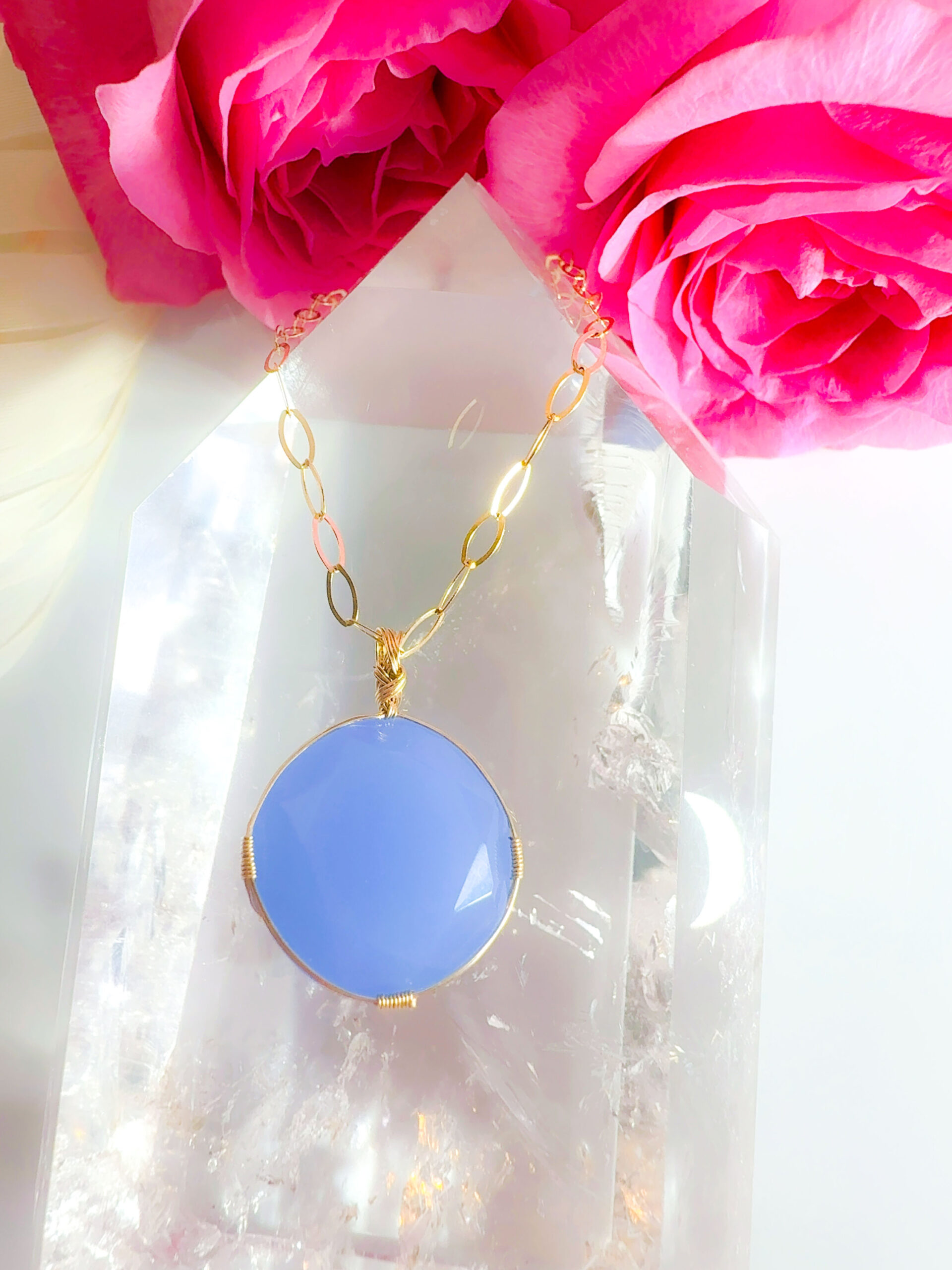 【BLUE SHAMAN SWIRL】 アンダラクリスタル宝石(21CT!/オパレッセントヴァイオレットブルー/セミトランスペアレンス/ラウンドブリリアントカット/超レア!) 【SOUL MISSION HEALING】 14KGF女神巻き®︎魔法のペンダント14KGFネックレス付き♪【SCORPION NEW MOON jewelry】【永遠美の秘宝/超超超希少! 1点もの】 (andara1340)