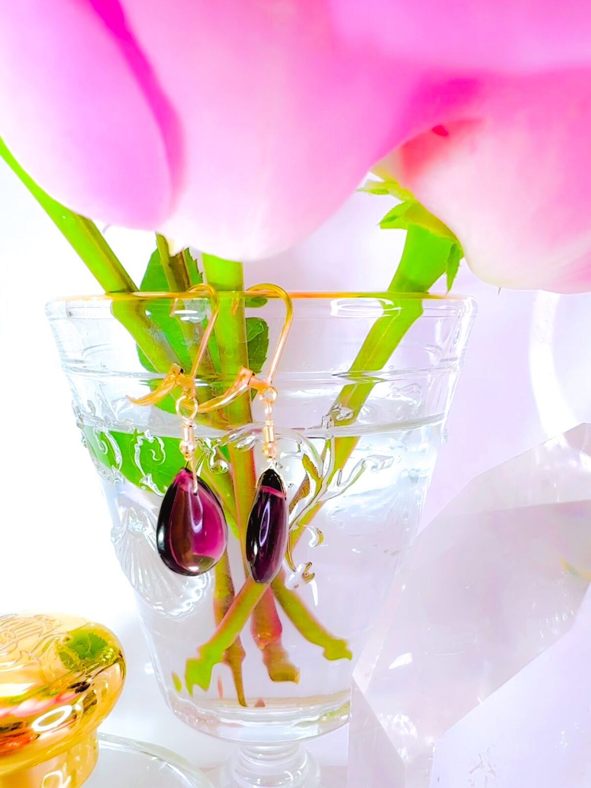 【EYE of METATRON】アンダラクリスタル宝石(5.5CT!/カラーチェンジラズベリーパープル/艶やかティアドロップビーズ) 14KGFレバーフックピアス【SCORPION NEW MOON jewelry】【永遠美の秘宝/超超希少! 1点もの】 (andaraearring040)