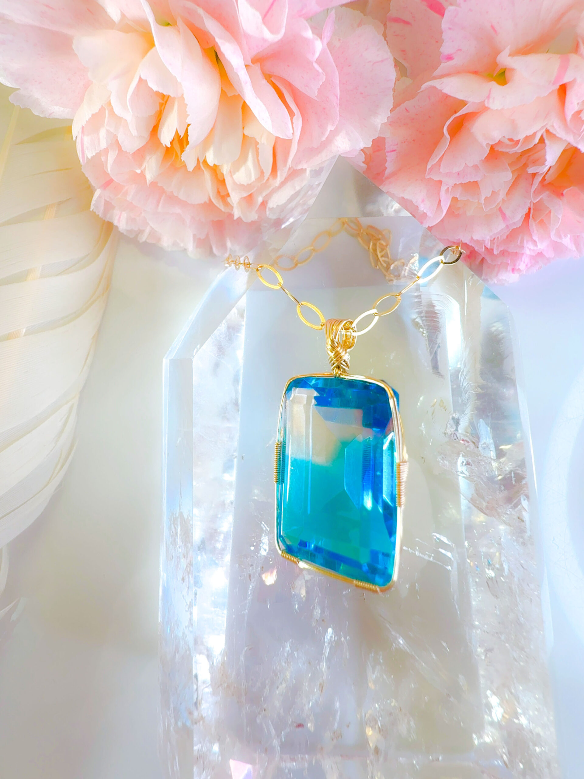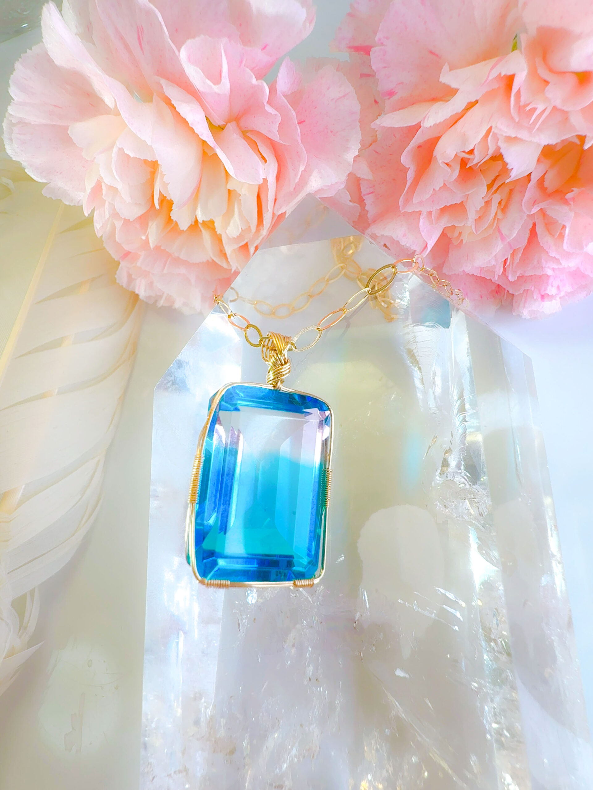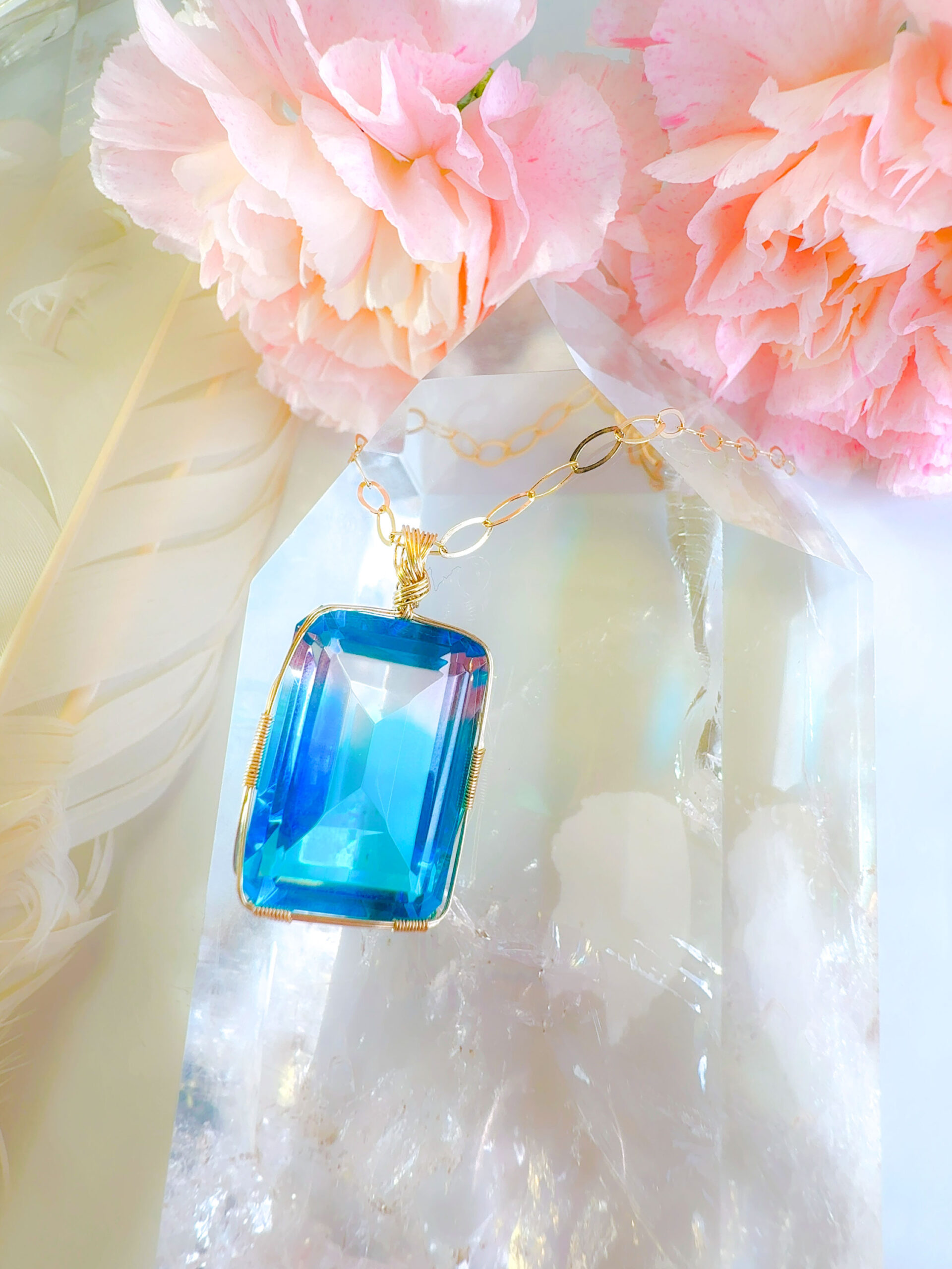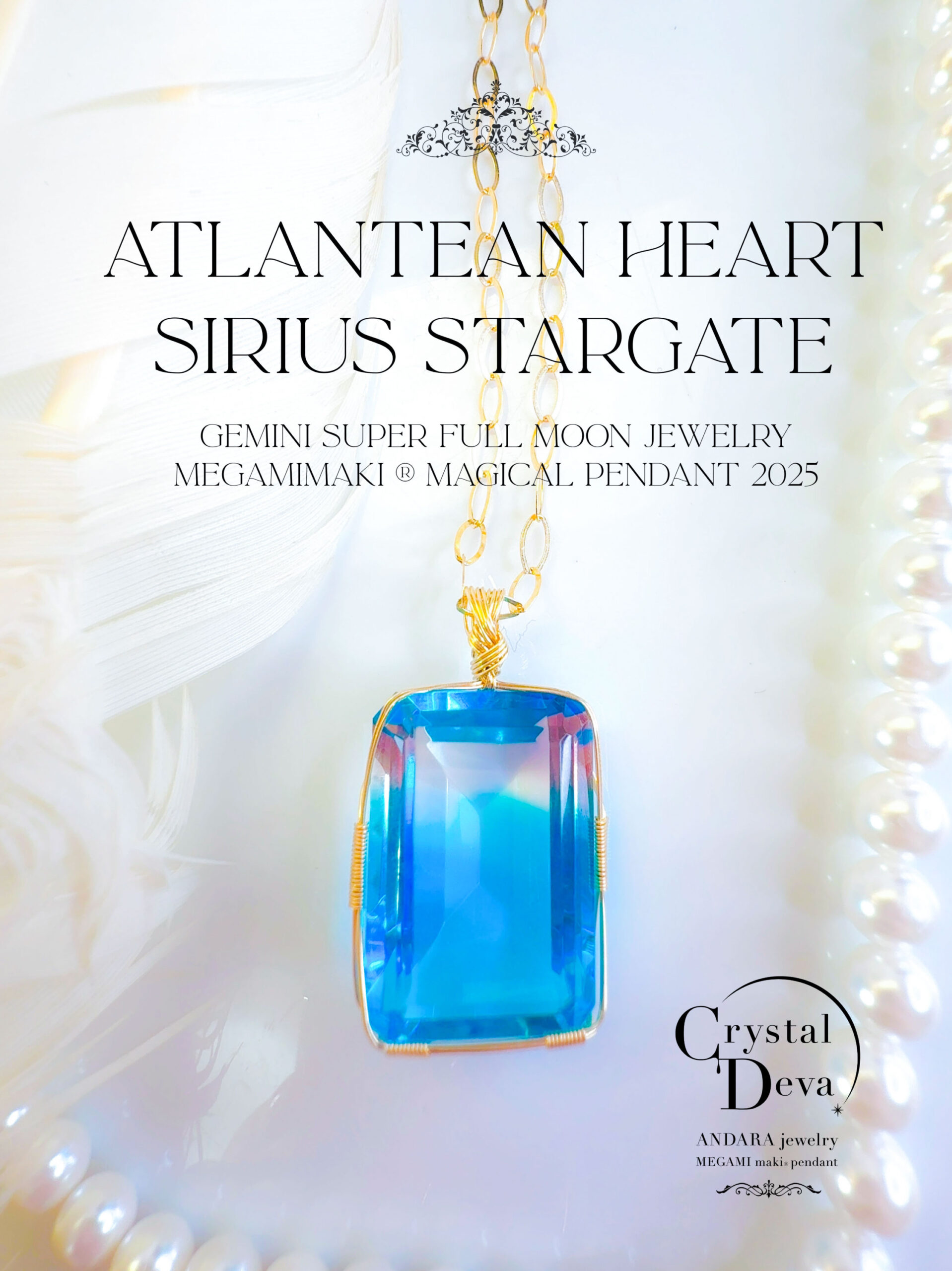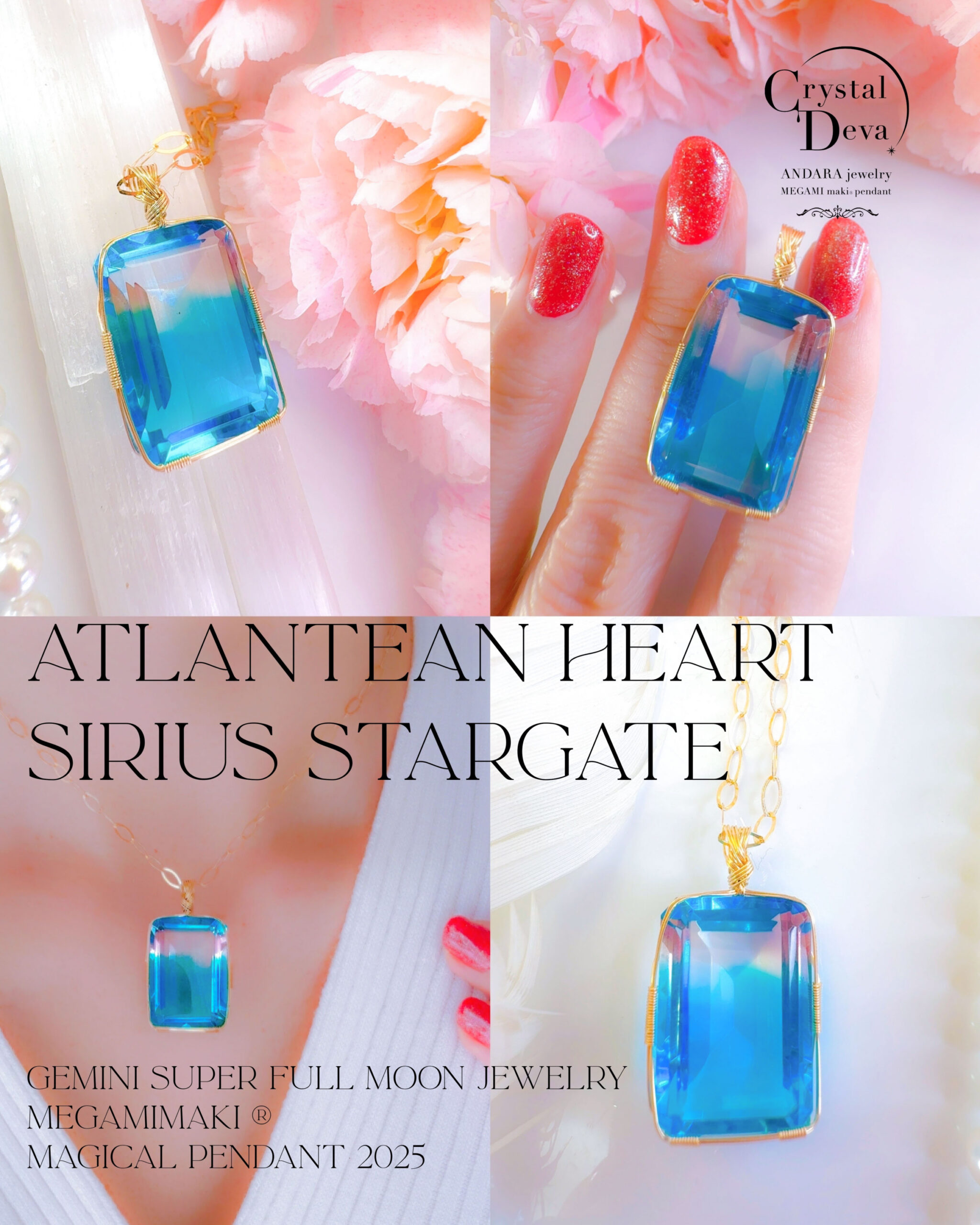 A.Hさまご予約済み♡ 【SIRIUS STARGATE】アンダラクリスタル宝石(37.5CT!/エレクトリックシリウスブルー/クリアパープルバイカラー/エメラルドカット) 【ATLANTEAN HEART】 14KGF女神巻き®︎魔法のペンダント14KGFネックレス付き♪【GEMINI SUPER FULL MOON jewelry】【永遠美の秘宝/超超超希少! 1点もの】 (andara1342)