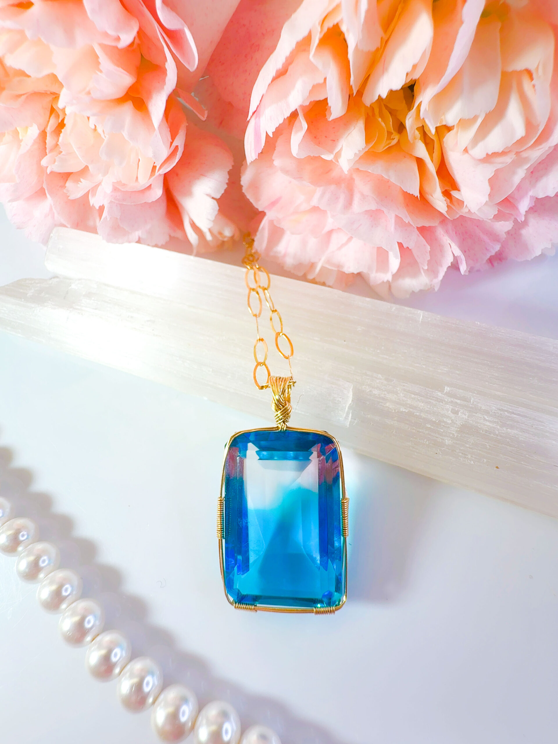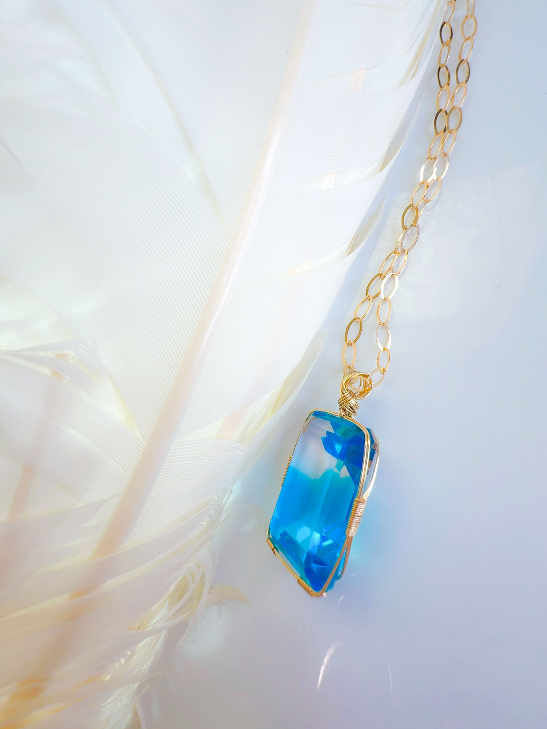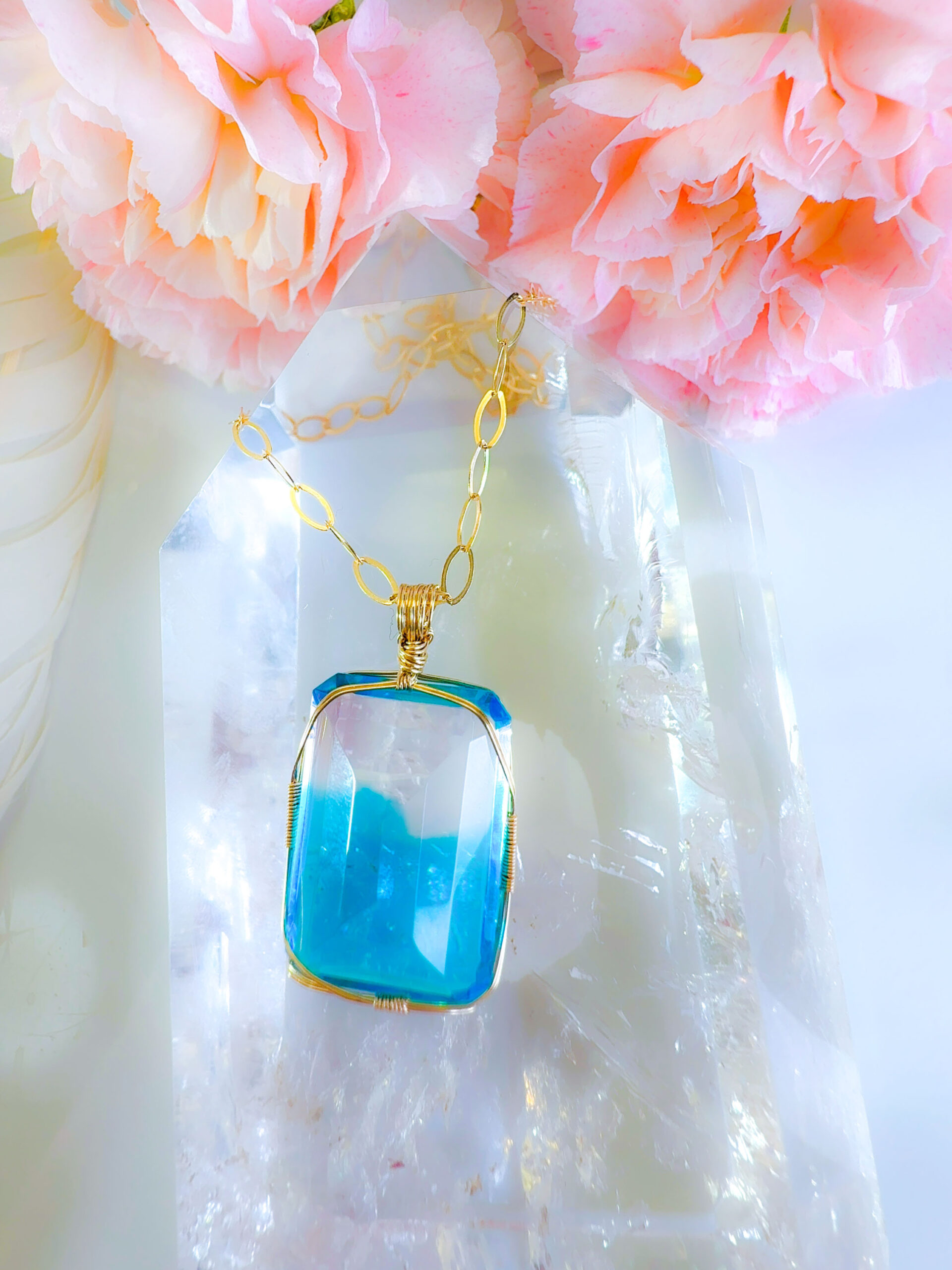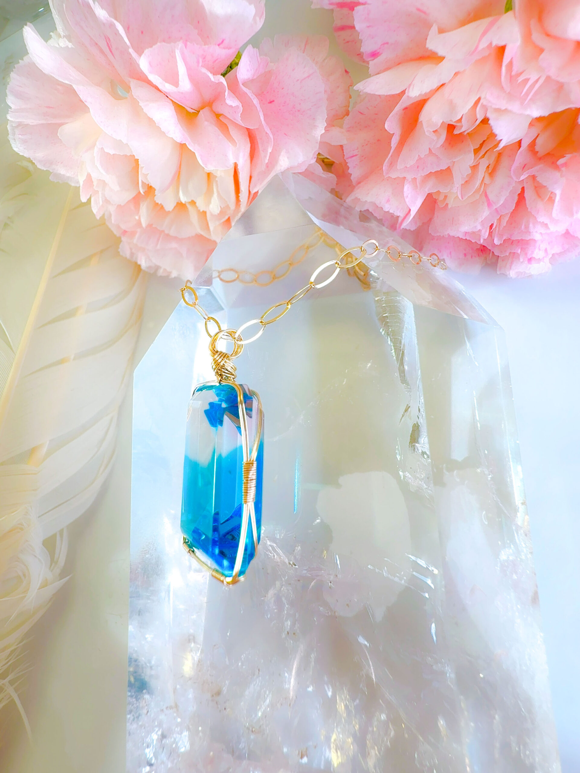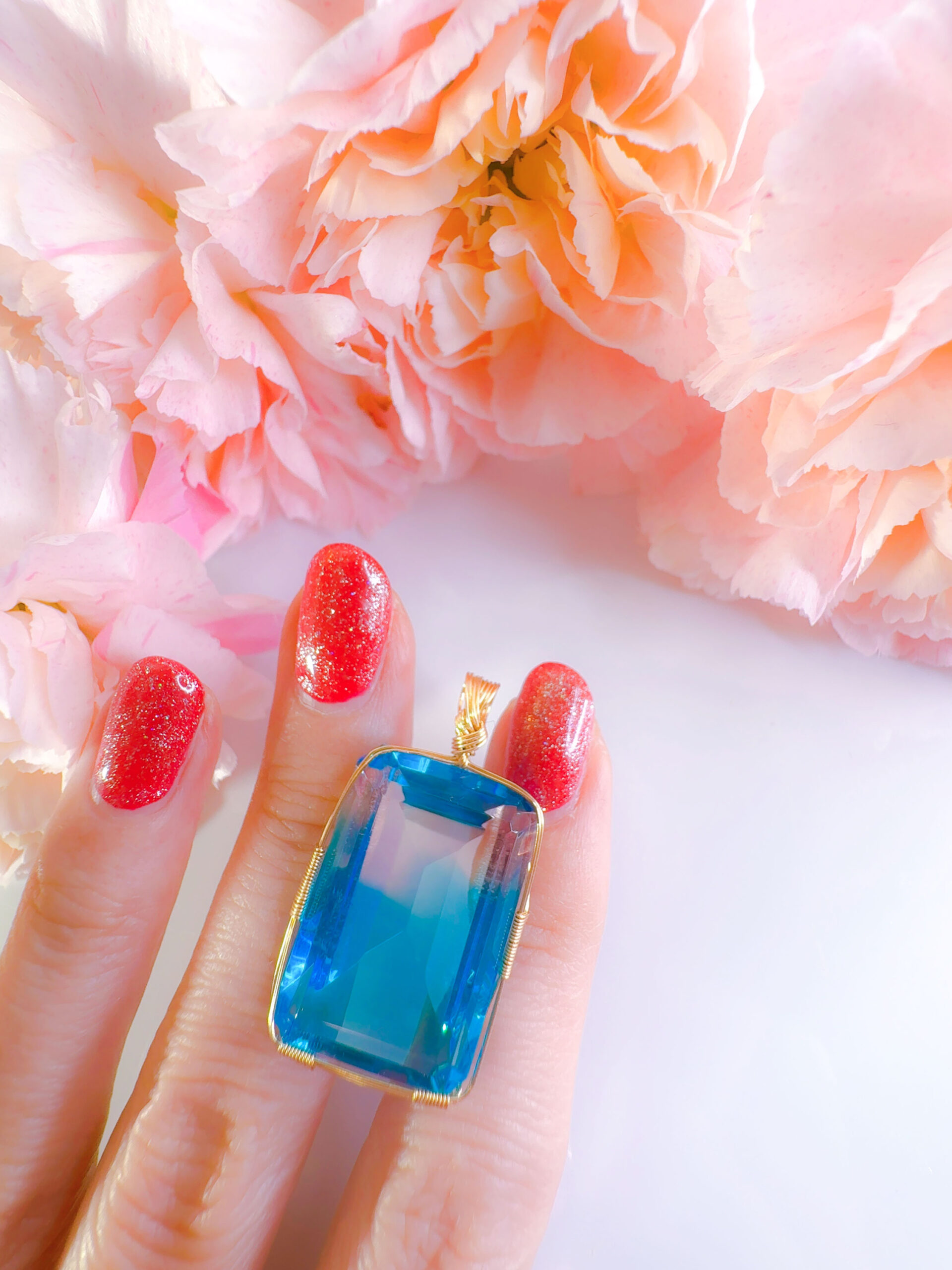 A.Hさまご予約済み♡ 【SIRIUS STARGATE】アンダラクリスタル宝石(37.5CT!/エレクトリックシリウスブルー/クリアパープルバイカラー/エメラルドカット) 【ATLANTEAN HEART】 14KGF女神巻き®︎魔法のペンダント14KGFネックレス付き♪【GEMINI SUPER FULL MOON jewelry】【永遠美の秘宝/超超超希少! 1点もの】 (andara1342)