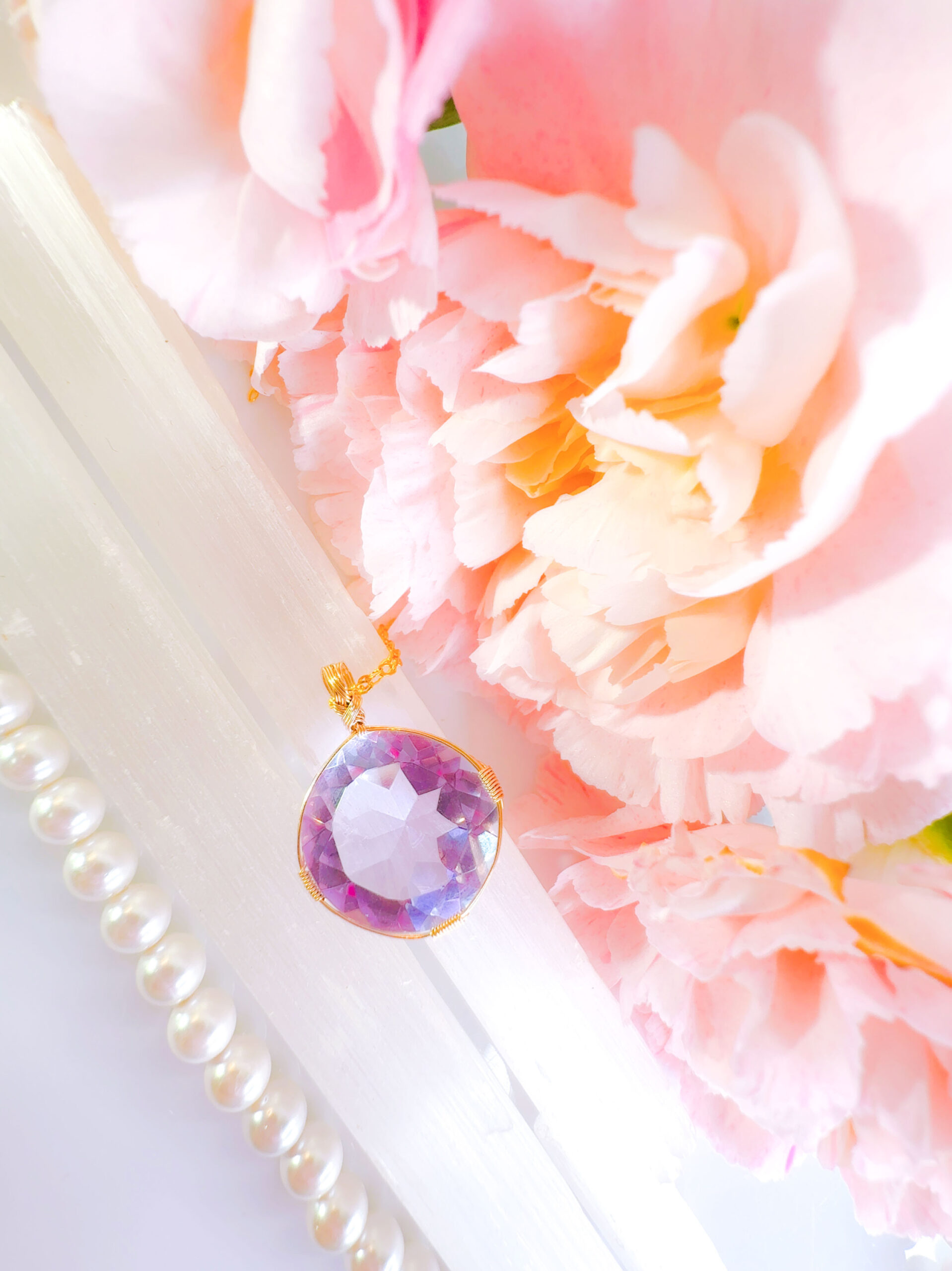 K.Oさまご予約すみ♡【ASCENDANT SPIRIT】アンダラクリスタル宝石(16.5CT/カラーチェンジライラックラベンダー/ハイクオリティ!/ラウンドブリリアントカット)【ASCENDANT LILAC】 14KGF女神巻き®︎魔法のペンダント【GEMINI SUPER FULL MOON jewelry】【永遠美の秘宝/超超超希少! 1点もの】 (andara1344)