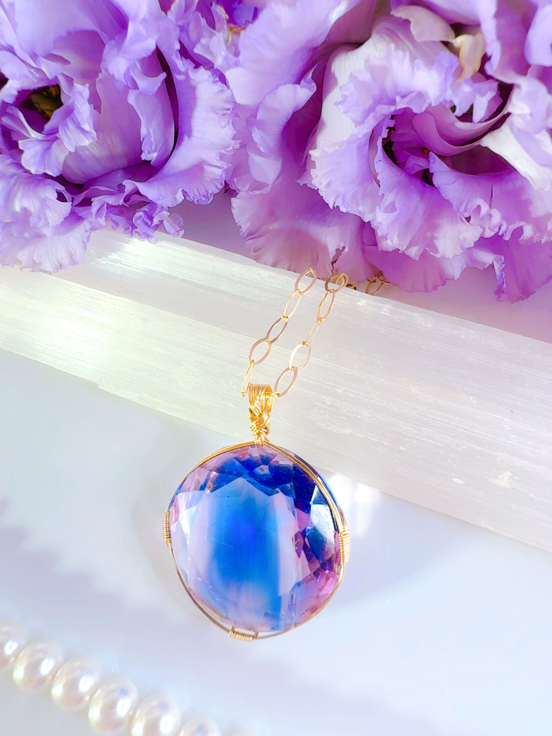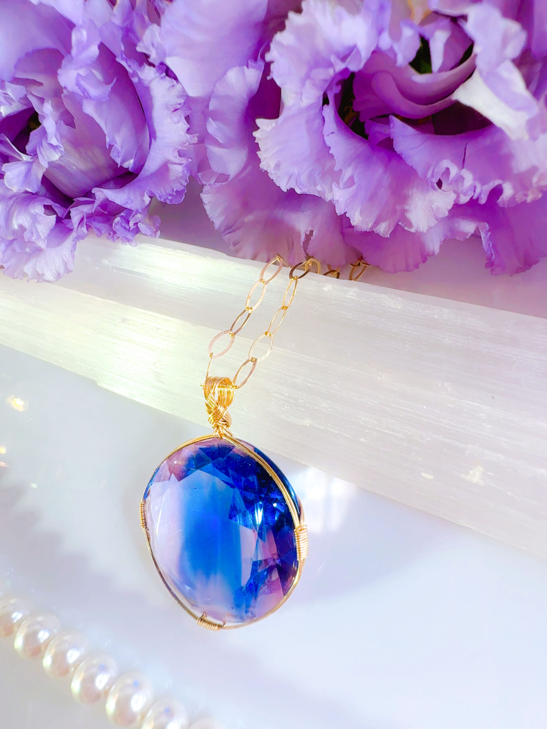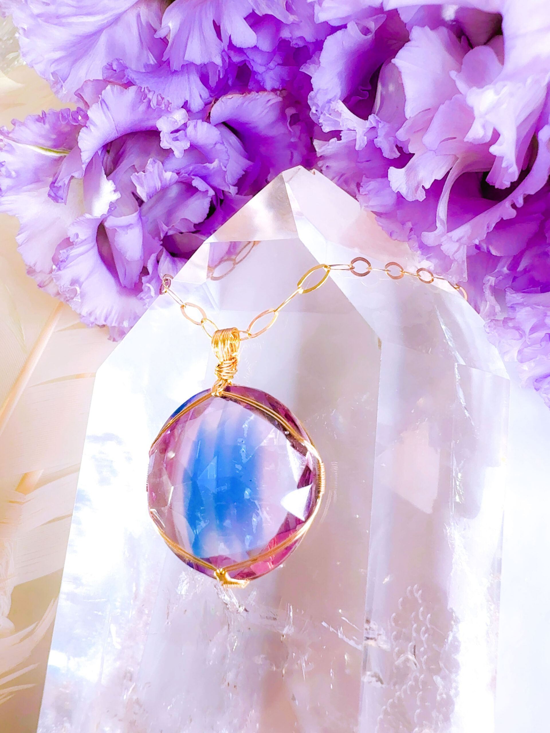 A.Yさまご予約済み♡【STARLIGHT SAPHIRE/ST.GERMAIN】アンダラクリスタル宝石(44CT!/サファイアブルー&パープルバイカラー/超レア!) 14KGF女神巻き®︎魔法のペンダント14KGFネックレス付き♪【SAGITTARIUS NEW MOON jewelry】【永遠美の秘宝/超超希少! 1点もの】 (andara1351)