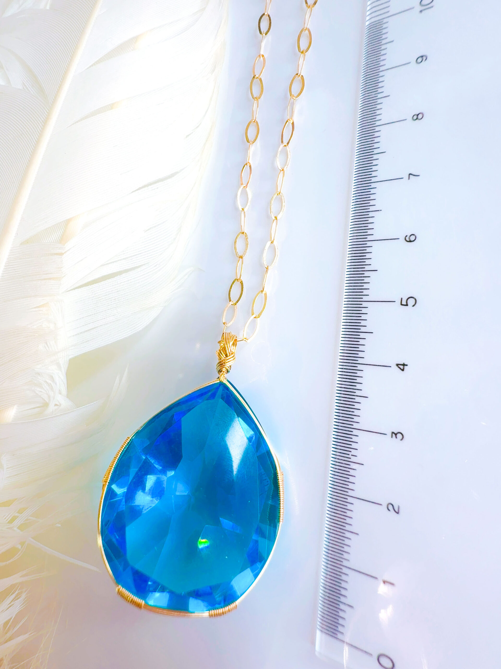 【 ISIS’s HOLY WATER】 アンダラクリスタル宝石(80CT/パライバエレクトリックブルー/ハイクオリティ!/ペアシェイプカット/超レア!) 【LEMURIAN BLUE STONE】【14KGFおおきな女神巻き®︎魔法のペンダント14KGFネックレス付き♪【SAGITTARIUS NEW MOON jewelry】【永遠美の秘宝/超超希少! 1点もの】 (andara1353)
