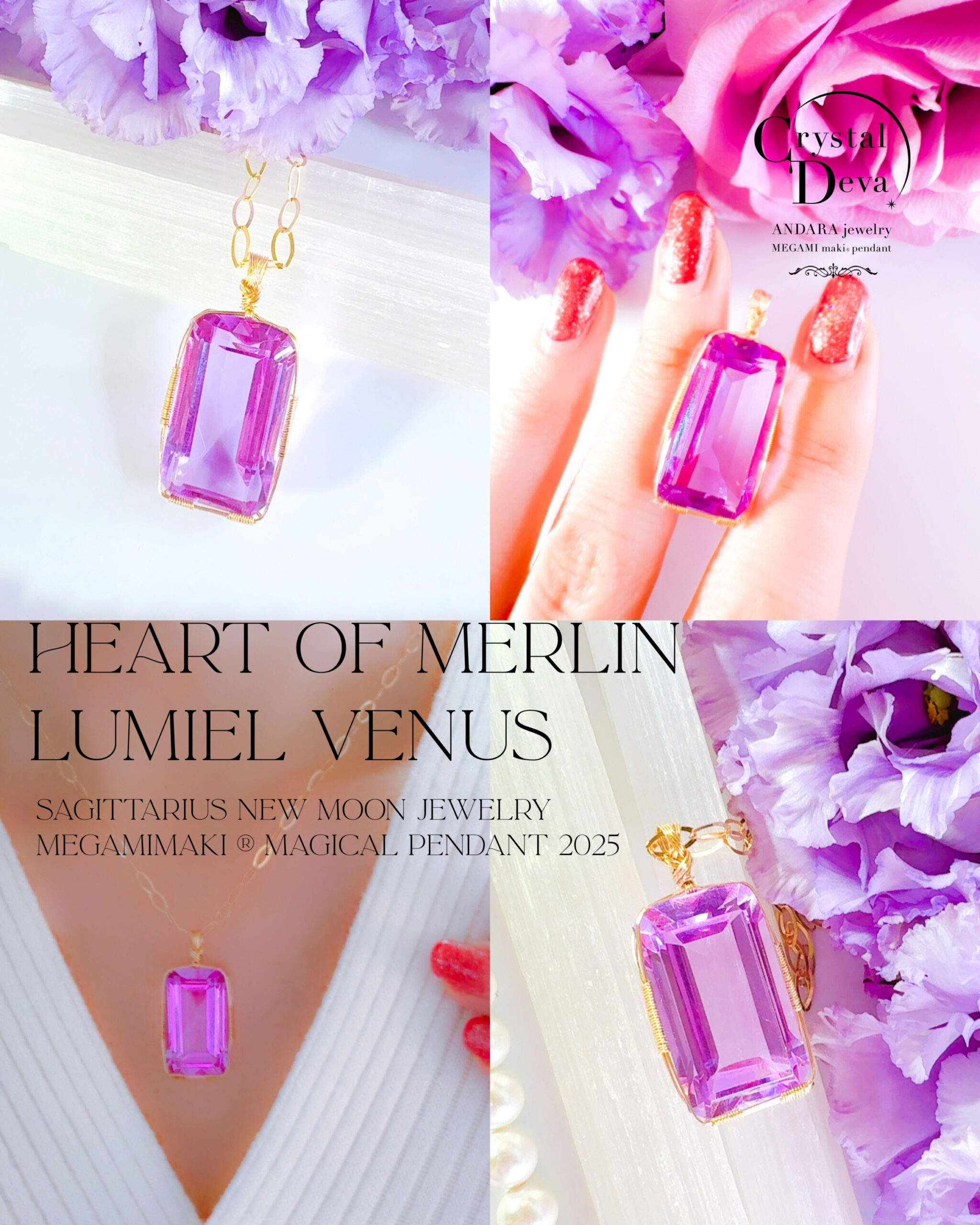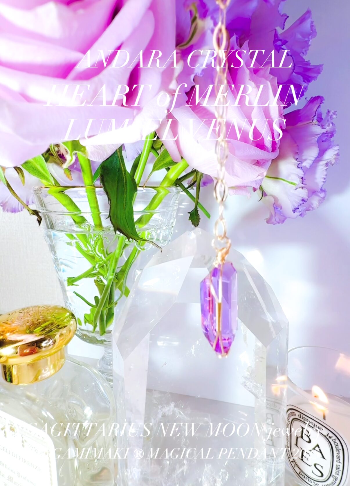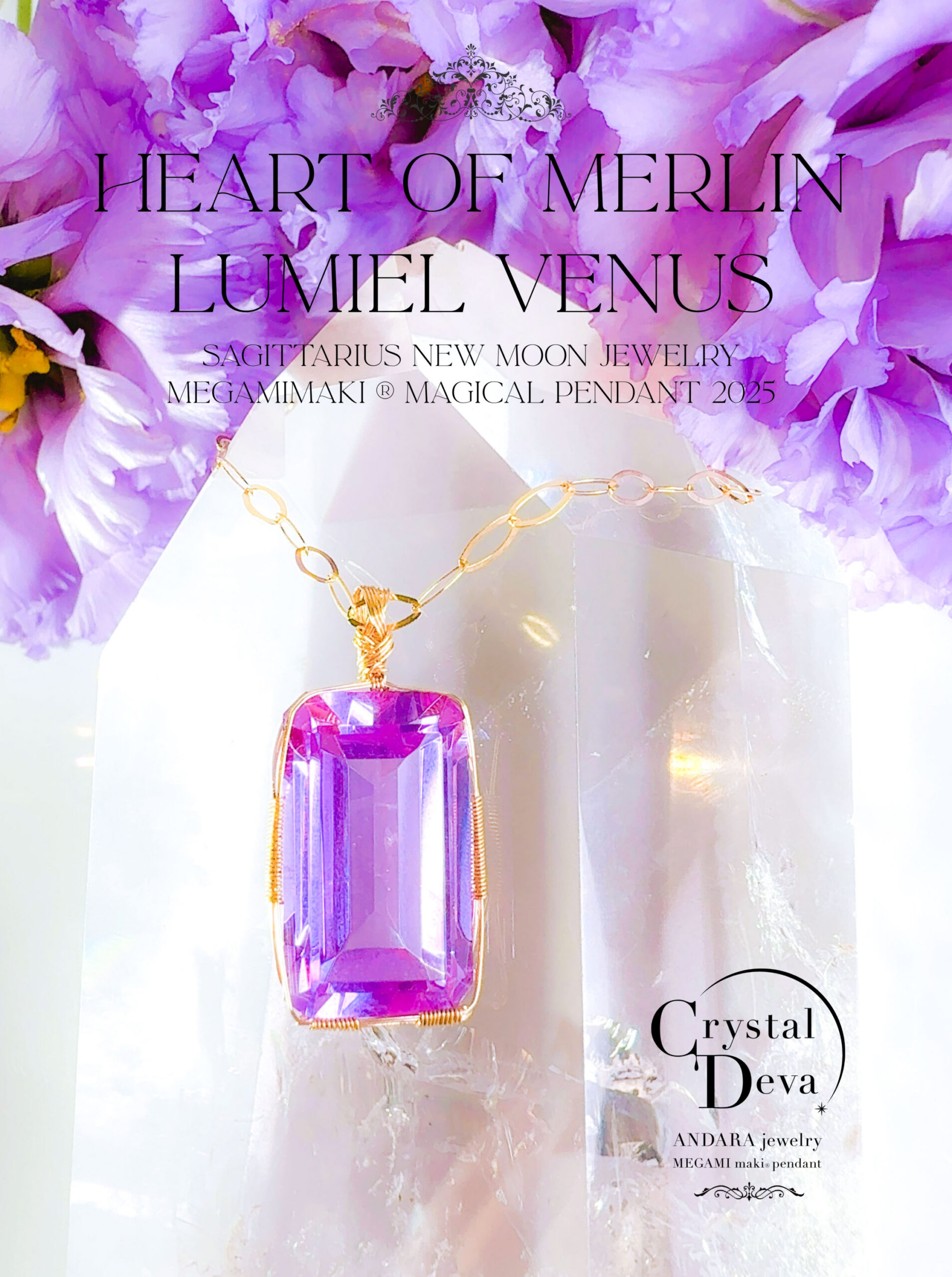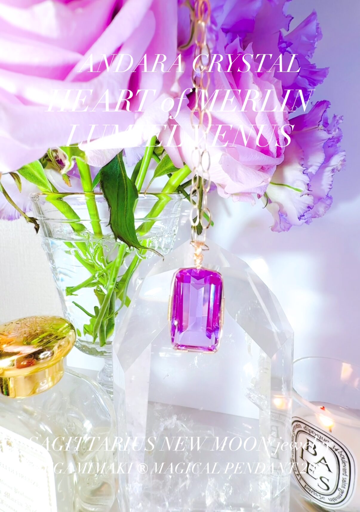 【LUMIEL VENUS】アンダラクリスタル宝石(22.5CT!/ピンクラベンダー/ハイクオリティ!/エメラルドカット) 【HEART of MERLIN】【14KGF女神巻き®︎魔法のペンダント14KGFネックレス付き♪【SAGITTARIUS NEW MOON jewelry】【永遠美の秘宝/超超希少! 1点もの】 (andara1355)