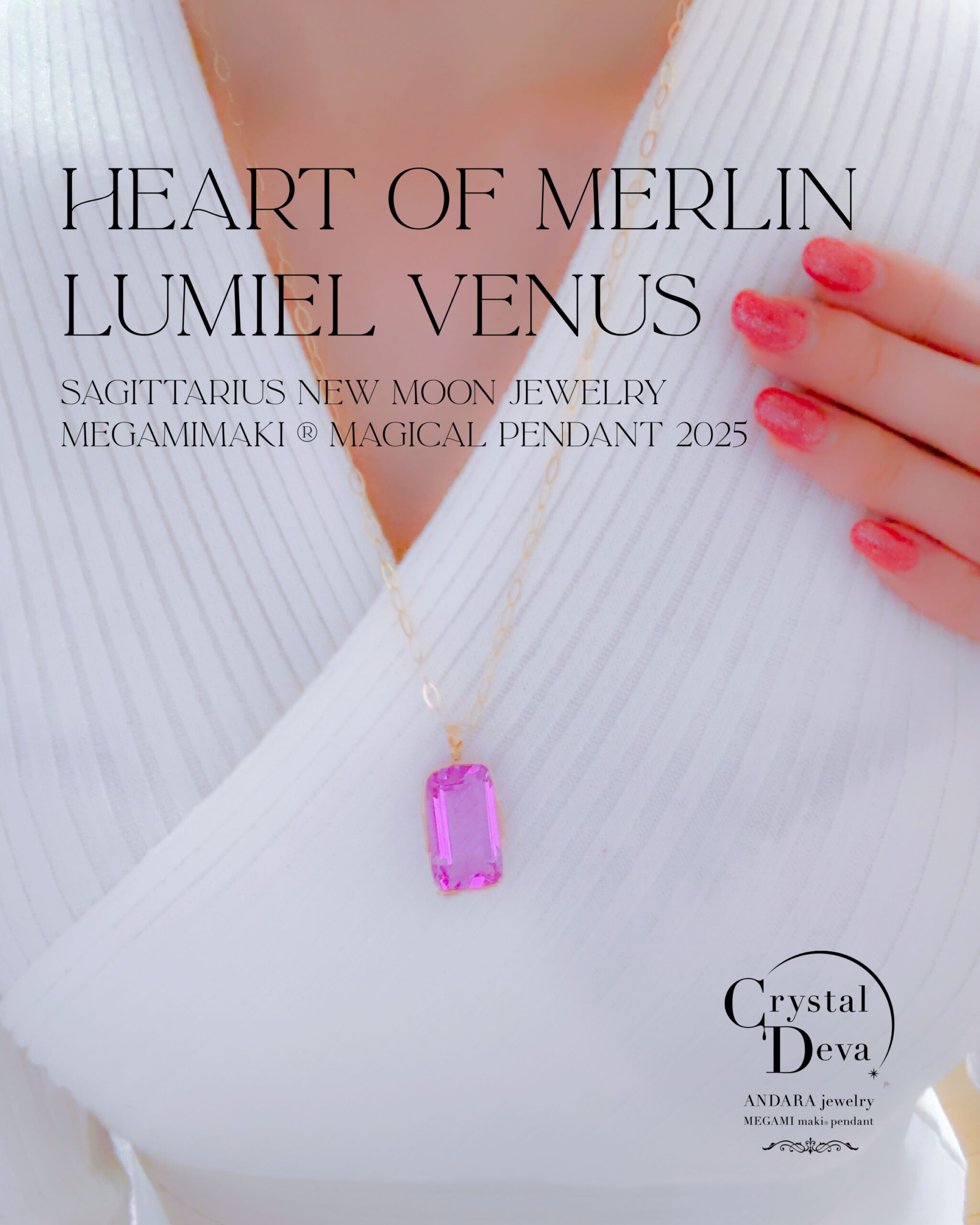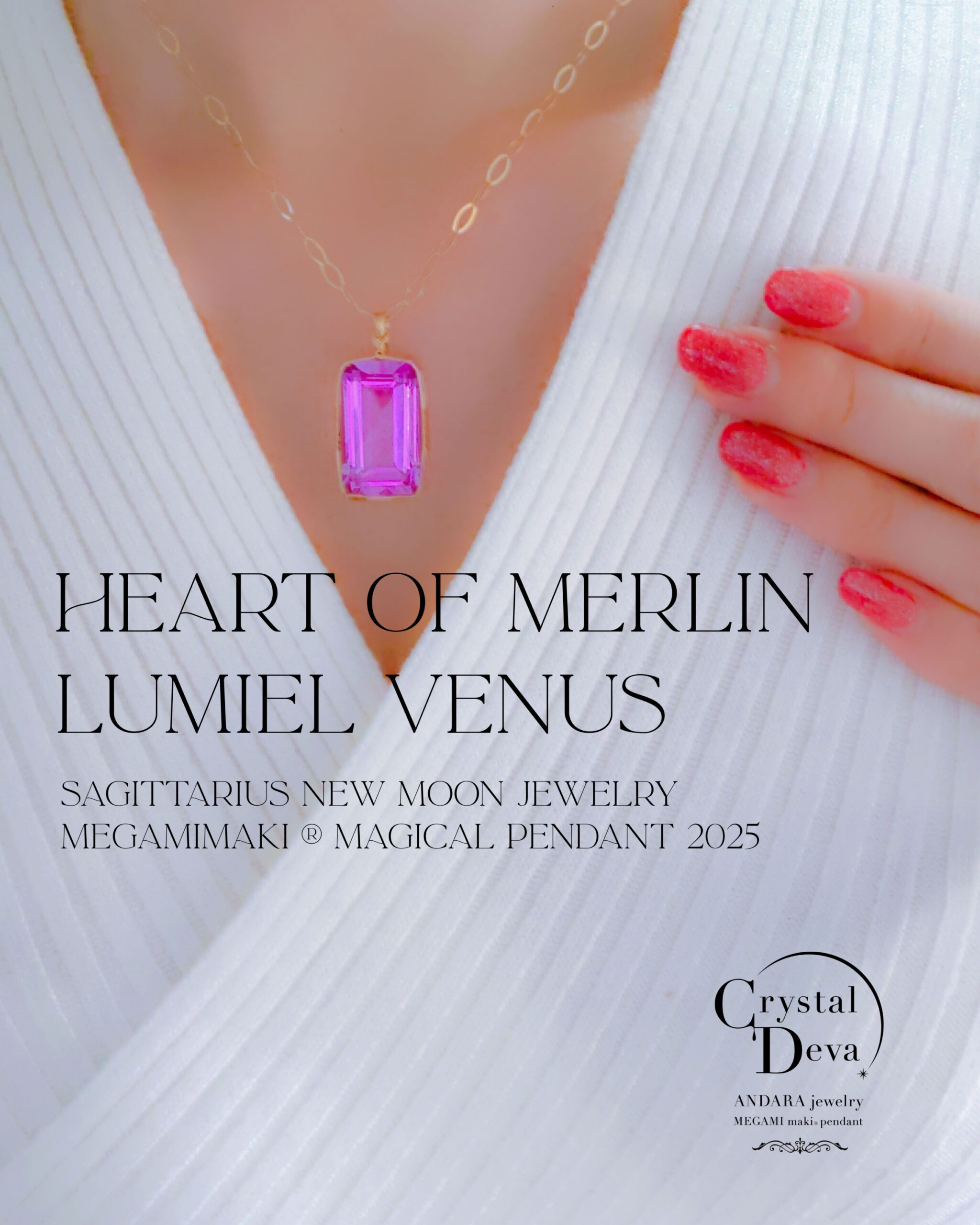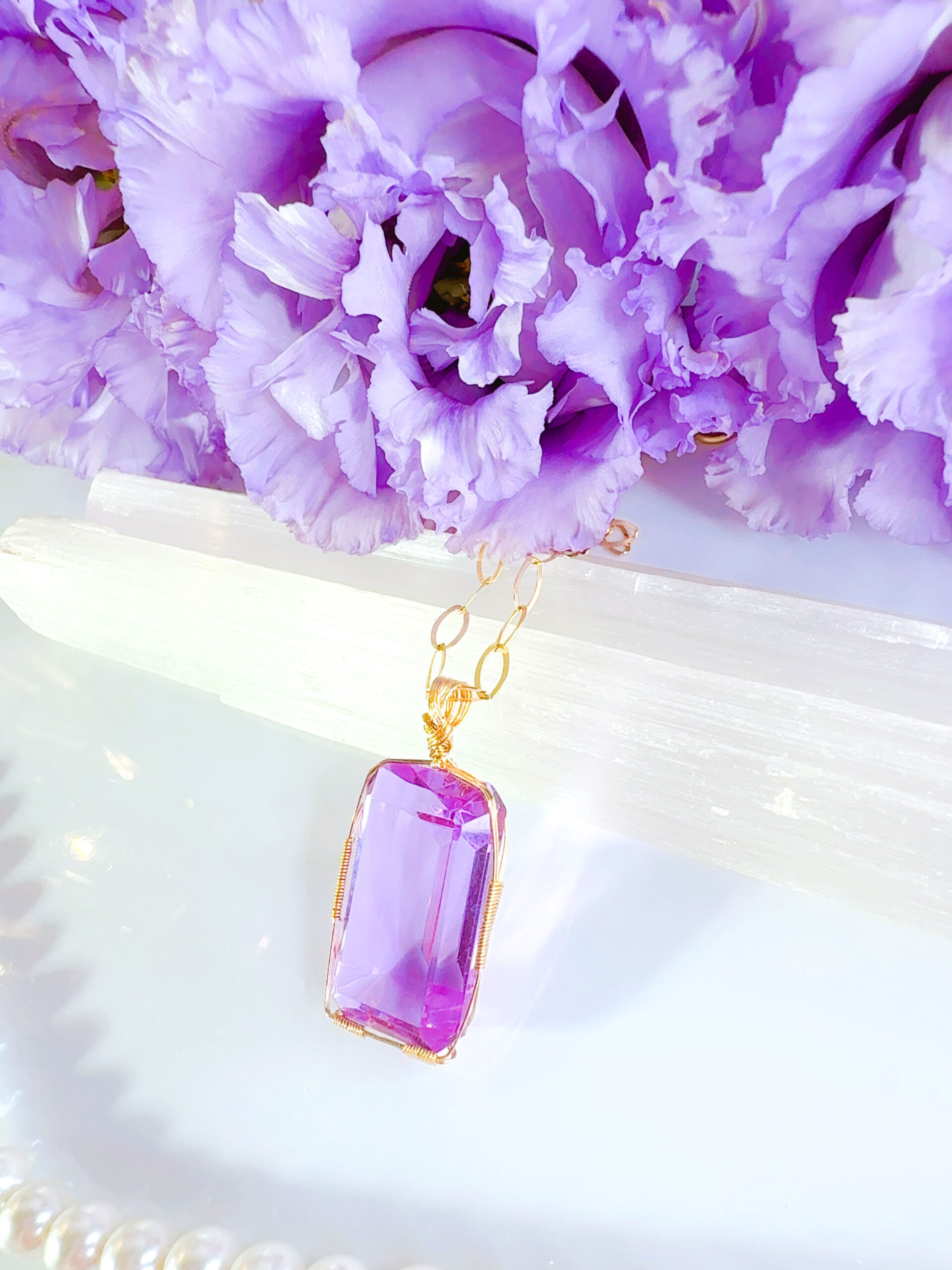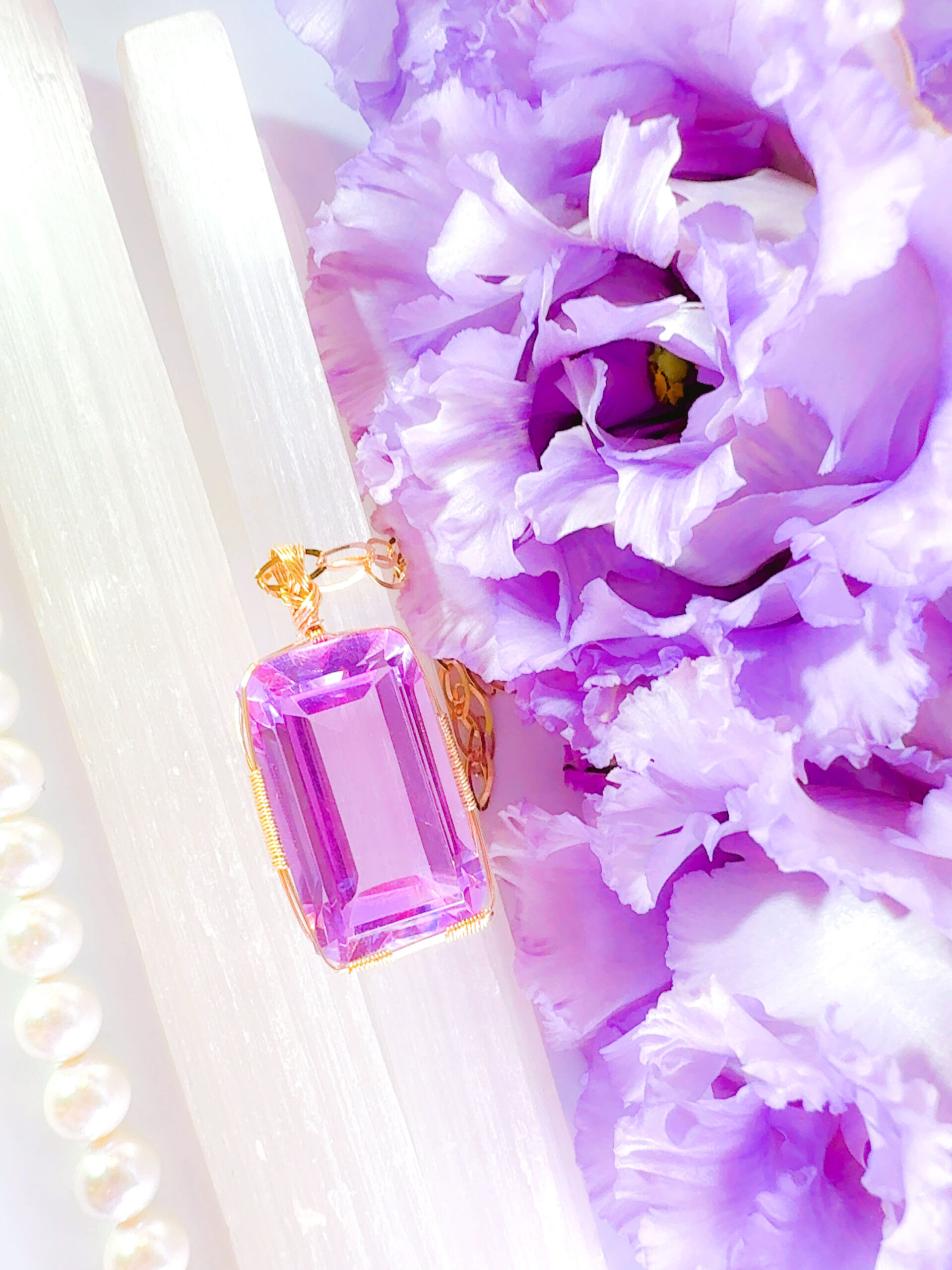 【LUMIEL VENUS】アンダラクリスタル宝石(22.5CT!/ピンクラベンダー/ハイクオリティ!/エメラルドカット) 【HEART of MERLIN】【14KGF女神巻き®︎魔法のペンダント14KGFネックレス付き♪【SAGITTARIUS NEW MOON jewelry】【永遠美の秘宝/超超希少! 1点もの】 (andara1355)
