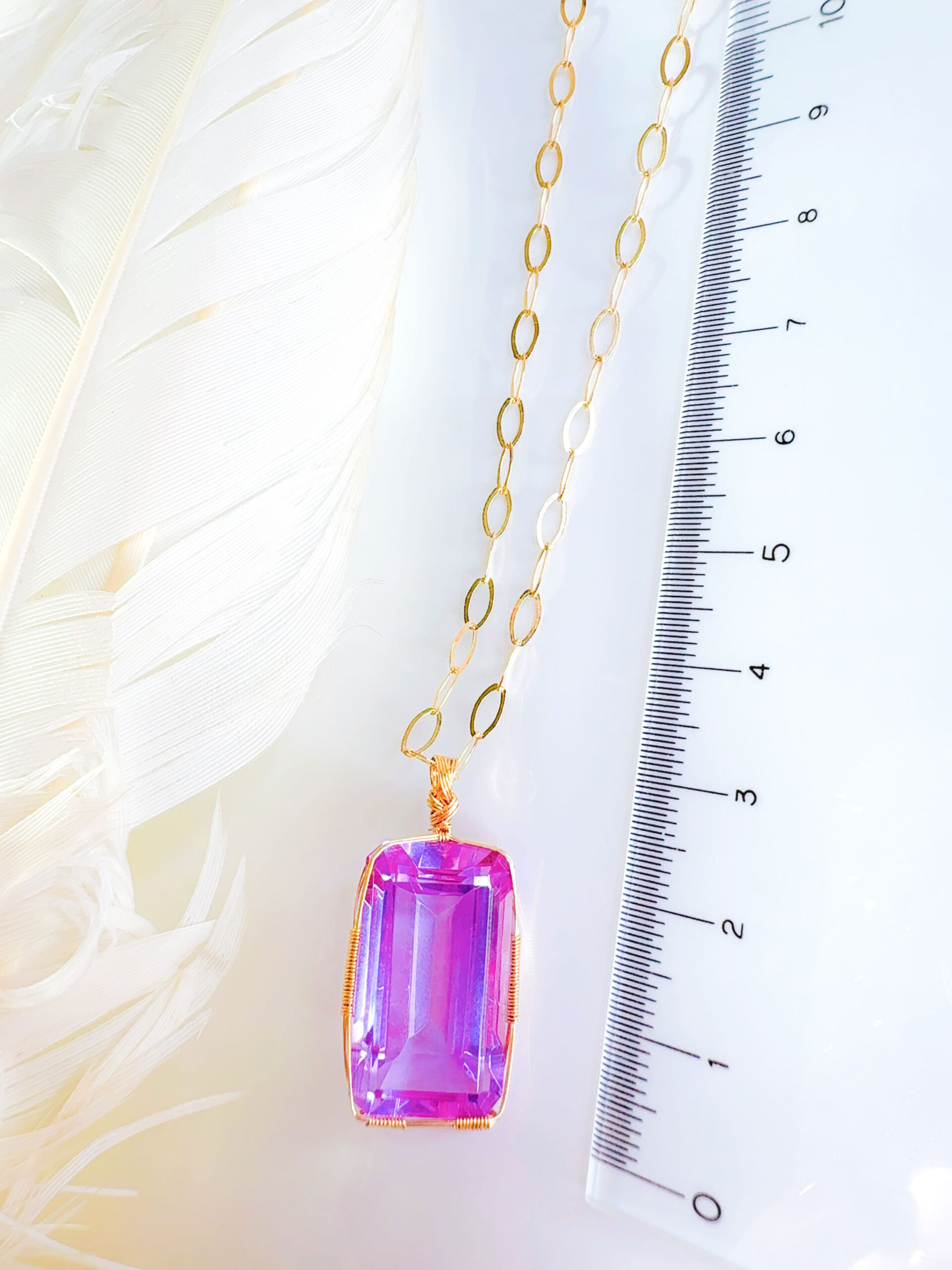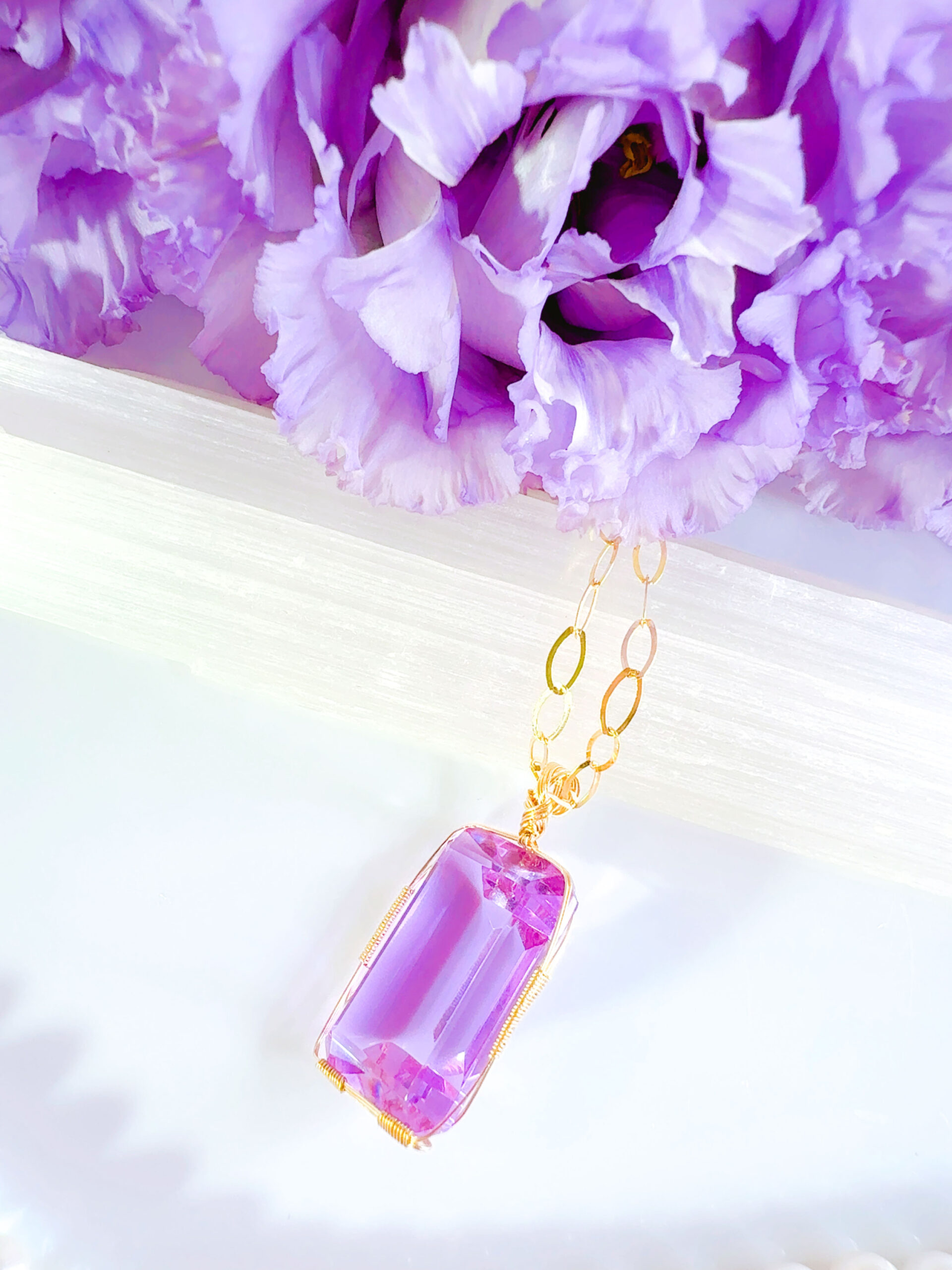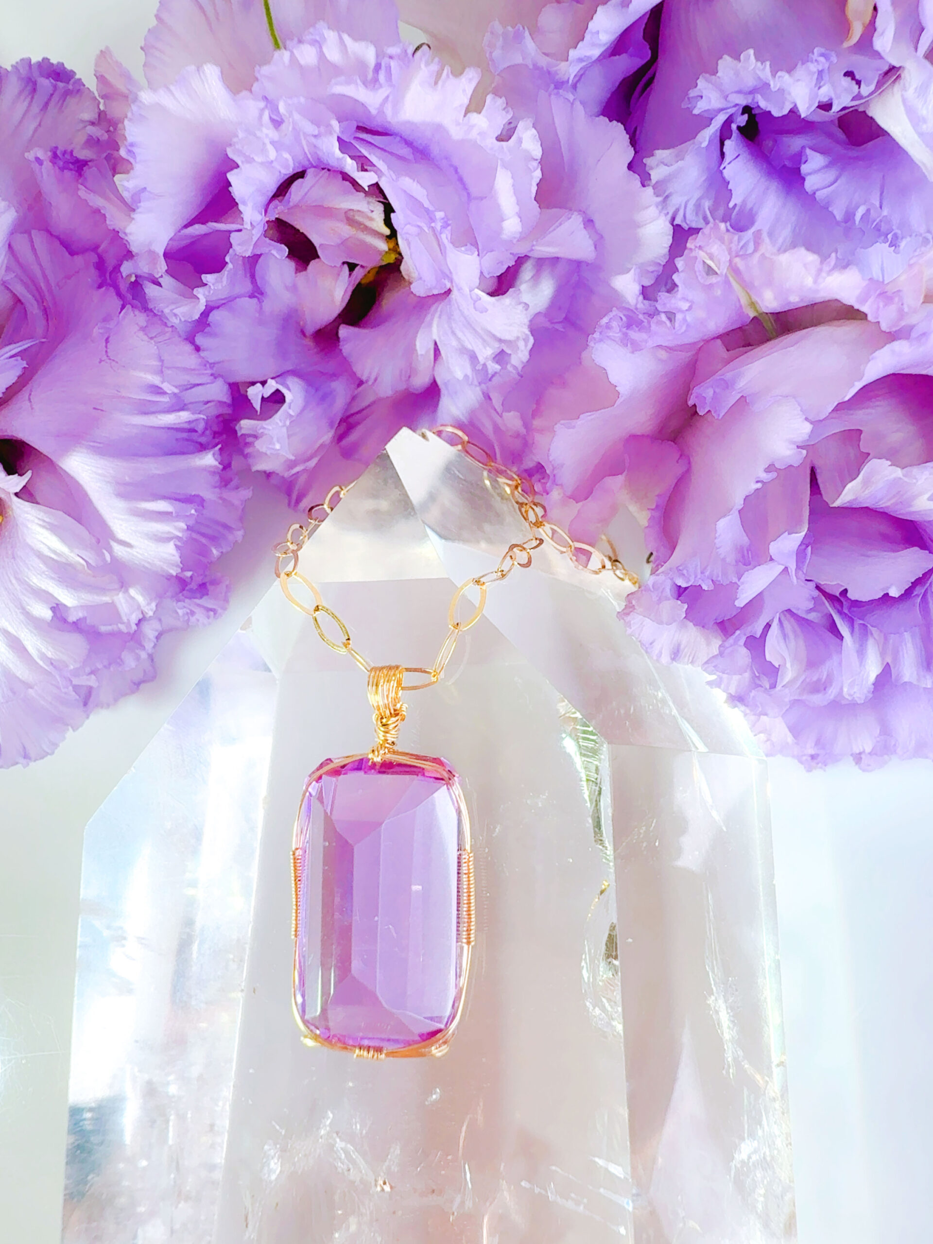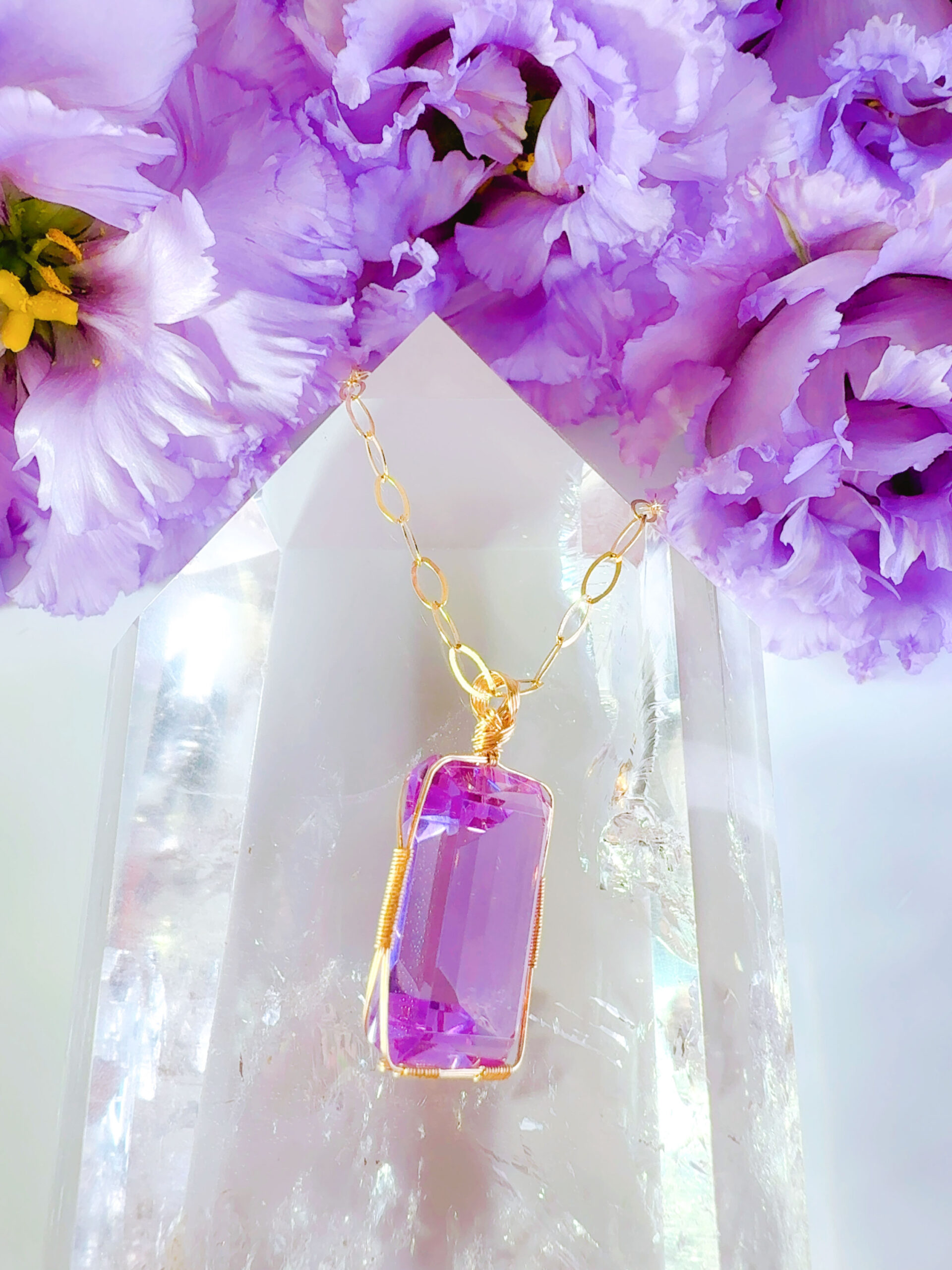 【LUMIEL VENUS】アンダラクリスタル宝石(22.5CT!/ピンクラベンダー/ハイクオリティ!/エメラルドカット) 【HEART of MERLIN】【14KGF女神巻き®︎魔法のペンダント14KGFネックレス付き♪【SAGITTARIUS NEW MOON jewelry】【永遠美の秘宝/超超希少! 1点もの】 (andara1355)