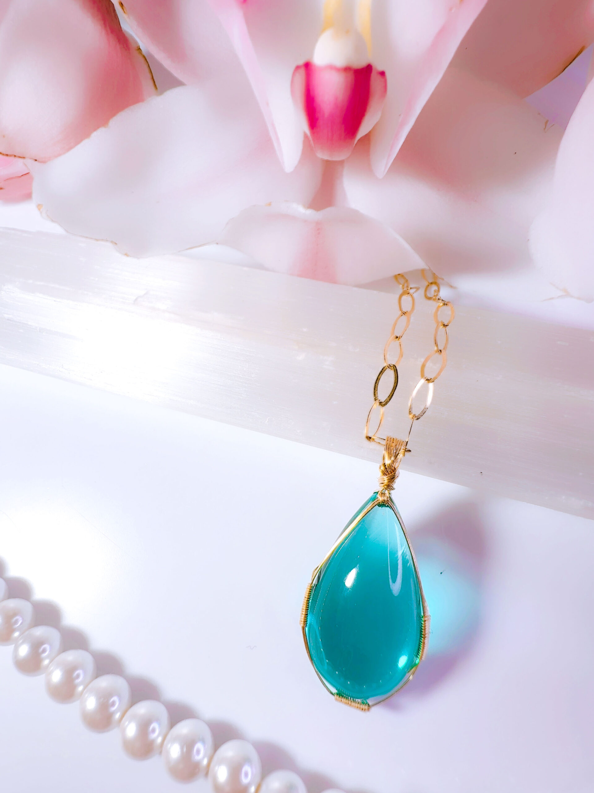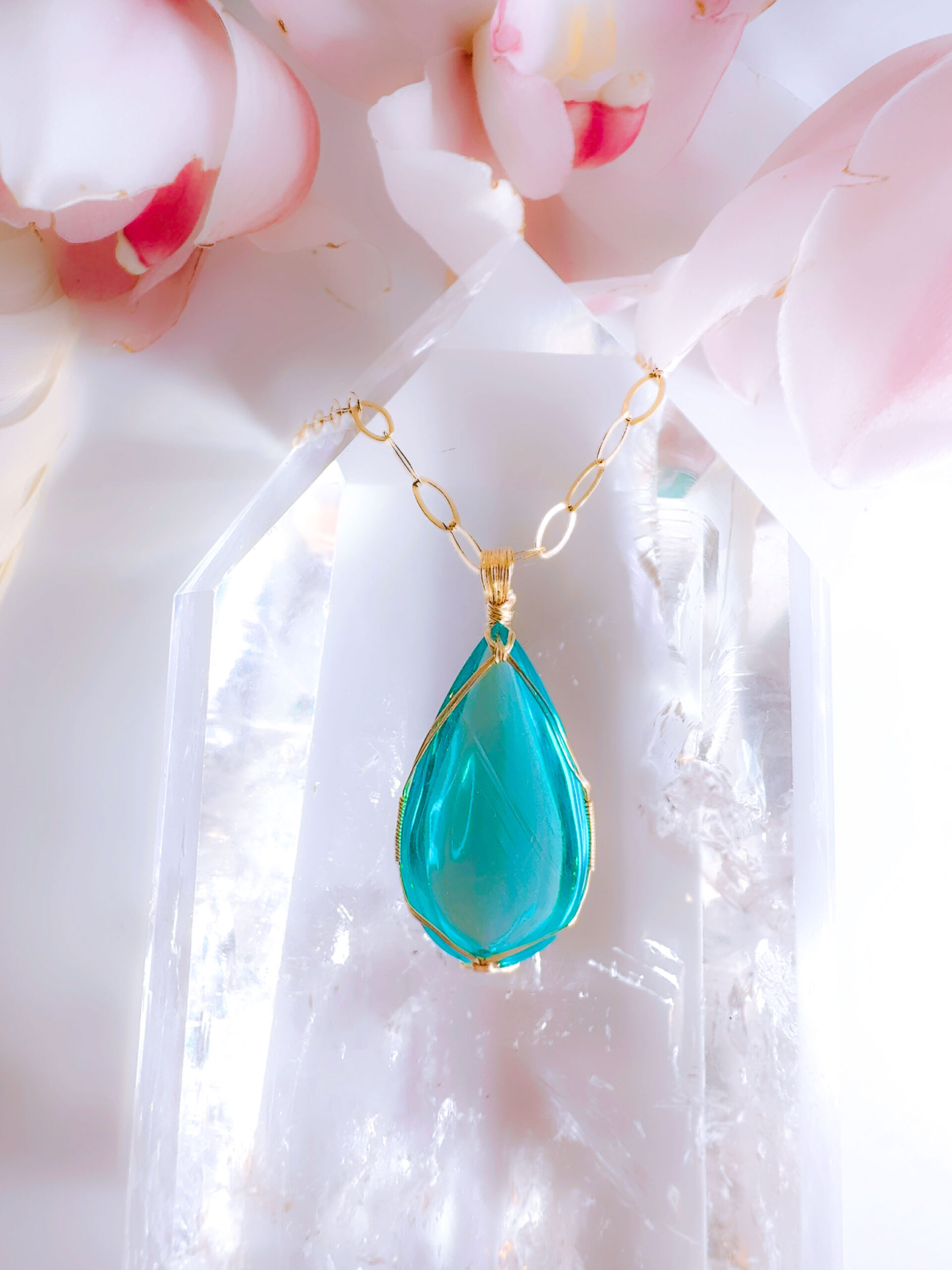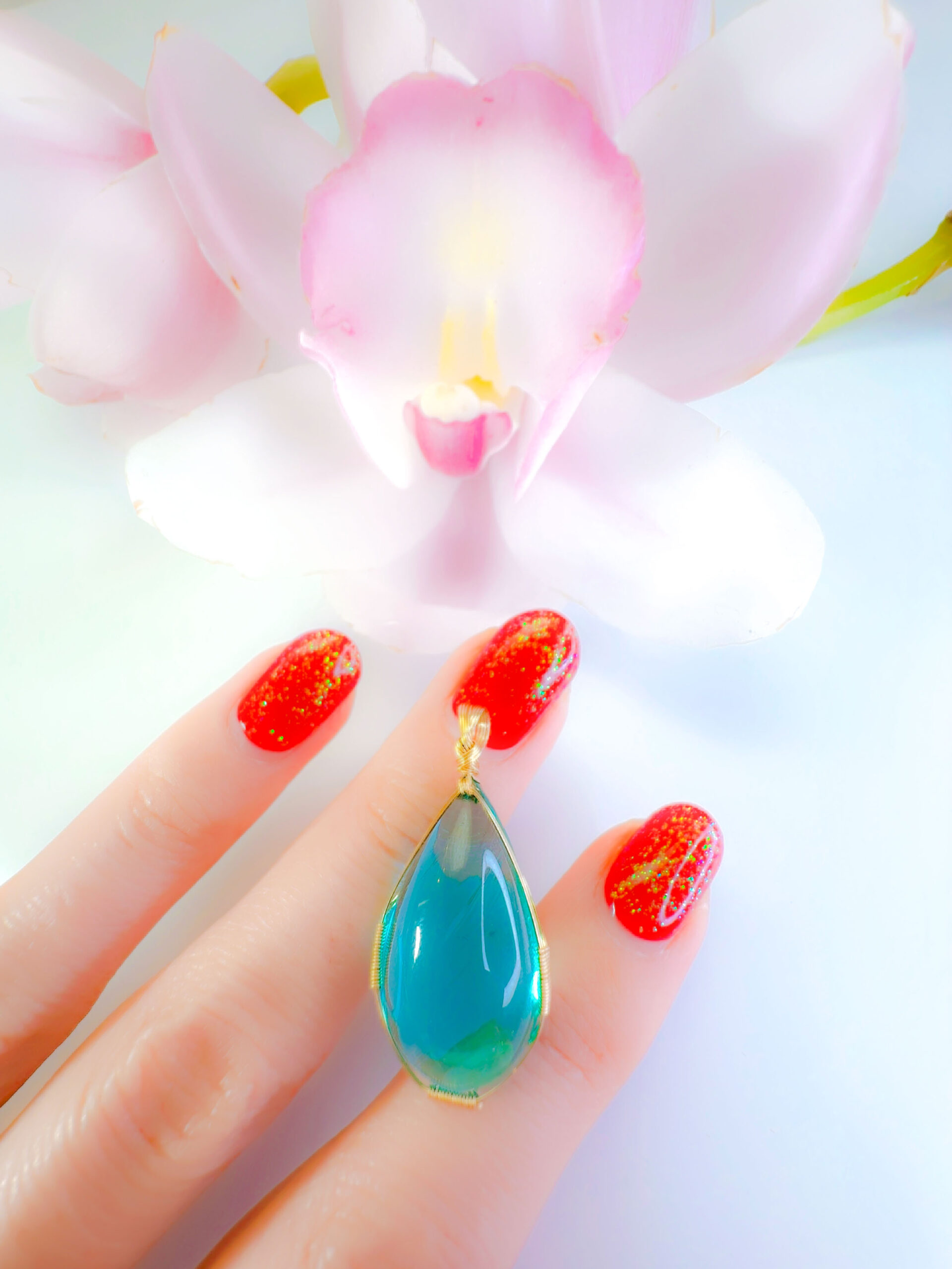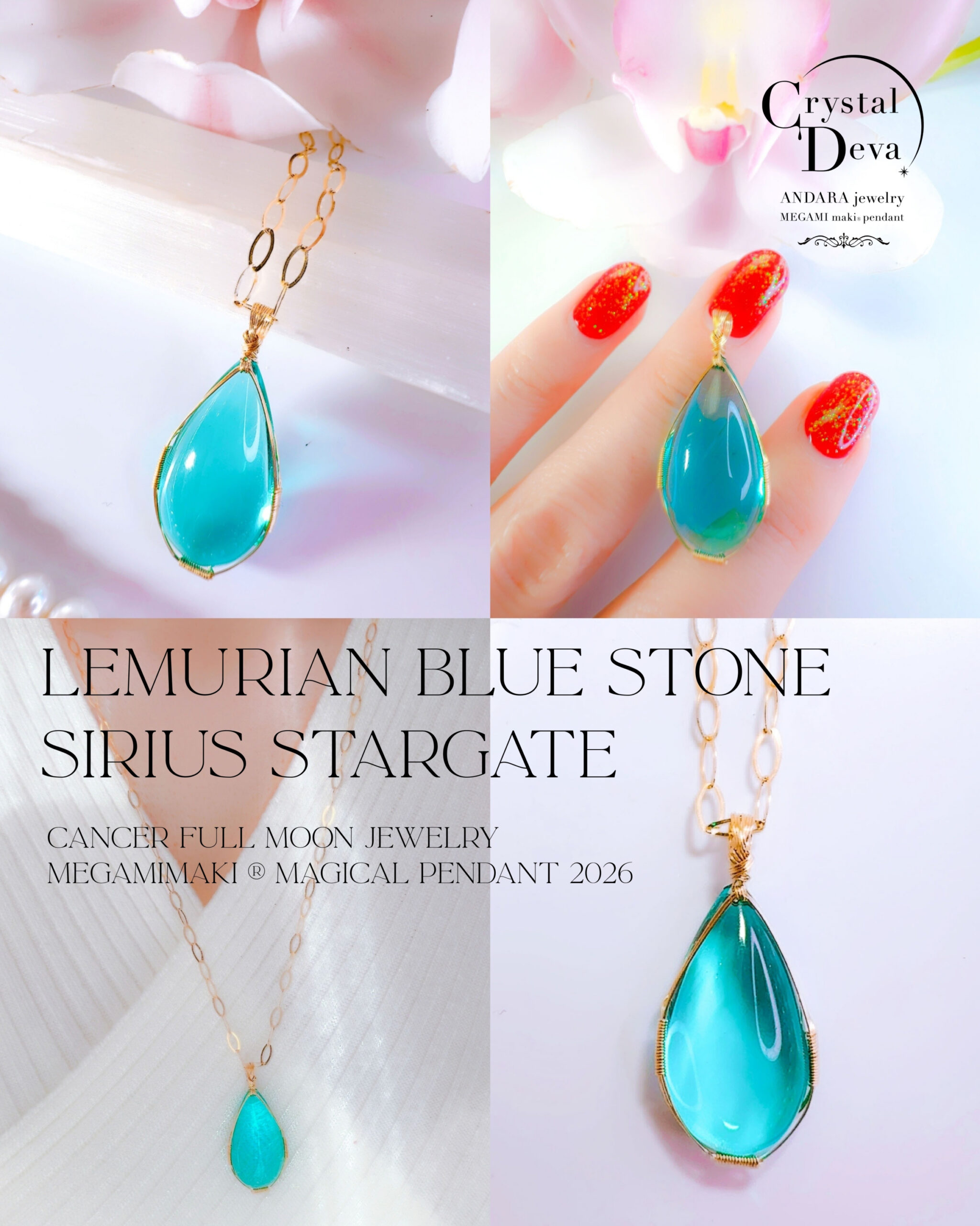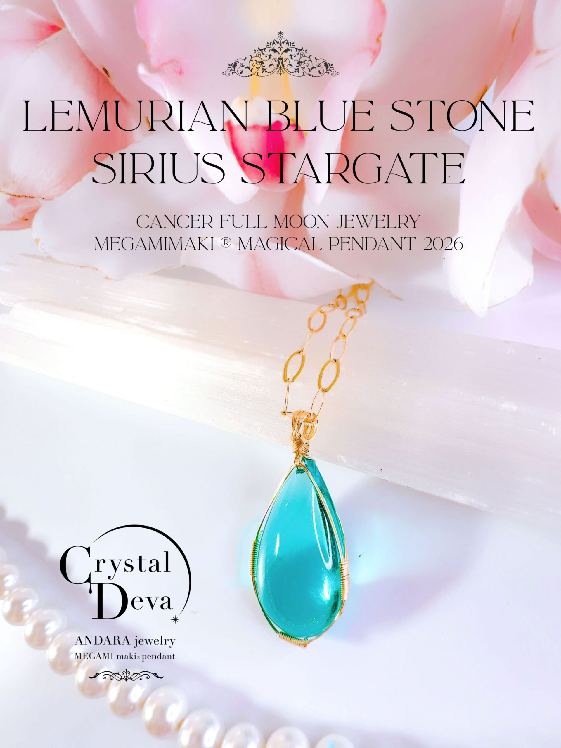 【新作SALE 10%OFF中!1/19 山羊座新月まで】【LEMURIAN BLUE STONE 】アンダラクリスタル宝石 (14.5CT!/エレクトリックシリウスブルー/しずくカボション/超レア!) 【SIRIUS STARGATE】14KGF女神巻き®︎魔法のペンダント【CANCER FULL MOON jewelry】【永遠美の秘宝/超希少! 1点もの】 (andara1359)