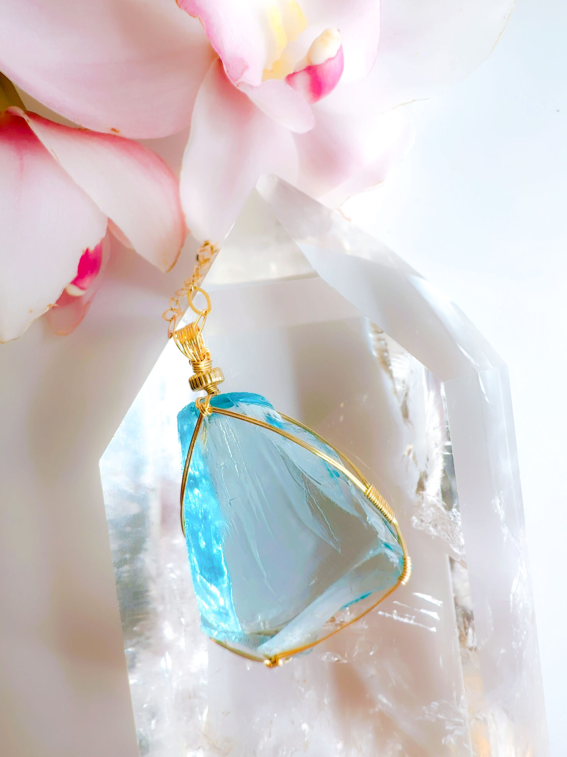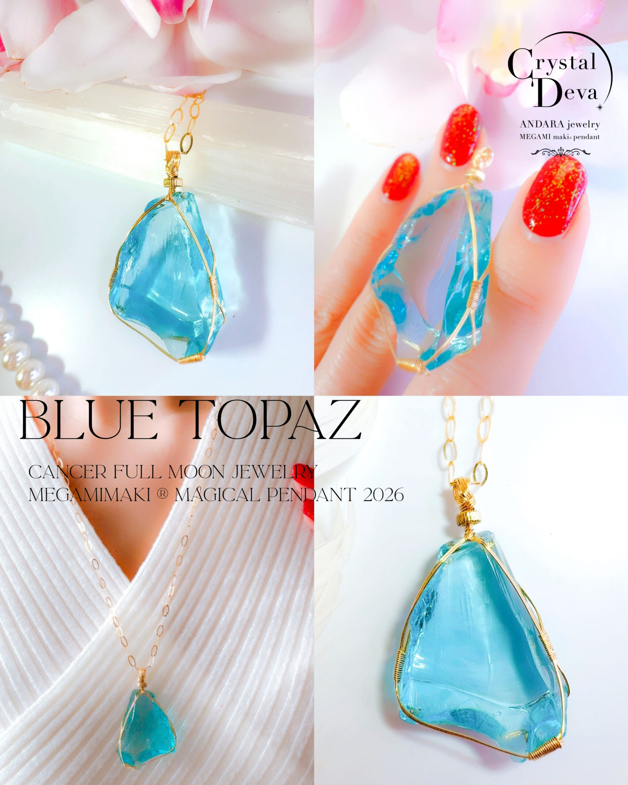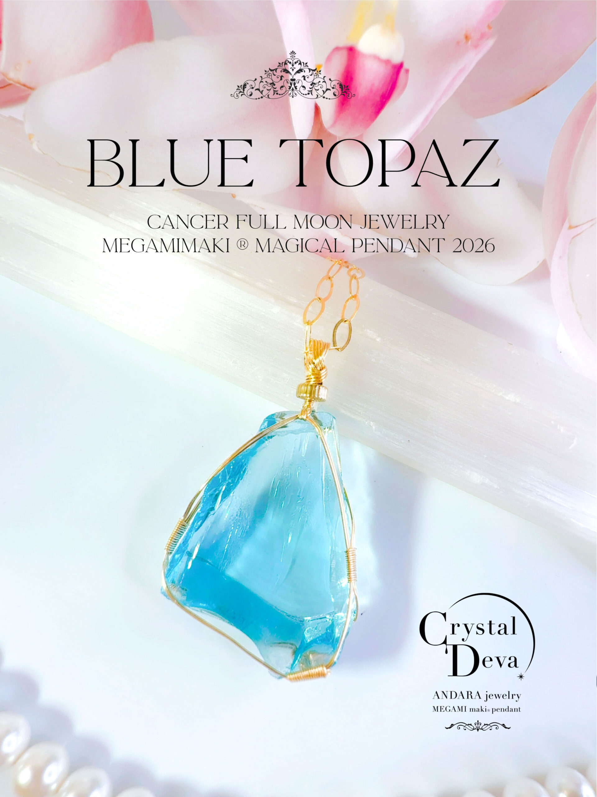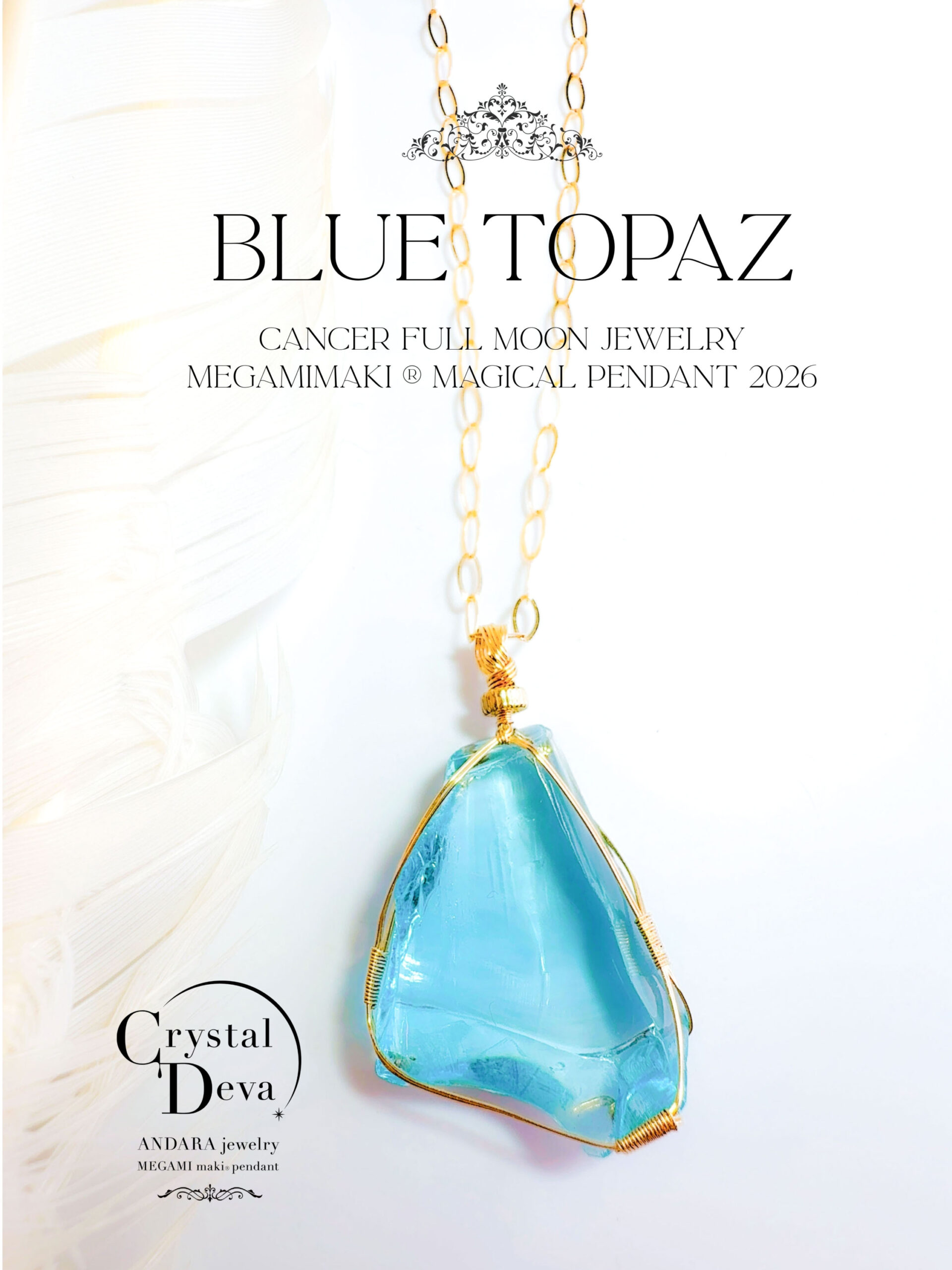 【新作SALE 10%OFF中!1/19 山羊座新月まで】【BLUE TOPAZ】アンダラクリスタル宝石 (41CT!/トパーズアクアブルー) 【COSMIC DRAGON】14KGF女神巻き®︎魔法のペンダント【CANCER FULL MOON jewelry】【永遠美の秘宝/希少! 1点もの】 (andara1361)