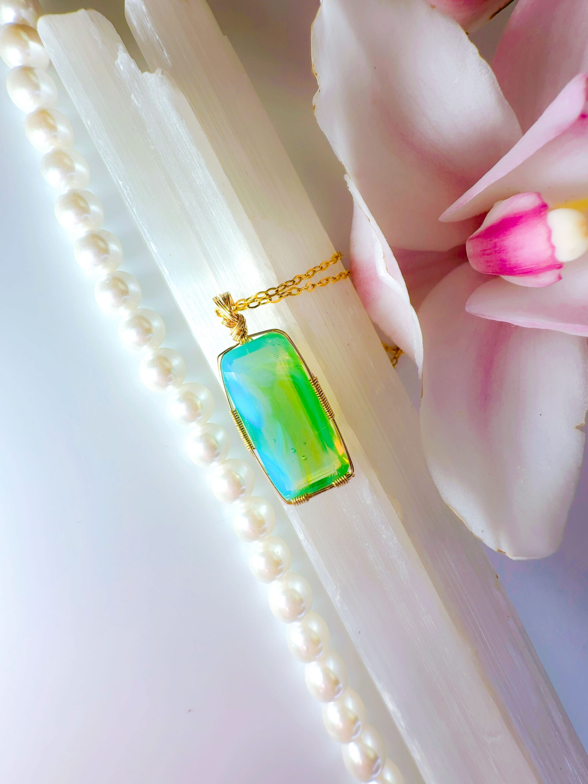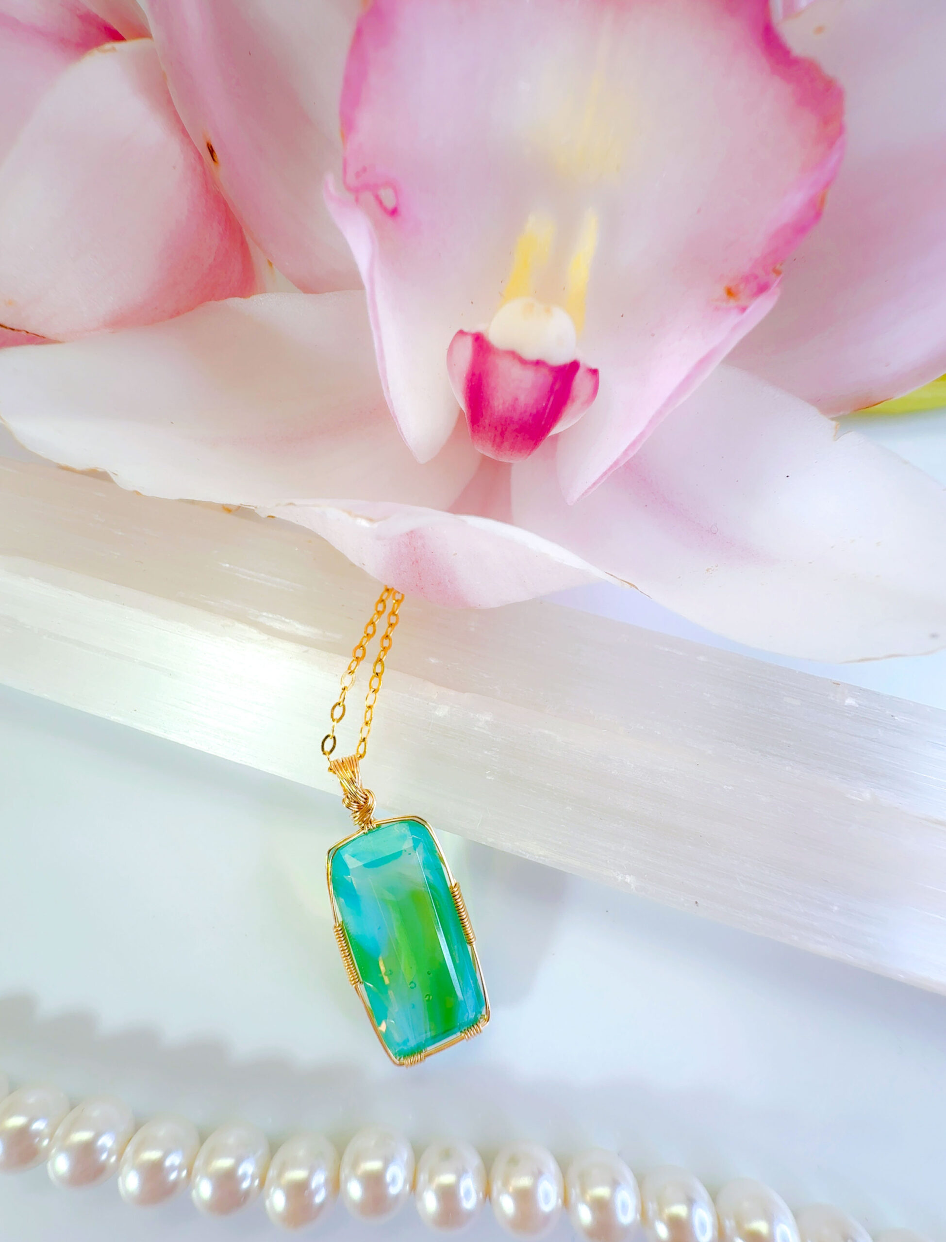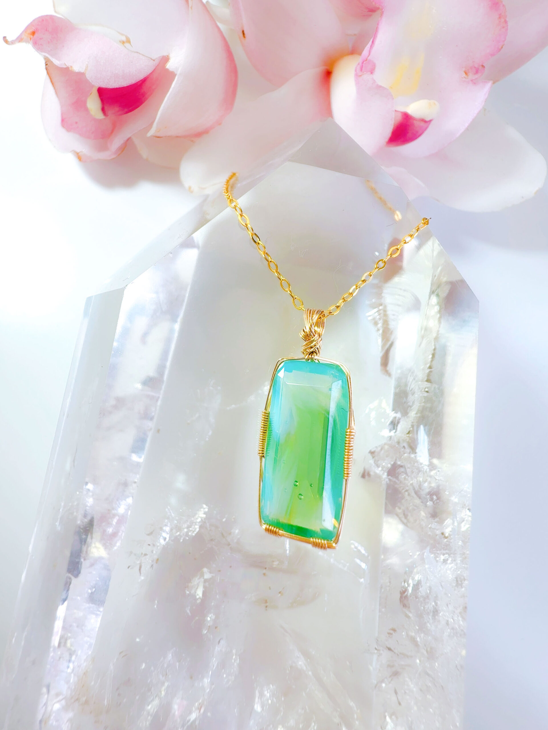 【新作SALE 10%OFF中!1/19 山羊座新月まで】【ZEN ESSENCE】アンダラクリスタル宝石 (9.5CT!/オパレッセントアクア&クリアミント/超レア!エメラルドカット) 14KGFミニ女神巻き®︎魔法のペンダント【CANCER FULL MOON jewelry】【永遠美の秘宝/超超超希少! 1点もの】 (andara1362)