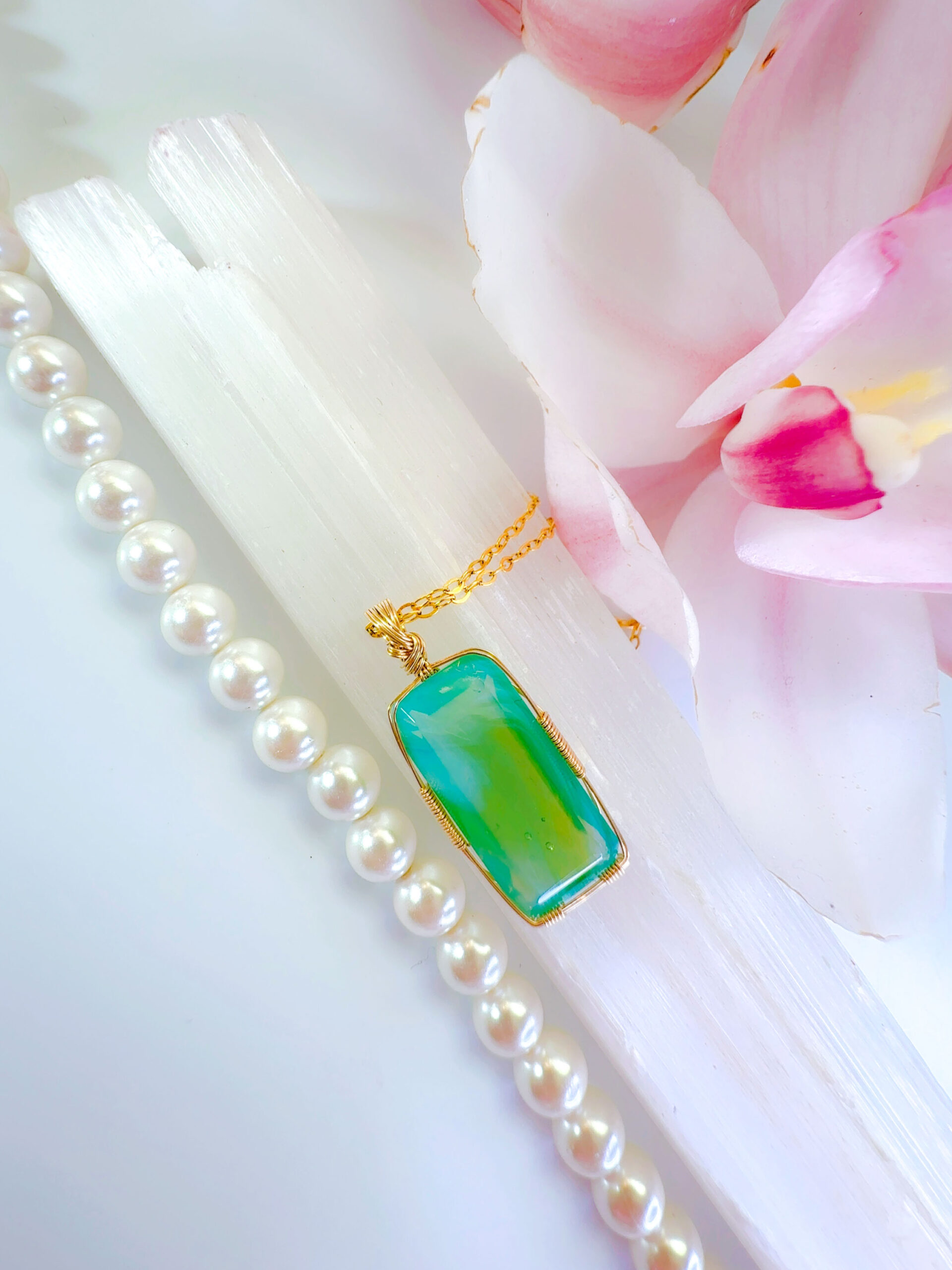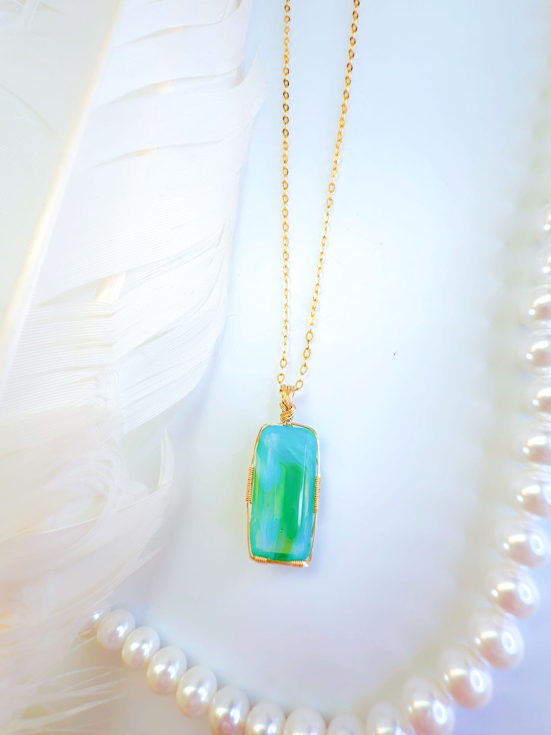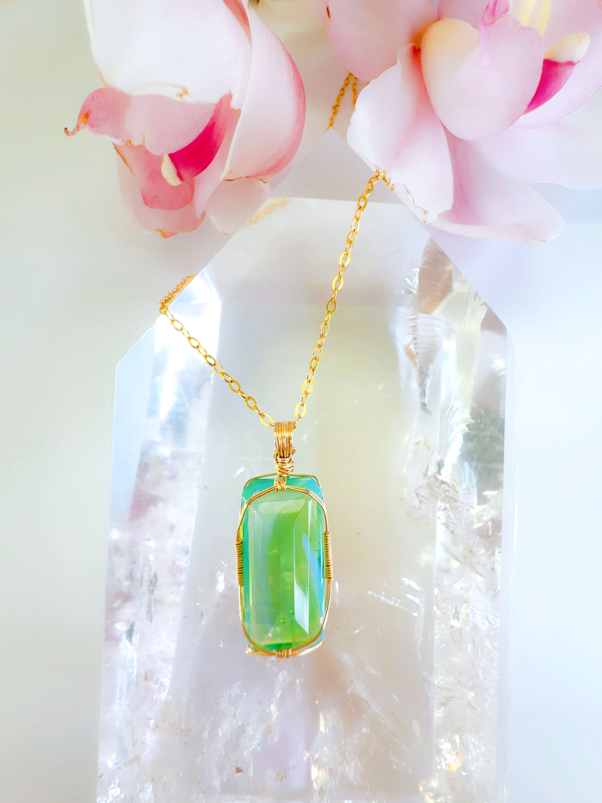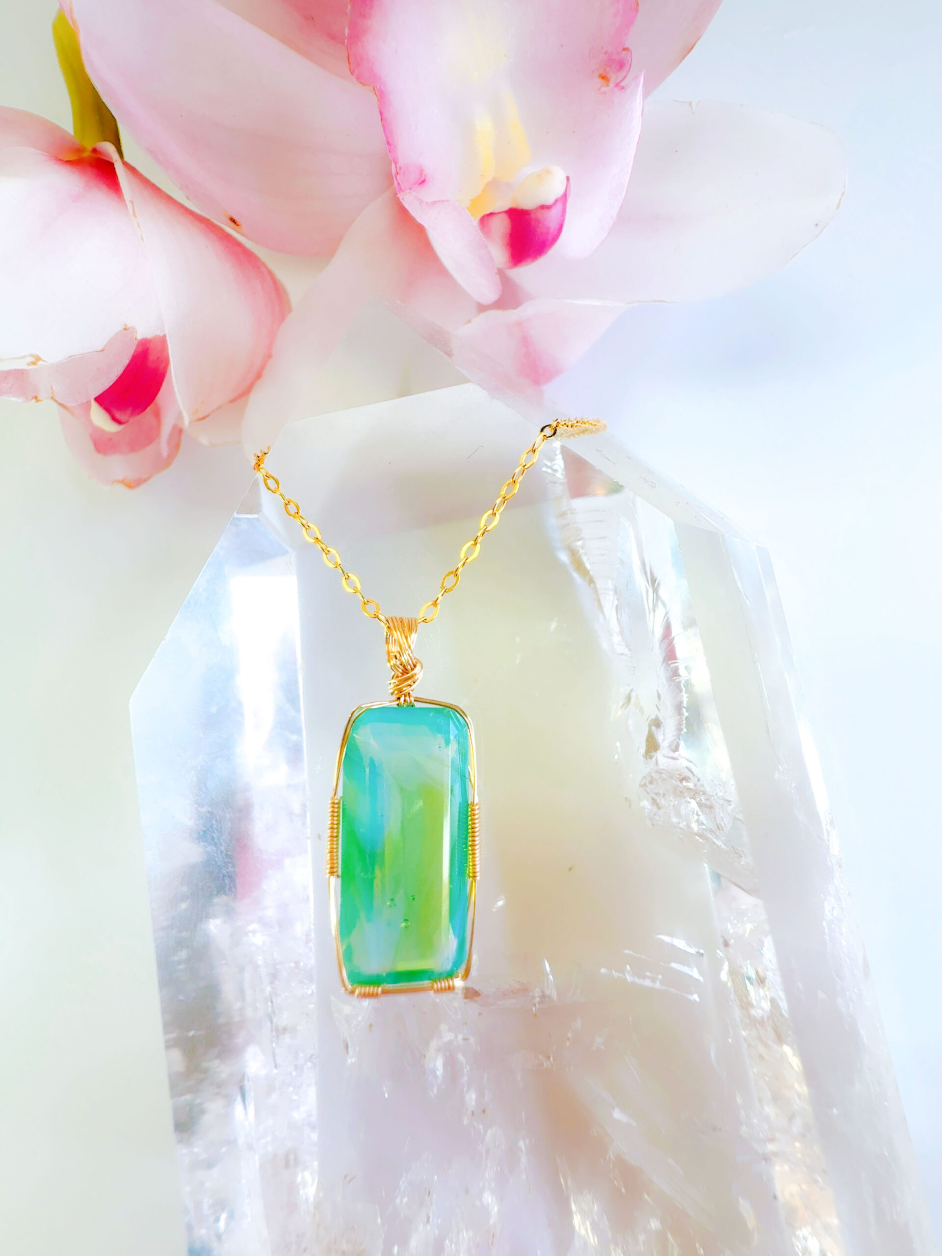 【新作SALE 10%OFF中!1/19 山羊座新月まで】【ZEN ESSENCE】アンダラクリスタル宝石 (9.5CT!/オパレッセントアクア&クリアミント/超レア!エメラルドカット) 14KGFミニ女神巻き®︎魔法のペンダント【CANCER FULL MOON jewelry】【永遠美の秘宝/超超超希少! 1点もの】 (andara1362)