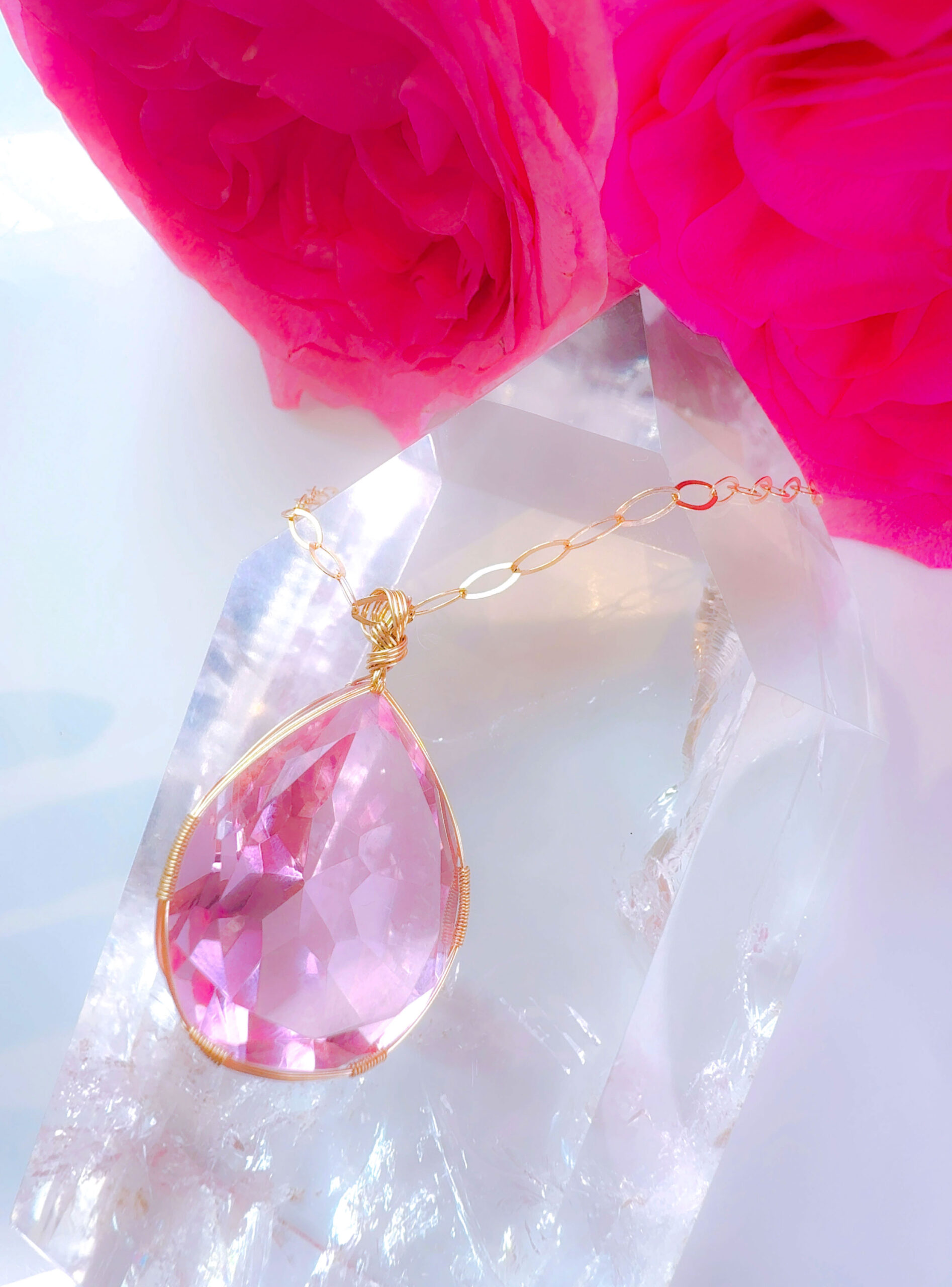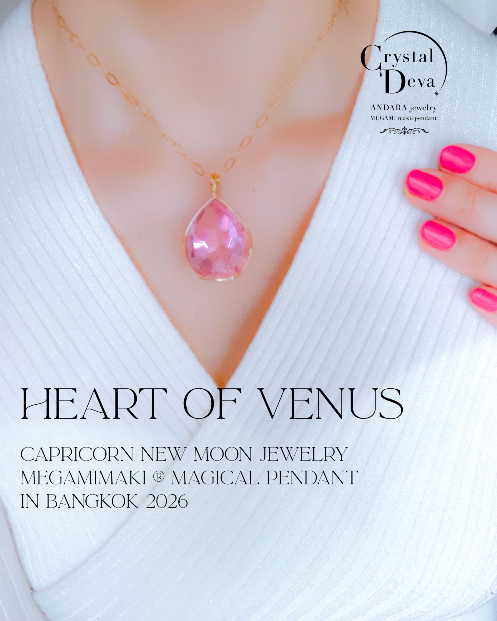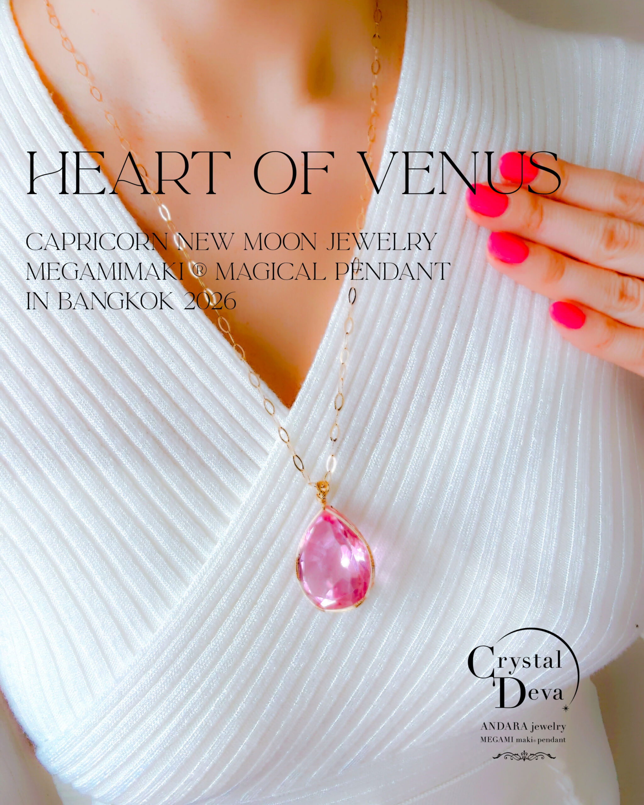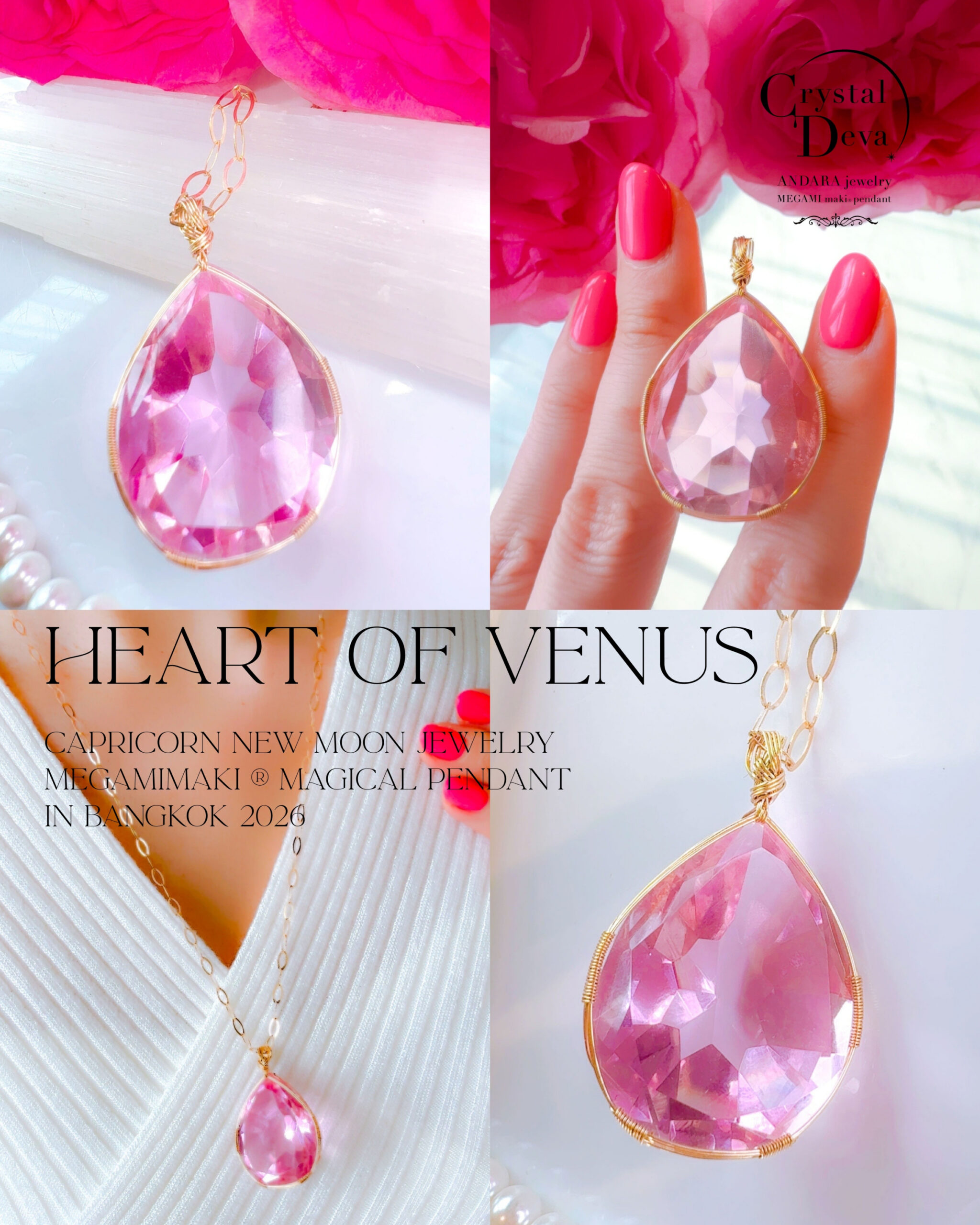 【ご予約お受け付け中♡新作SALE15%OFF中!2/17 水瓶座新月まで】【HEART of VENUS】 アンダラクリスタル宝石(50CT!/ピンク/ハイクオリティ!ペアシェイプカットカット/超レア!) 14KGFおおきな女神巻き®︎魔法のペンダント 14KGF オーバルネックレスチェーン付き♪【BANGKOK×CAPRICORN NEW MOON jewelry 1点もの】 (andara1366)