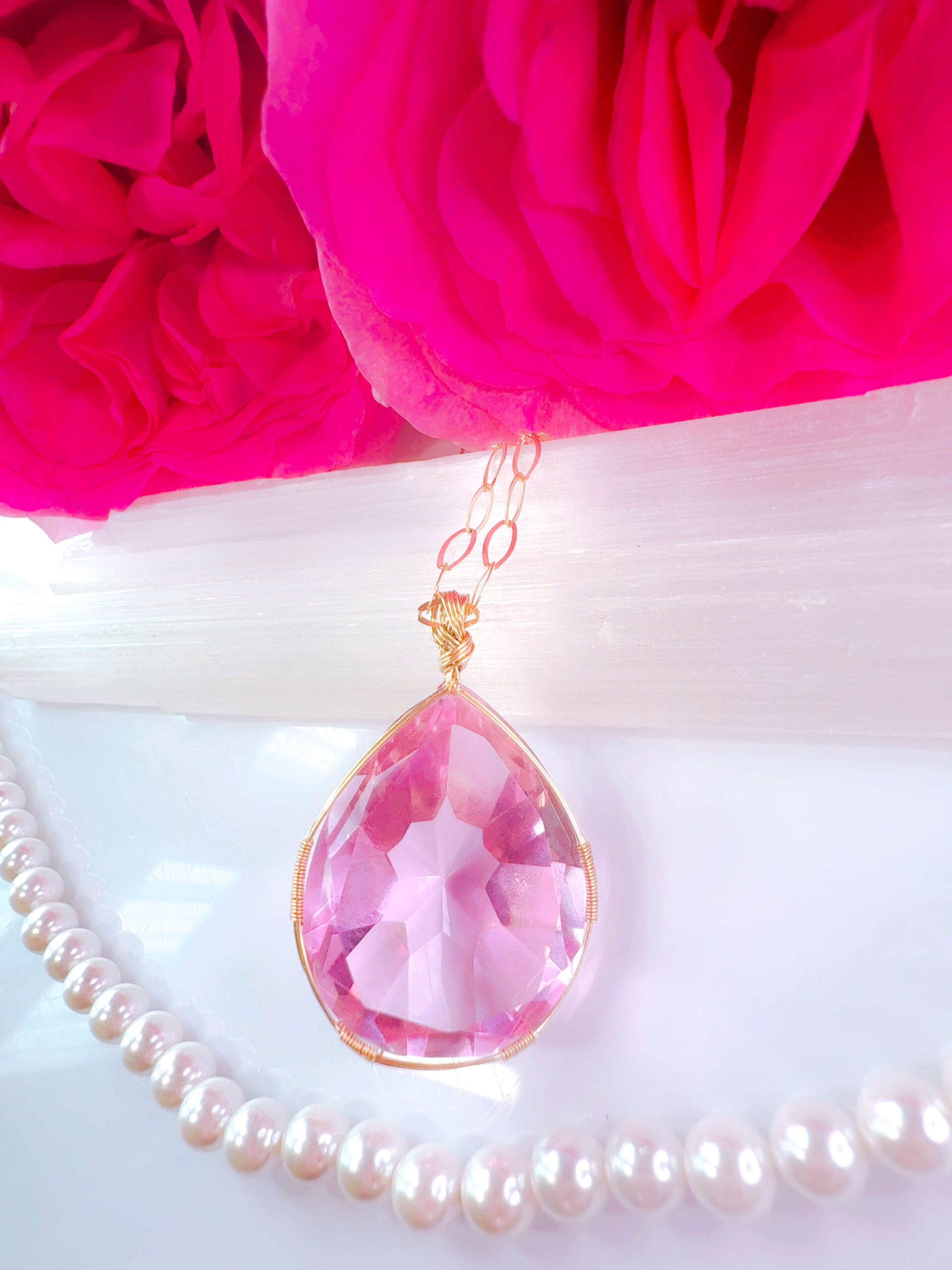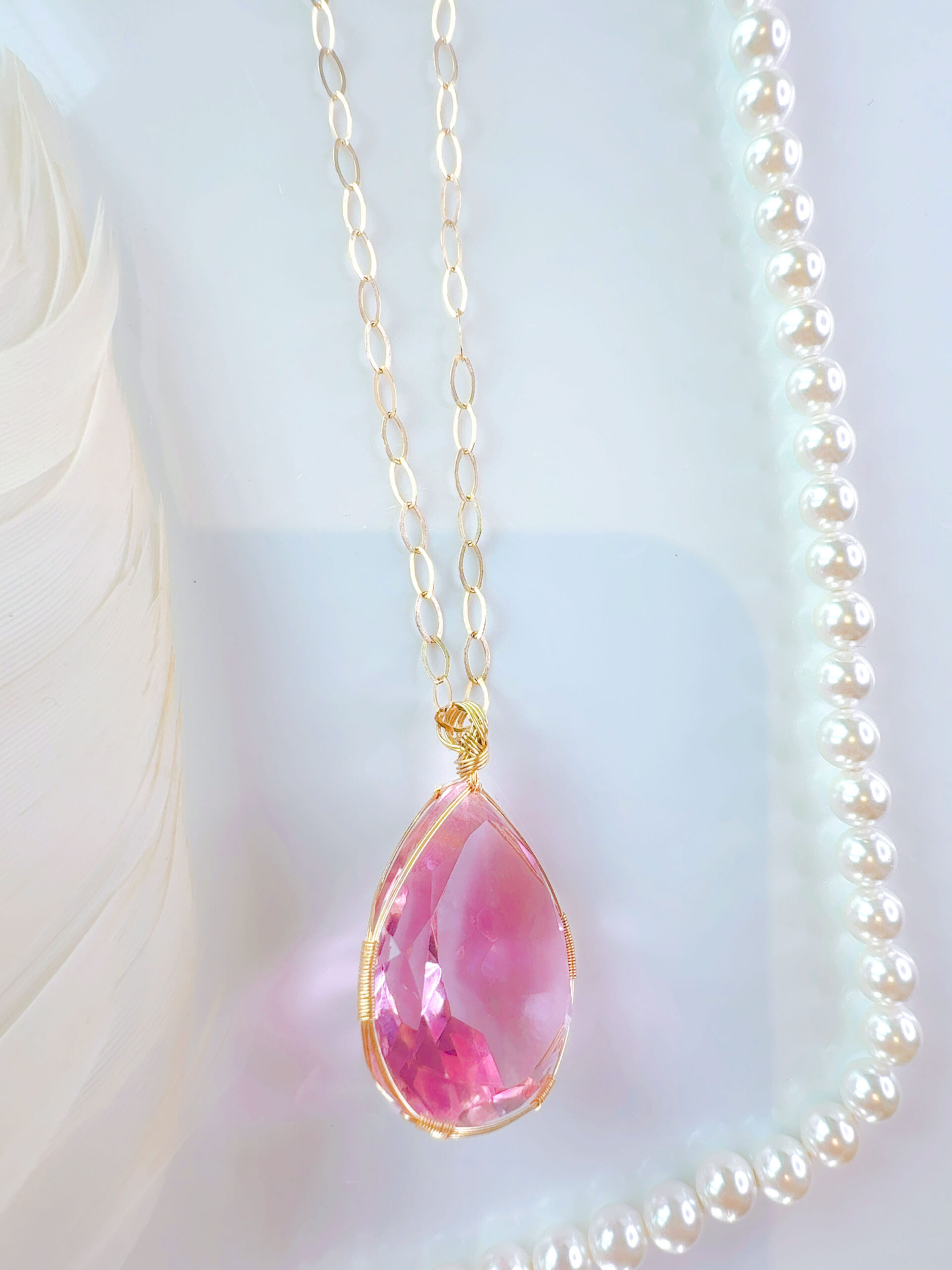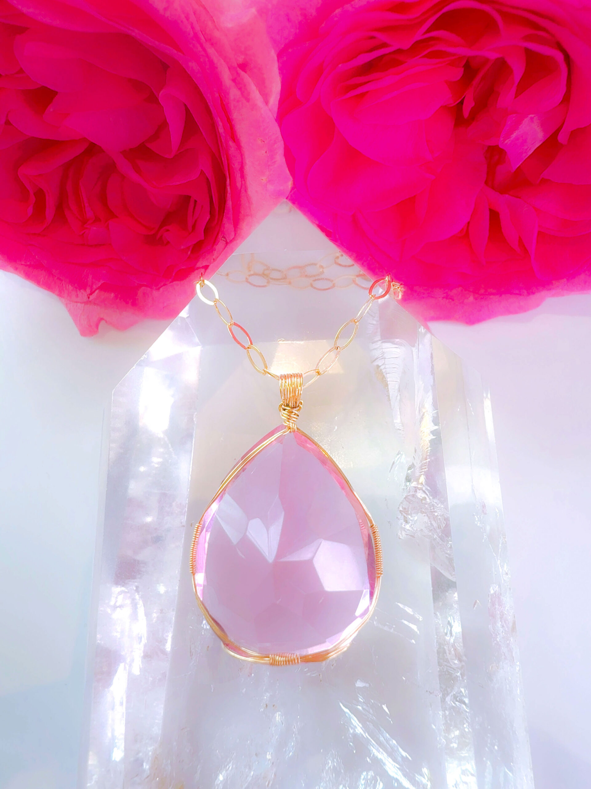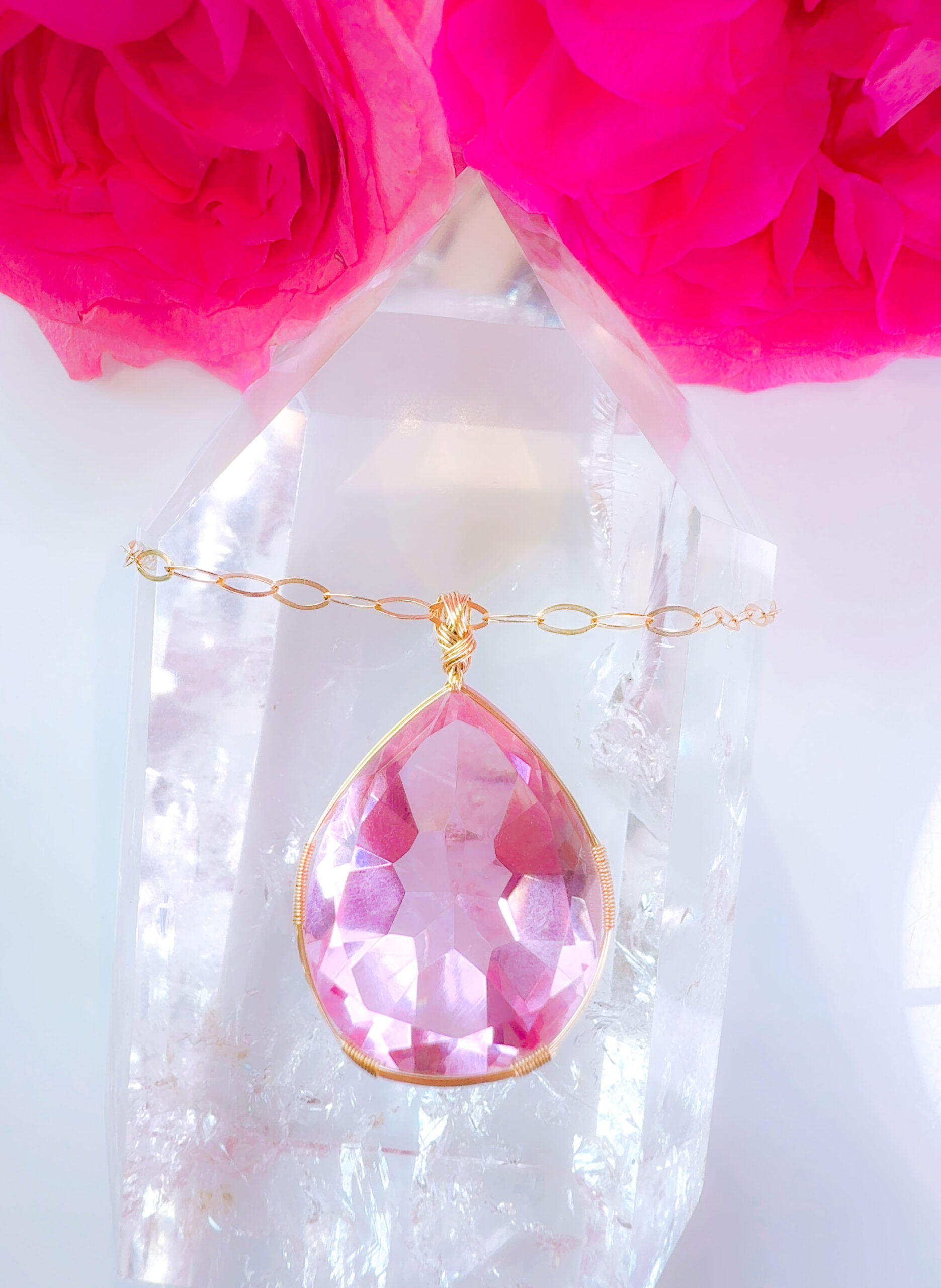 【ご予約お受け付け中♡新作SALE15%OFF中!2/17 水瓶座新月まで】【HEART of VENUS】 アンダラクリスタル宝石(50CT!/ピンク/ハイクオリティ!ペアシェイプカットカット/超レア!) 14KGFおおきな女神巻き®︎魔法のペンダント 14KGF オーバルネックレスチェーン付き♪【BANGKOK×CAPRICORN NEW MOON jewelry 1点もの】 (andara1366)