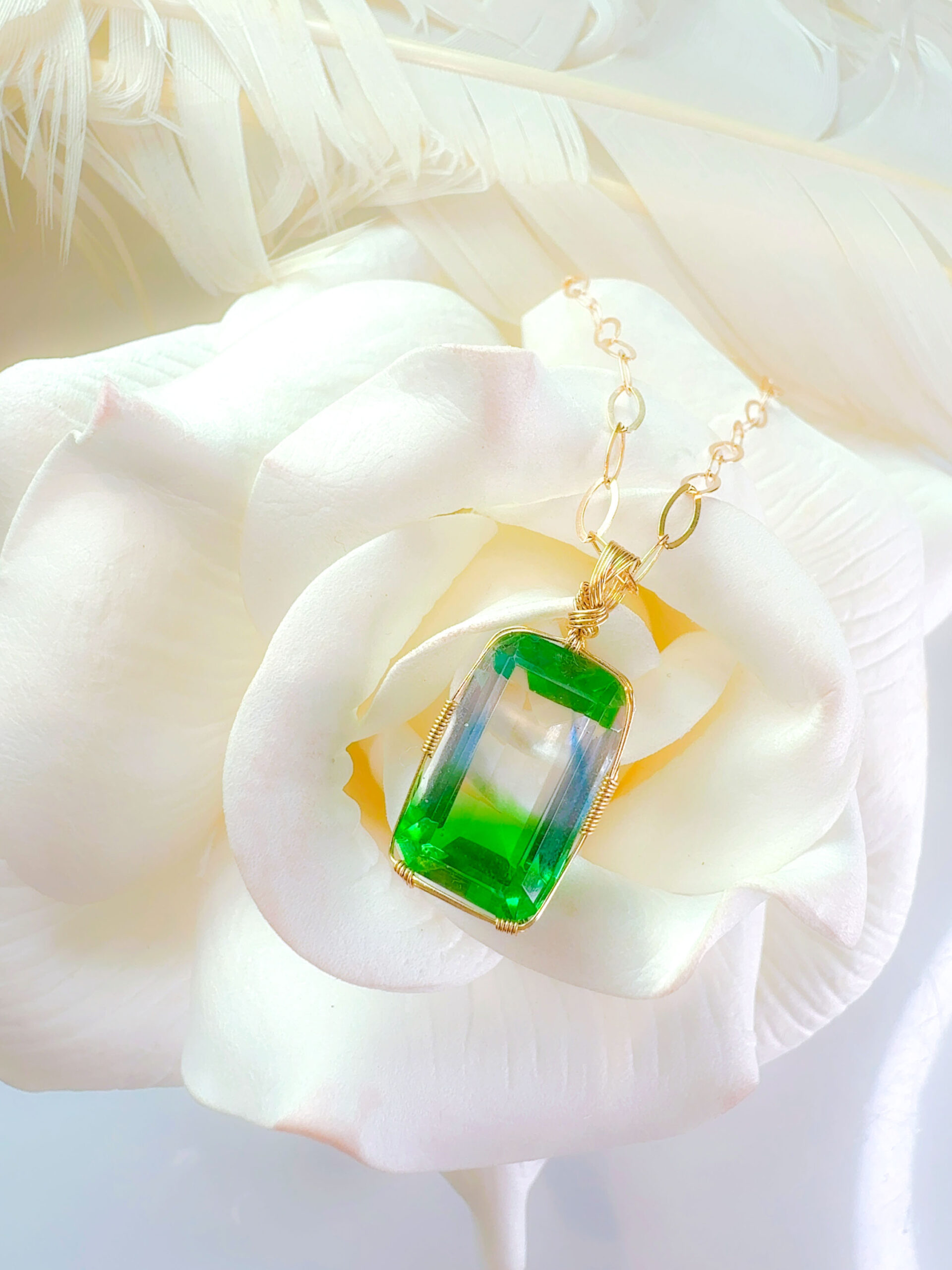 【新作SALE10%OFF中!2/17 水瓶座新月まで】【TEMPLE of the GODDESS】アンダラクリスタル宝石(13CT!/エレクトリックイエローグリーン/クリアバイカラー/エメラルドカット) 14KGF女神巻き®︎魔法のペンダント【BANGKOK×CAPRICORN NEW MOON jewelry】【永遠美の秘宝/超超超希少! 1点もの】 (andara1367)
