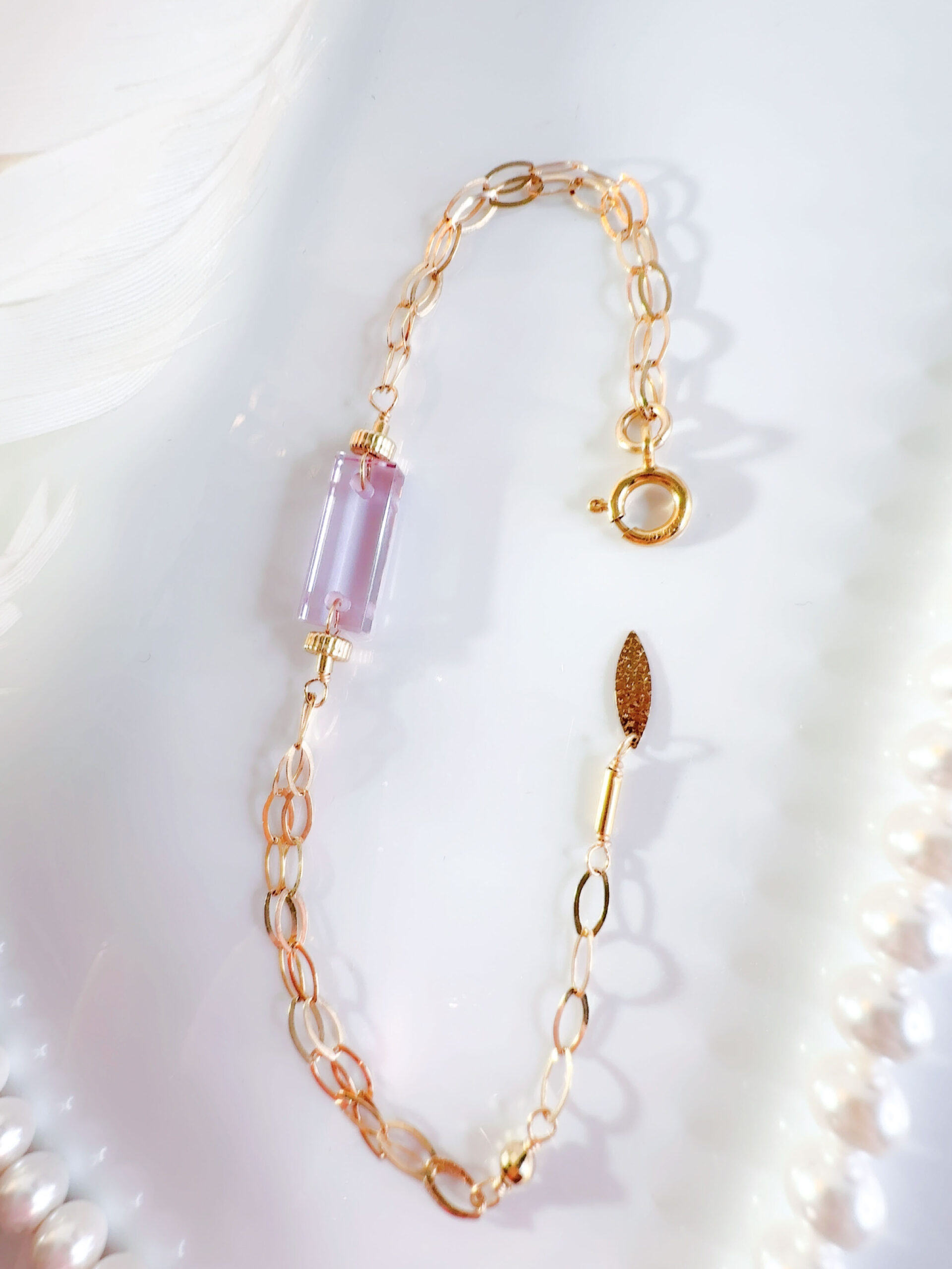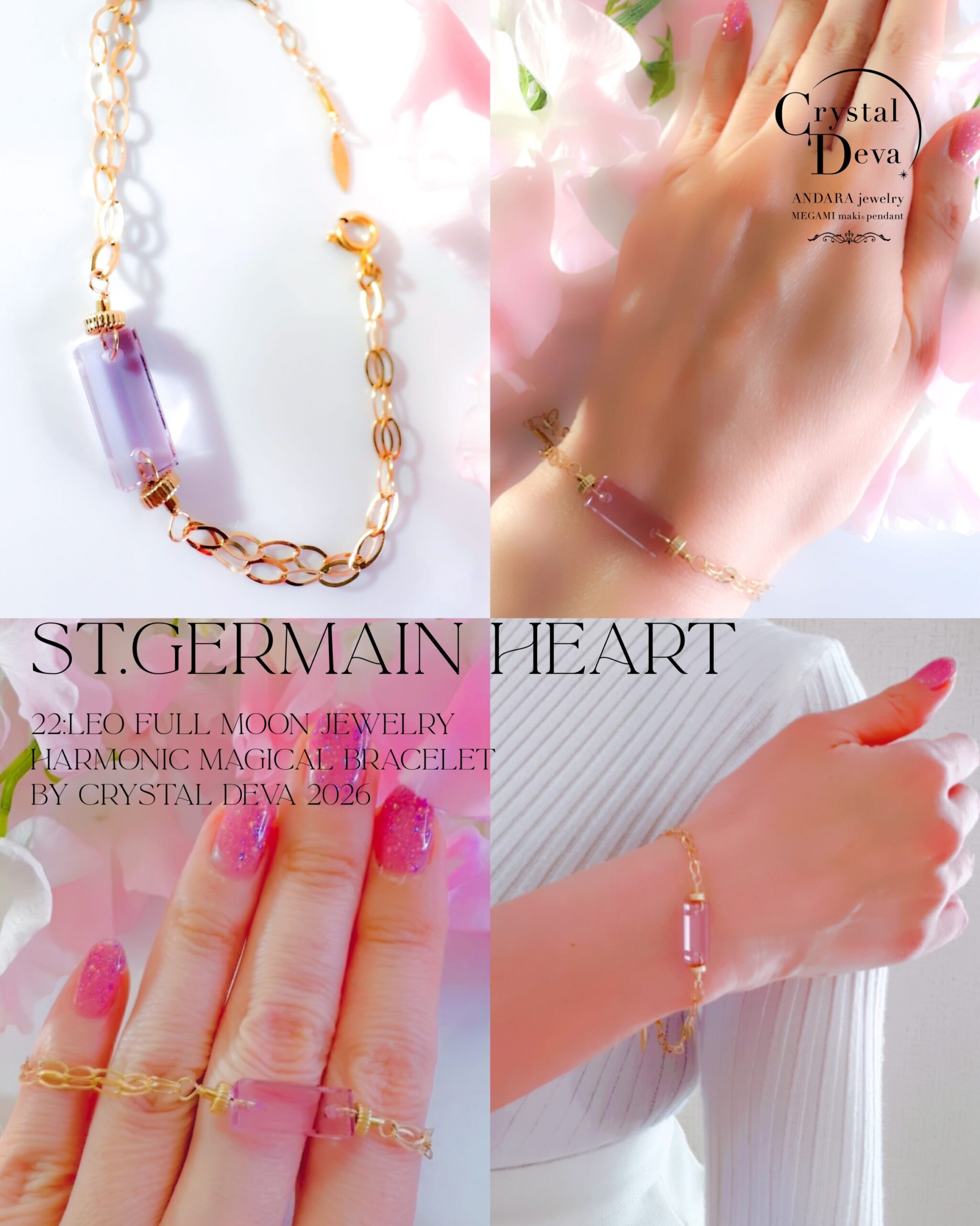 【新作SALE10%OFF中!2/17 水瓶座新月まで】【HARMONIC MAGICAL BRACELET】アンダラクリスタル宝石(5CT!/クリアヴァイオレットピンク/ロングスクエアカット)【ST.GERMAIN HEART】【ARCHANGEL ZADKIEL】14KGF ハーモニックマジカルブレスレット【22:LEO FULL MOON jewelry】【永遠美の秘宝/超超希少! 1点もの】 (andarabracelet002)