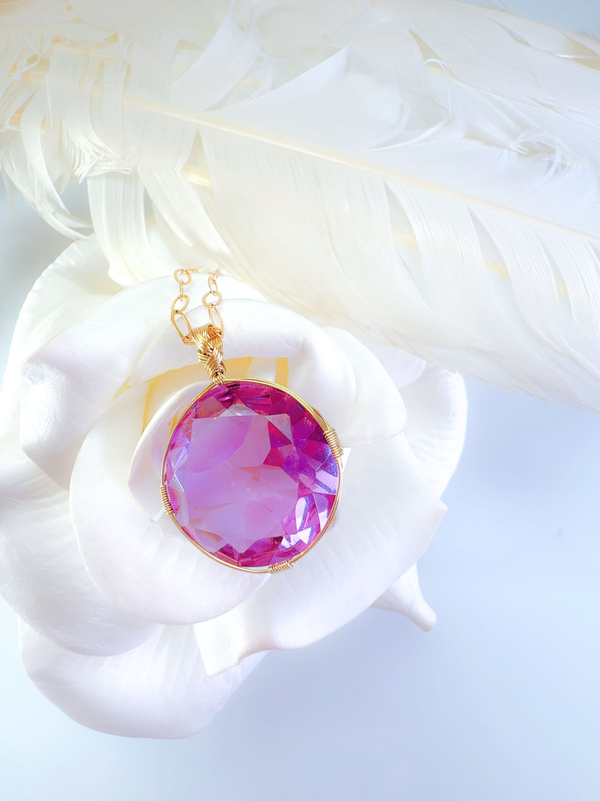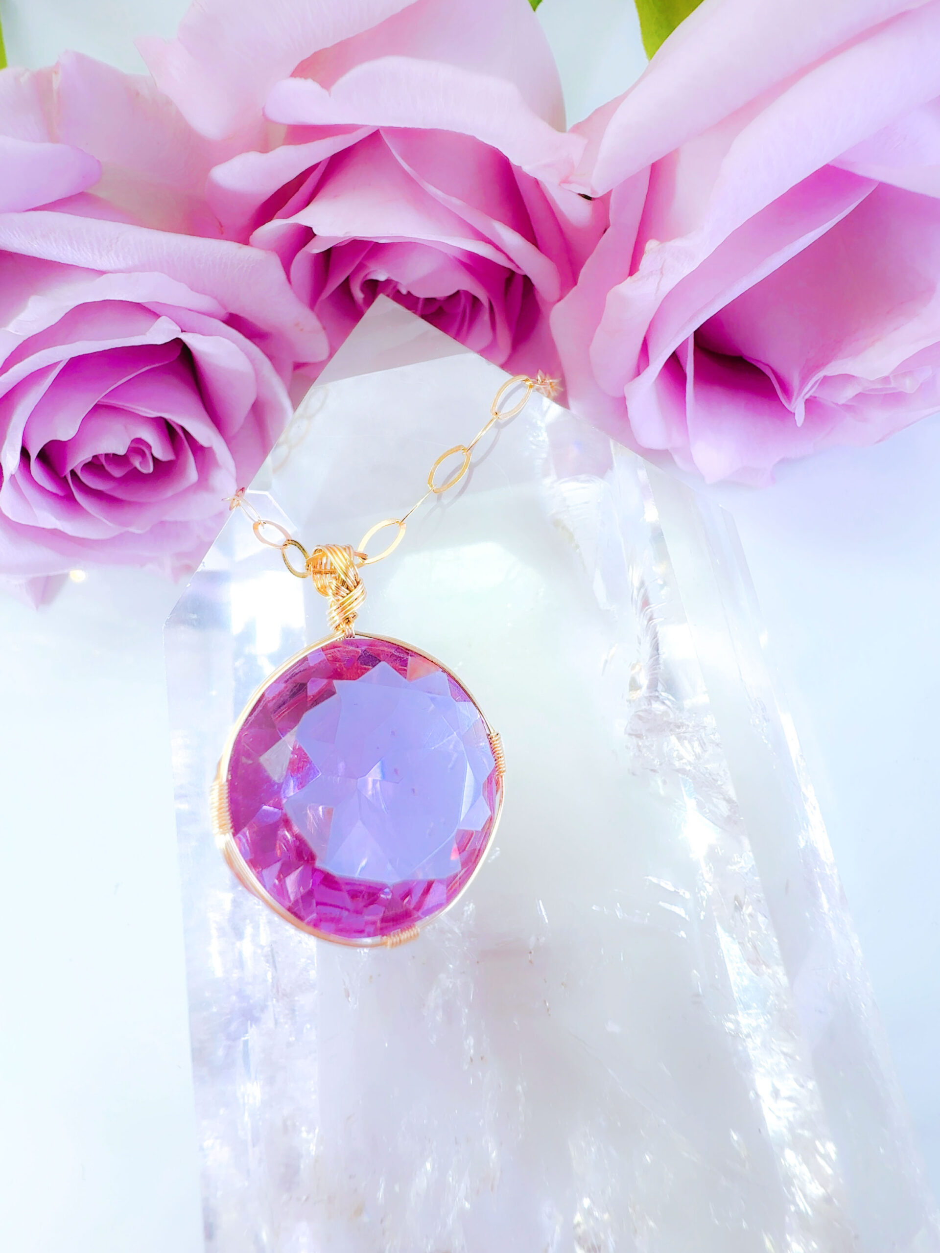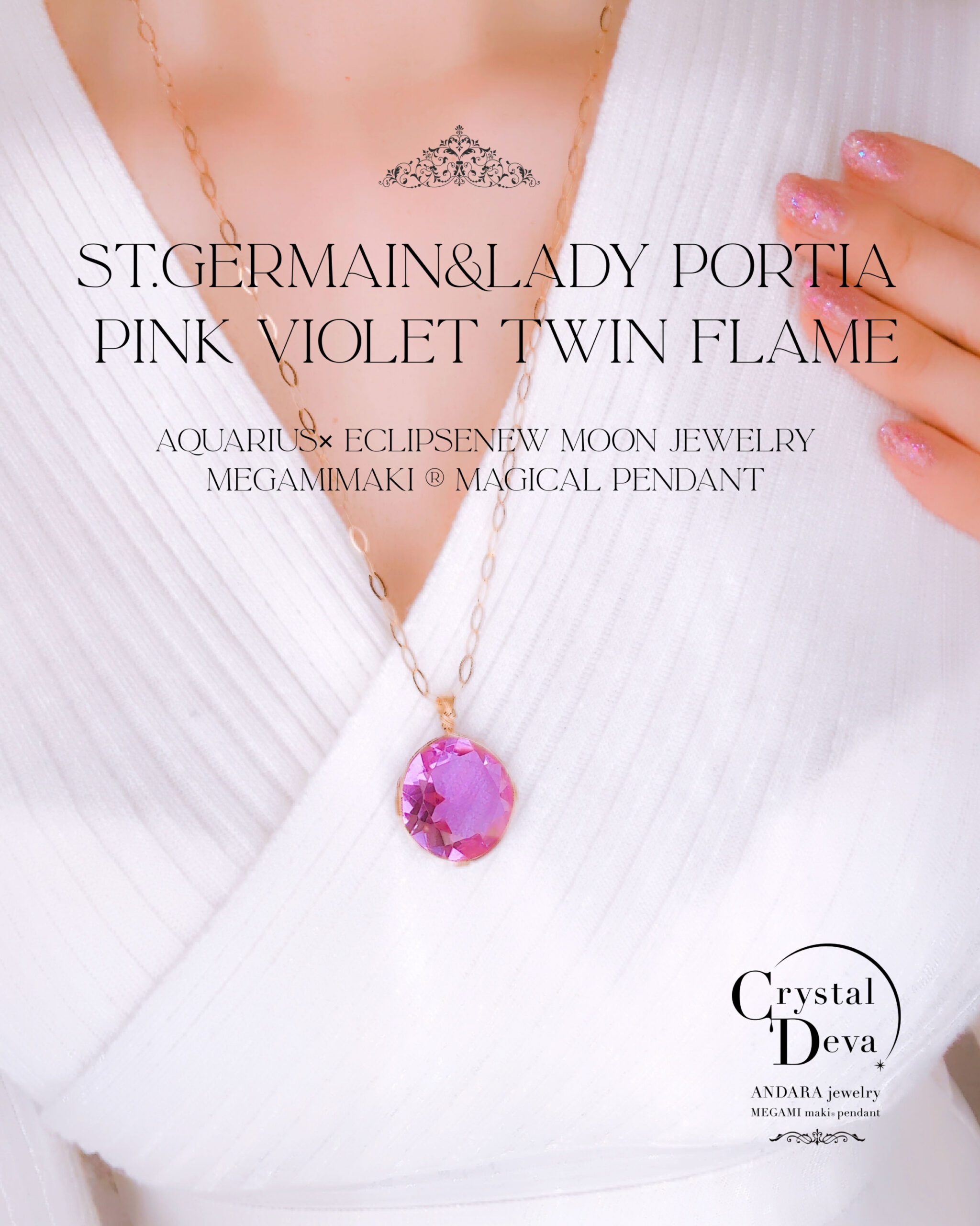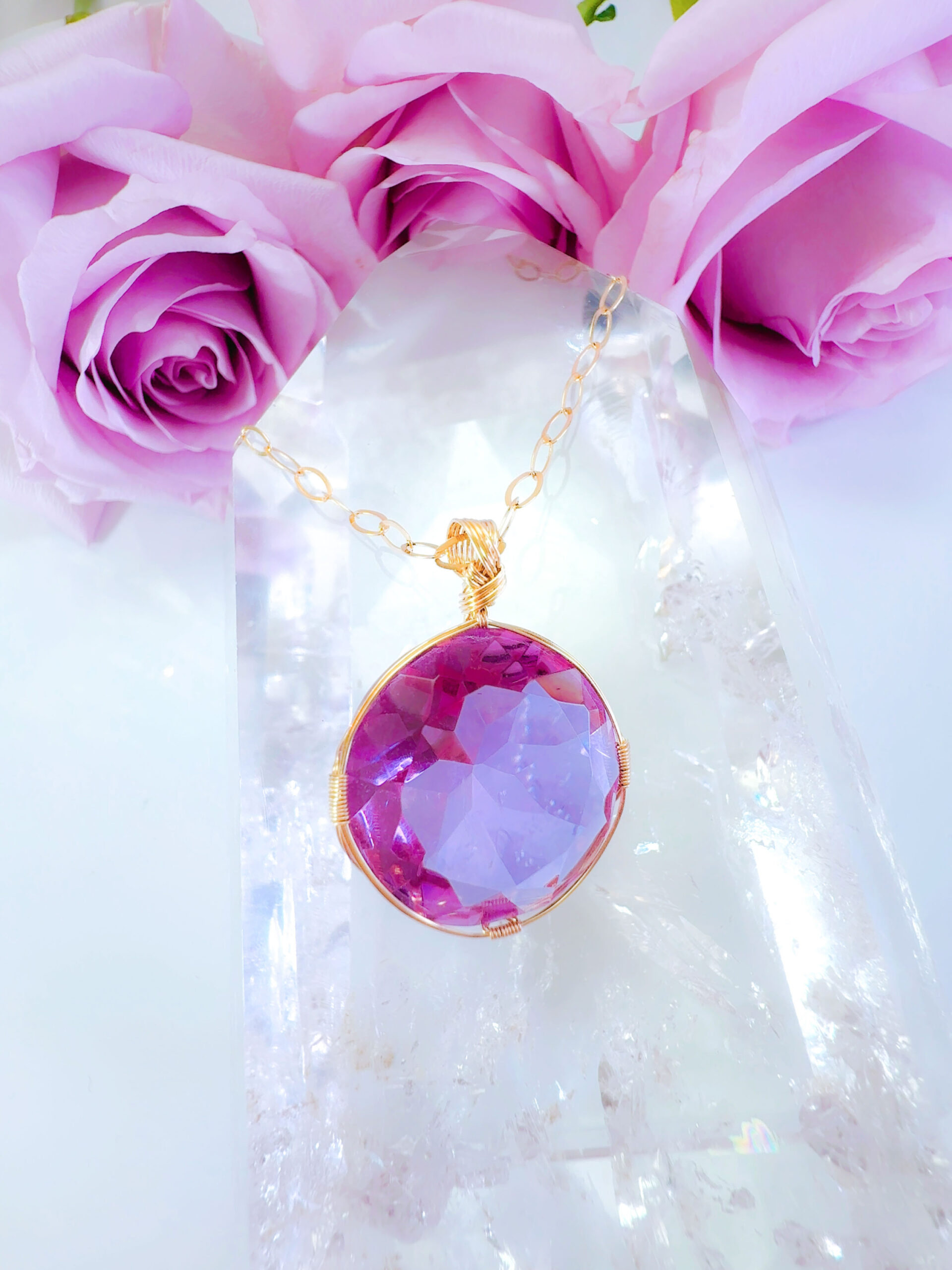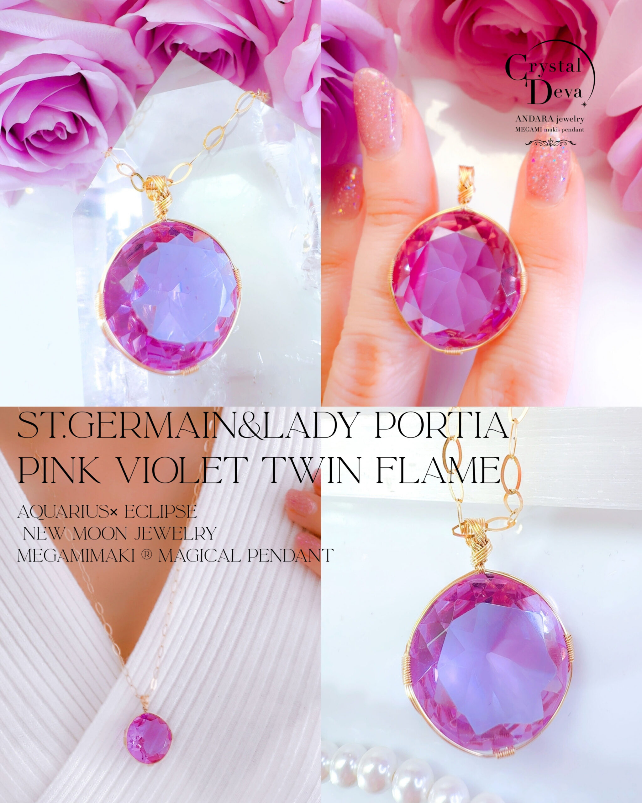 S.Oさまご予約すみ♡【新作15%OFF中!3/3 乙女座満月まで】【PINK VIOLET TWIN FlAME】アンダラクリスタル宝石(30CT!/ピンクヴァイレット/ハイクオリティ!/ラウンドブリリアントカット)【ST.GERMAIN&LADY PORTIA】14KGF女神巻き®︎魔法のペンダント✴︎14KGFネックレス付き♪ 【AQUARIUS× ECLIPSE NEW MOON jewelry】【永遠美の秘宝/超超超希少! 1点もの】 (andara1372)
