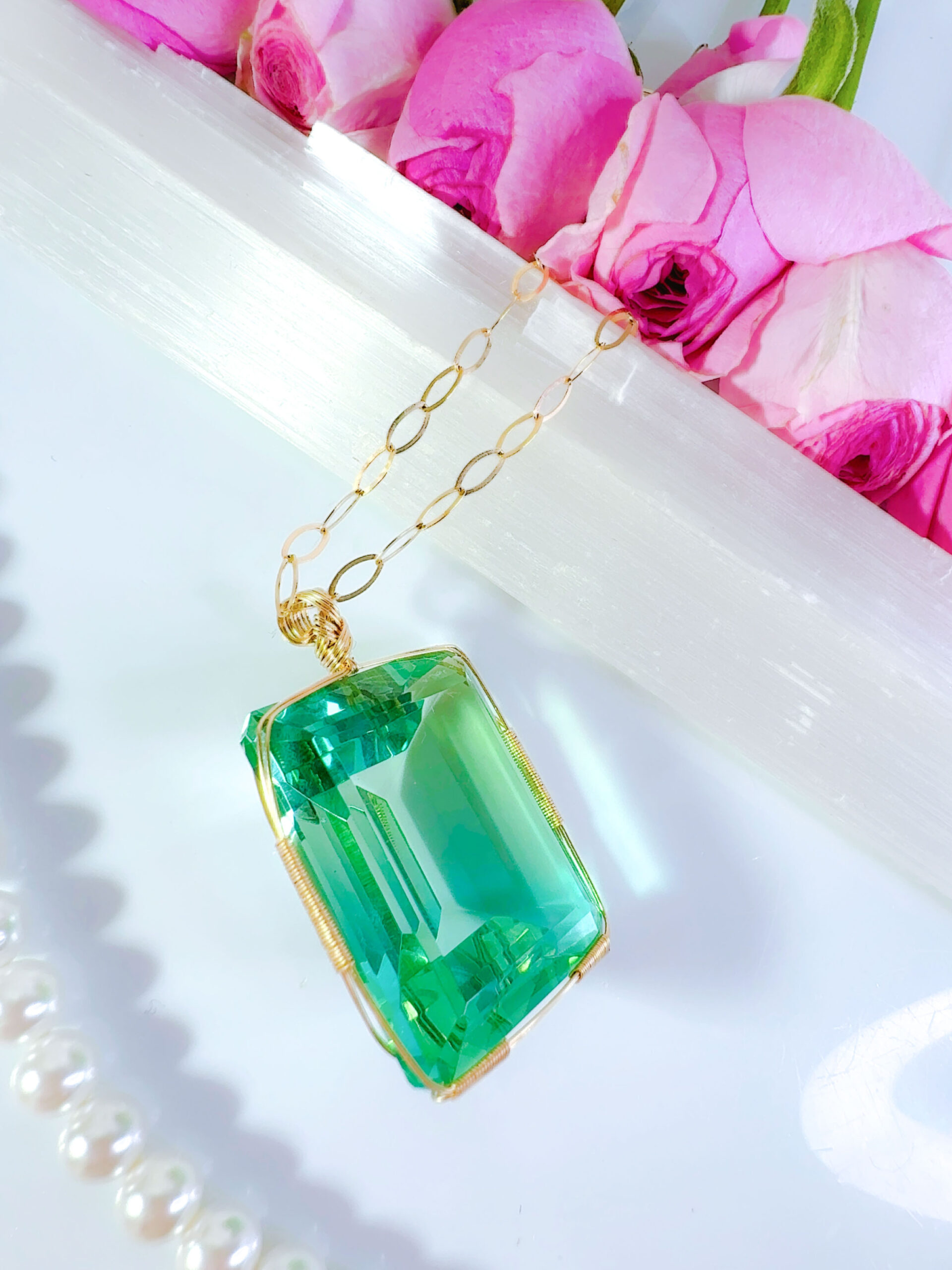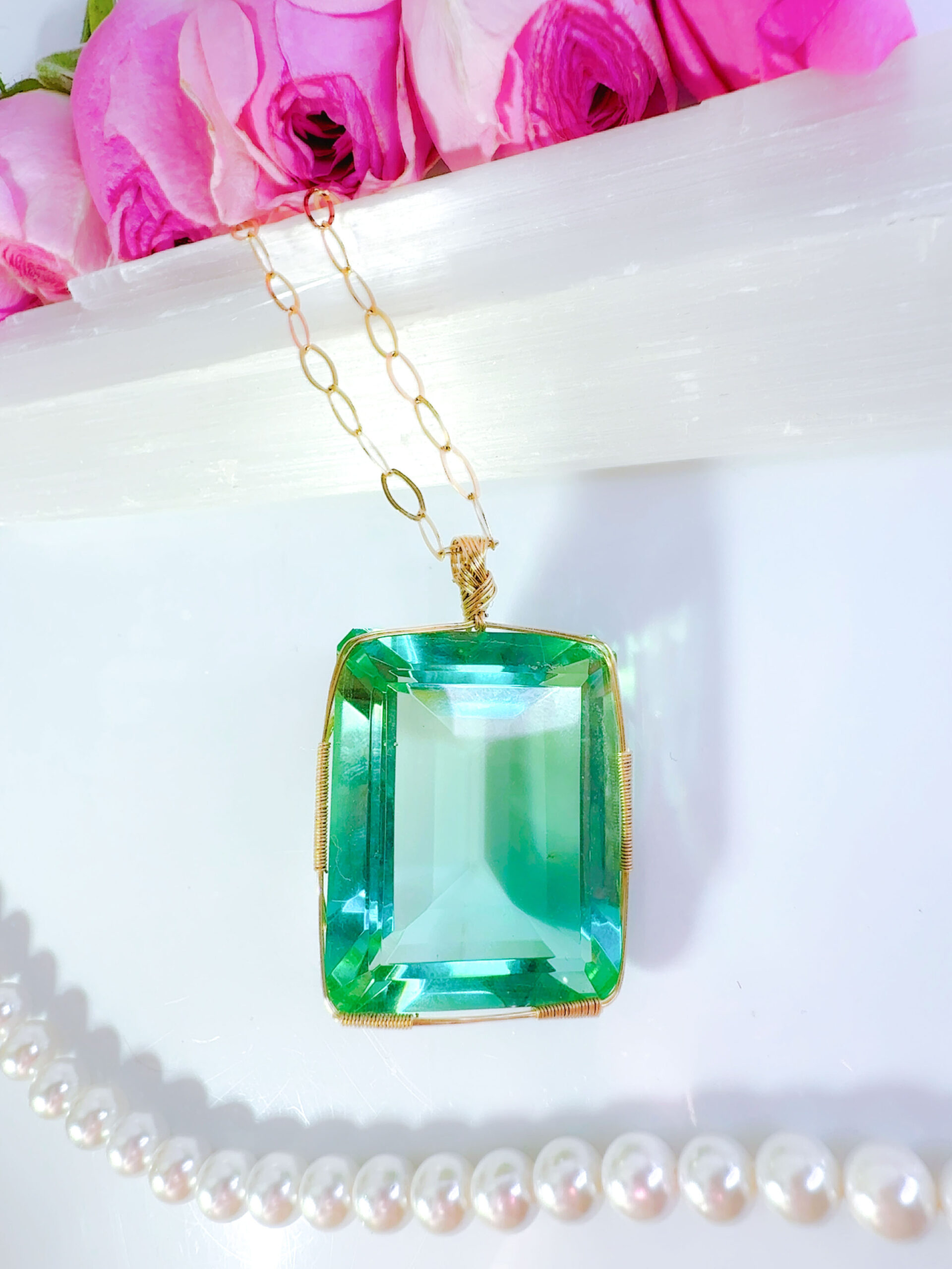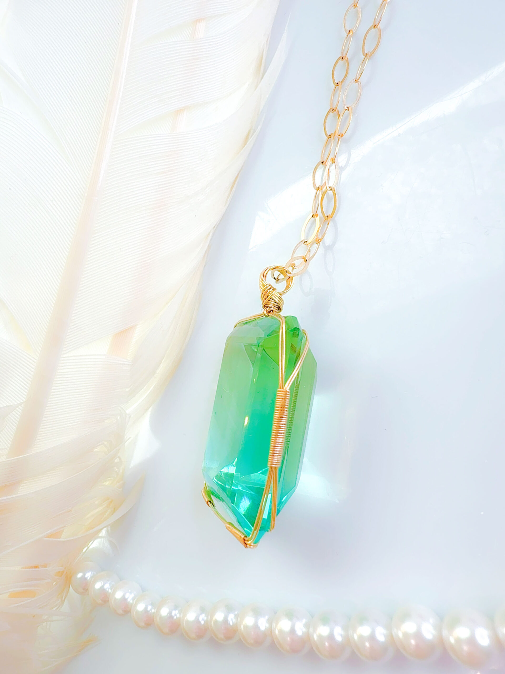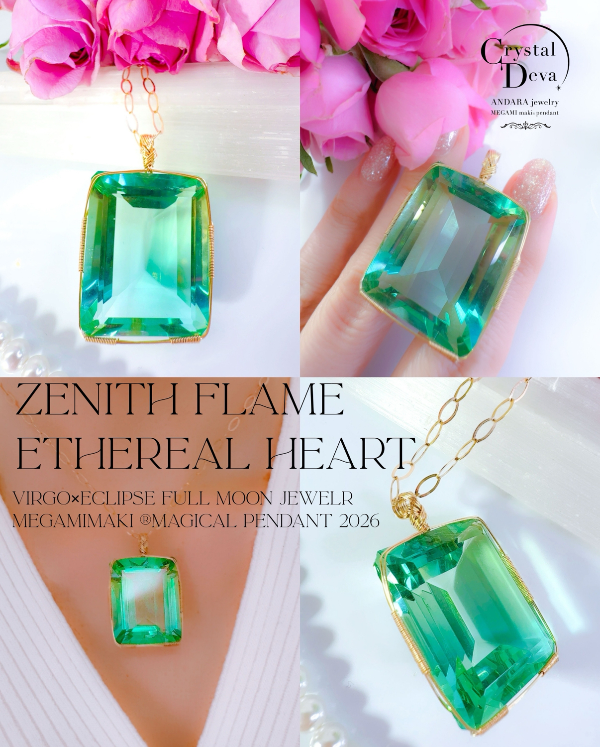 【新作SALE 15%OFF中!3/19 魚座新月まで】【ZENITH FLAME】アンダラクリスタル宝石 (68CT!ミントグリーン〜ティファニーブルーグラデーション/超レア!エメラルドカット)【ETHEREAL HEART】14KGFおおきな女神巻き®︎魔法のペンダント14KGFネックレス付き♪【33:VIRGO×ECLIPSE FULL MOON jewelry 1点もの!】 (andara1376)