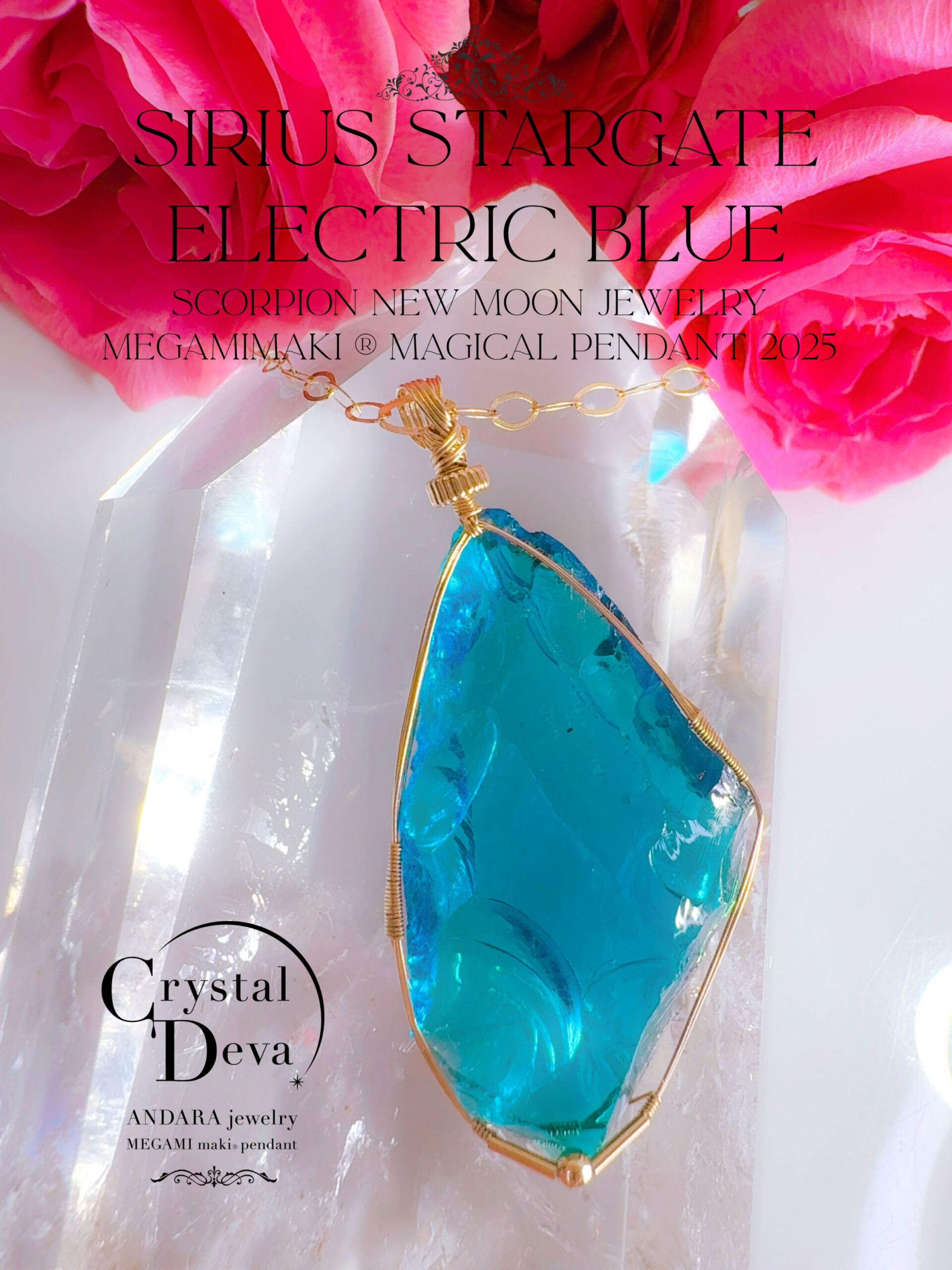 アンダラクリスタル美原石(49CT!/シリウスエレクトリックブルー) 【ELOHIM/SIRIUS STARGATE】 14KGF女神巻き®︎魔法のペンダント14KGFネックレス付き♪【SCORPION NEW MOON jewelry】【永遠美の秘宝/超超超希少! 1点もの】 (andara3139)