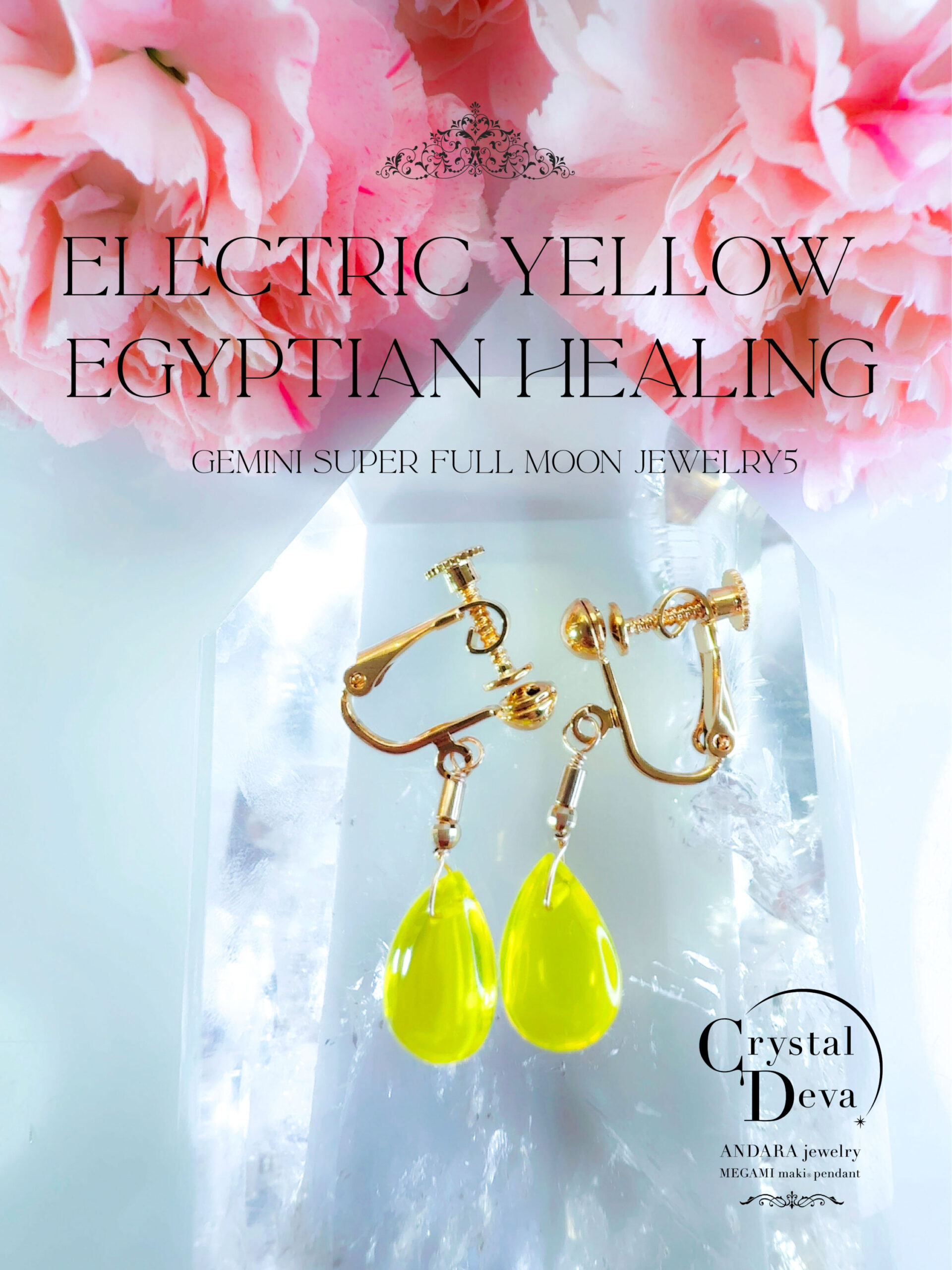 S.Kさまご予約済み♡【EGYPTIAN HEALING】アンダラクリスタル宝石(3.5CT!/エレクトリックネオンイエロー/艶やかティアドロップビーズ) 合金イヤリング【GEMINI SUPER FULL MOON jewelry】【永遠美の秘宝/超希少! 1点もの】 (andaraearring041)