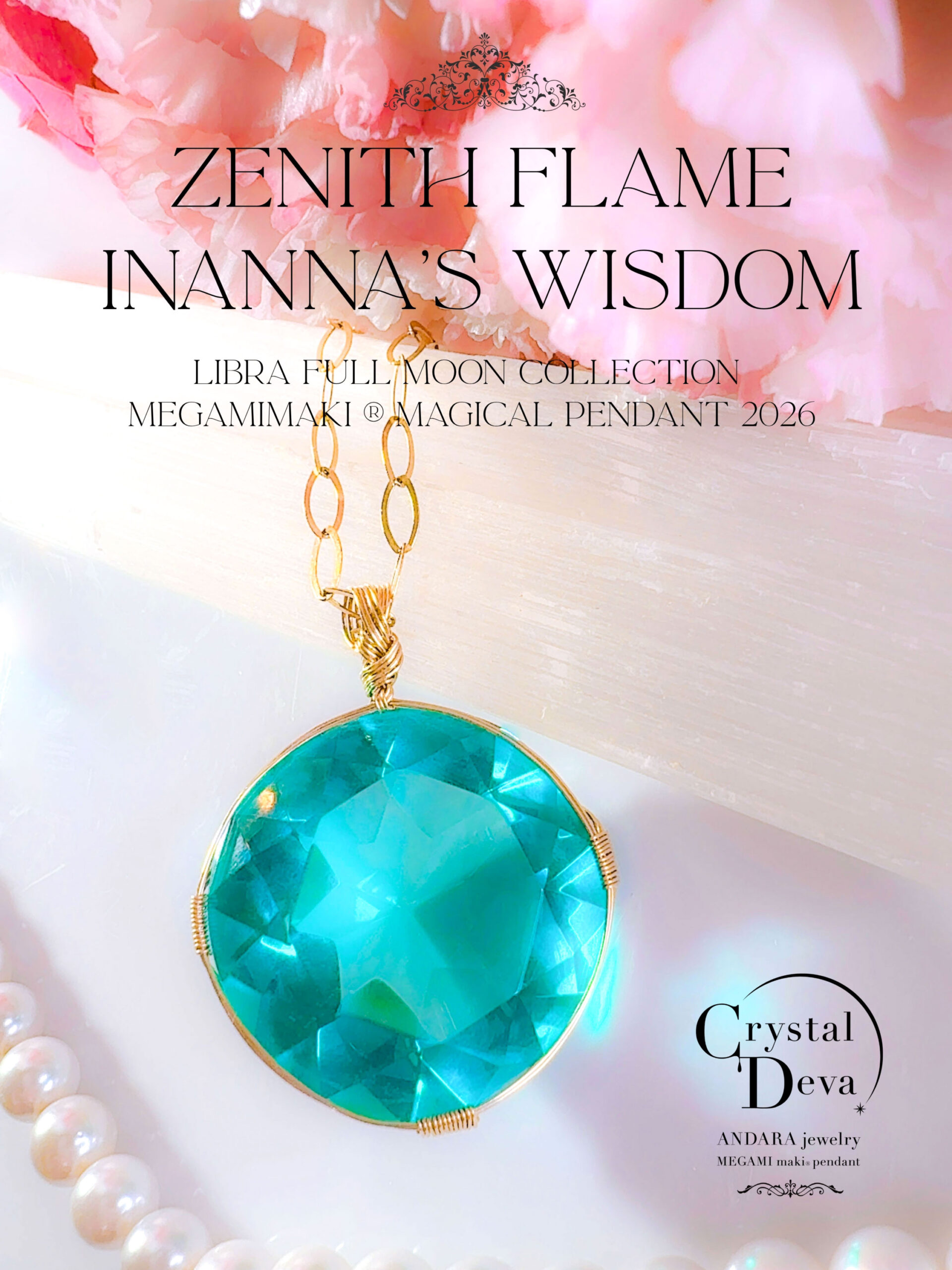 N.Nさまご予約済み♡【新作おまとめSALE 20%OFF 10/7 牡羊座満月まで♡】【ZENITH FLAME】アンダラクリスタル宝石(28.5CT!/ティファニーブルー/ハイクオリティ!/ラウンドブリリアントカット)14KGF女神巻き®︎魔法のペンダント【INANNA's WISDOM】14KGFネックレス付き♪ 【 SOLAR ECLIPSE VIRGO NEW MOON × AUTUMNAL EQUINOX jewelry】【永遠美の秘宝/超超希少! 1点もの】 (andara1282)